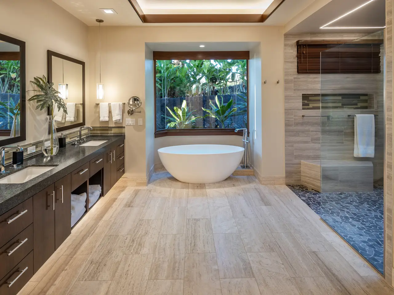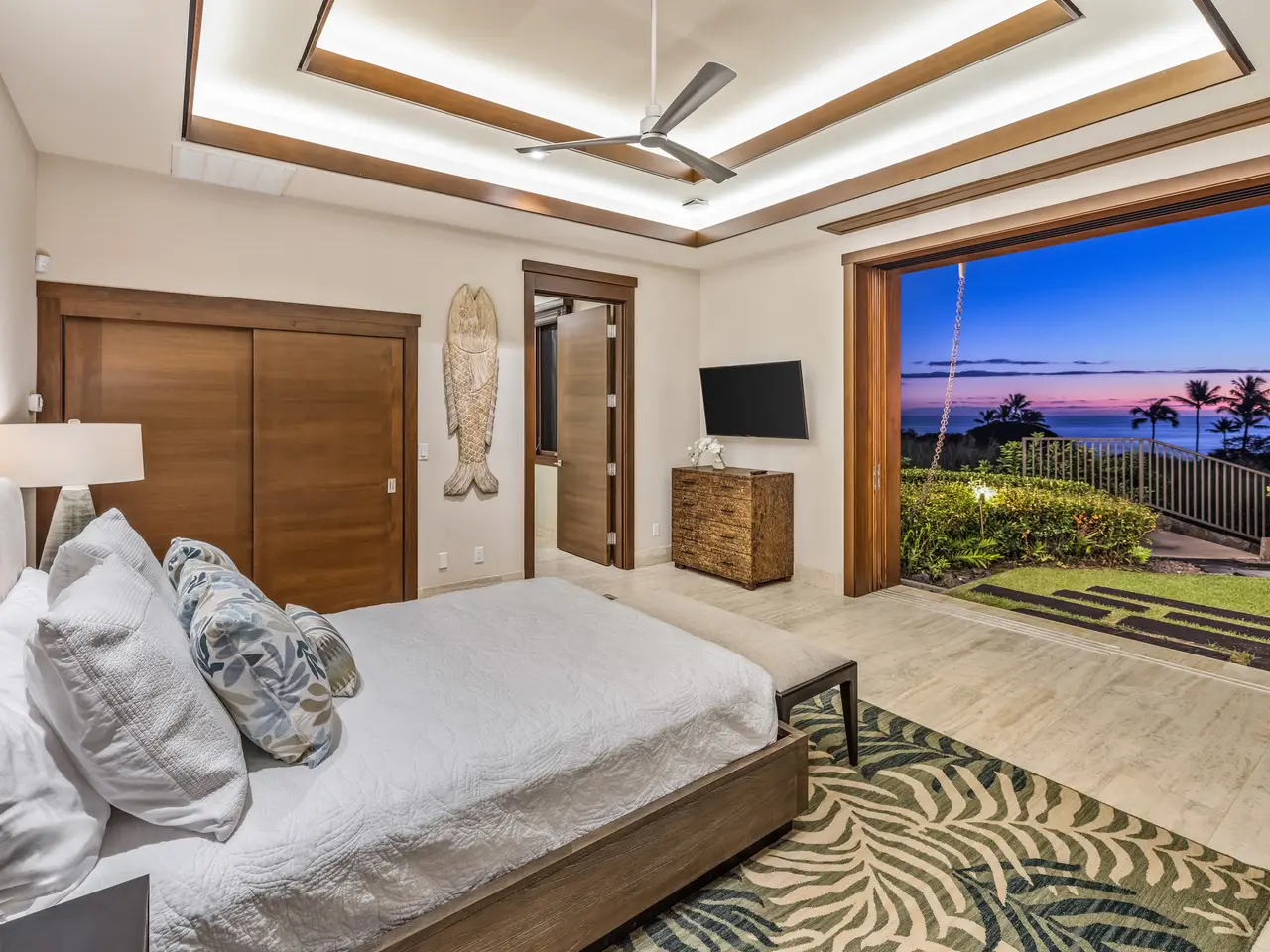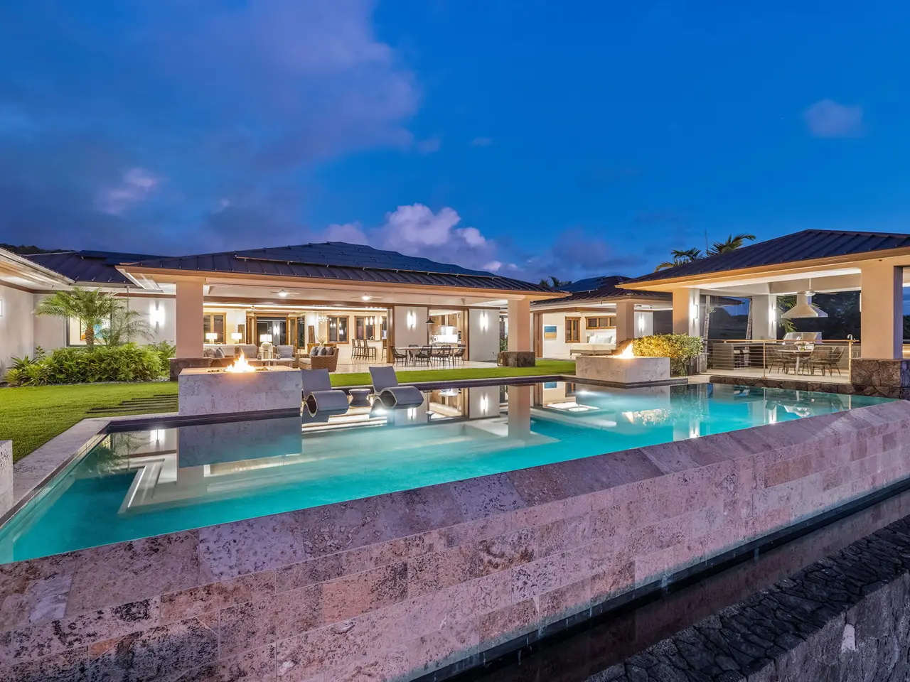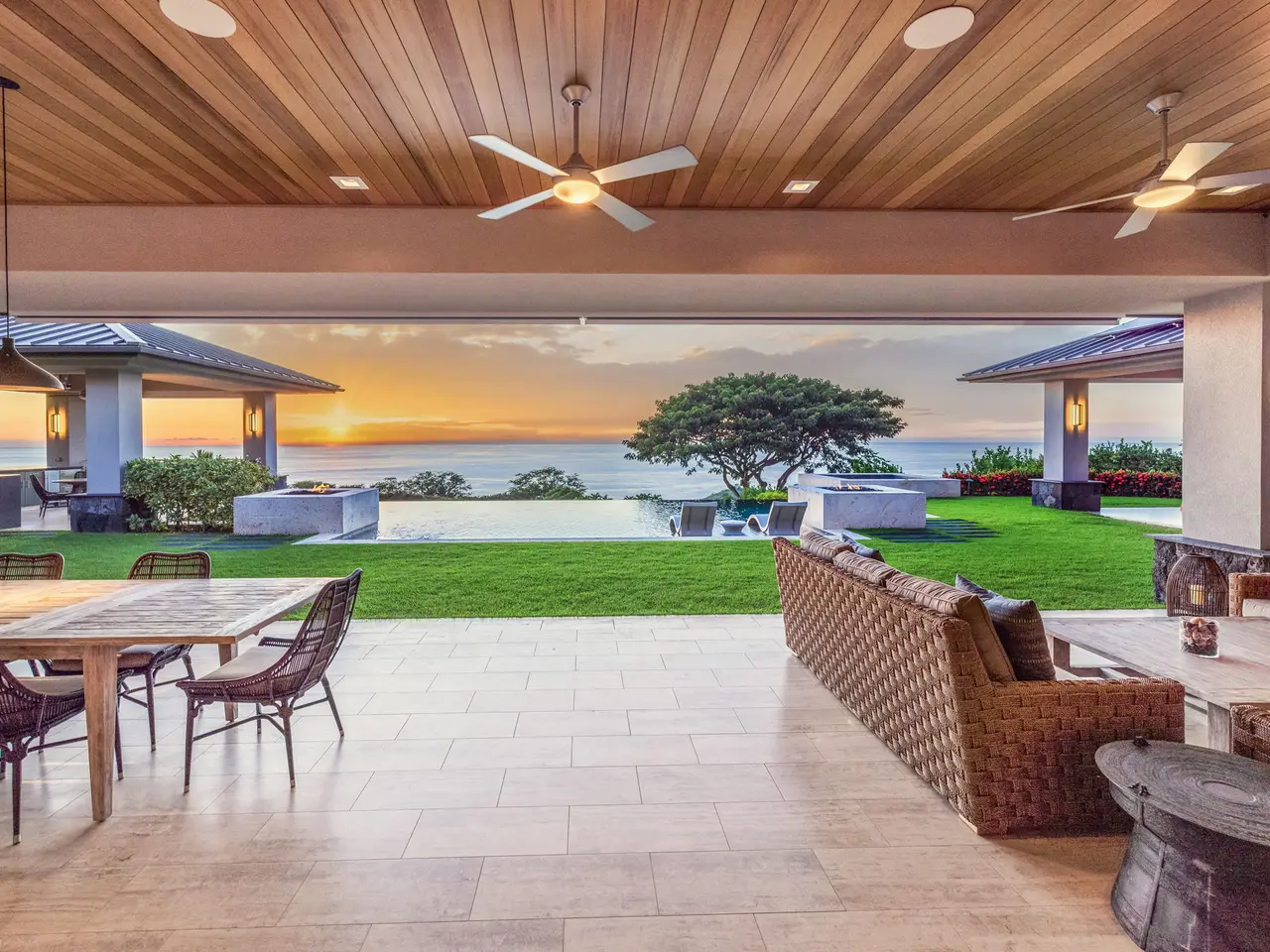 Hokuli‘a 116 stands as a truly remarkable residence along the golf course fairway within the exclusive community of Hokuli‘a. This property spans 1.15 acres and offers breathtaking views of the ocean and coastline. Designed to celebrate the natural beauty of Hawai‘i, this home combines refined architecture with an enviable location, providing the ideal setting for enjoying a peaceful and elegant island lifestyle. Refined Craftsmanship & Unique Indoor-Outdoor Living is reflected in every room and connects to lush landscaping, enhancing the indoor-outdoor flow and taking advantage of its natural environment. Pocket sliding doors open the interiors to an expansive covered lanai with stunning views. The home’s pod-style design features separate structures, or “pods,” for different functions such as bedrooms, living spaces, and the kitchen, all connected by breezeways and outdoor paths. Upon arrival, you are greeted by a roundabout that leads to a serene private courtyard, seamlessly blends into expansive social spaces that showcase stunning views. High ceilings with rich wood paneling create a warm and inviting atmosphere, while award winning built-in cabinet screens add both artistry and functionality. Fully furnished with luxurious finishes, this residence embraces open-air living, blending traditional tropical materials with modern aesthetics to create an elevated island-inspired experience, enhanced by gentle breezes and awe inspiring views from every corner. With more than 7,000 square feet under roof, the property includes a dedicated office, a spacious great room, 4 bedrooms, and 4.5 bathrooms. The private pool and spa tub provide a tranquil retreat, where you can start your mornings with a swim or end your evenings soaking in the vibrant hues of the Hawaiian sunset. A Hokulia Membership is included in the purchase price.