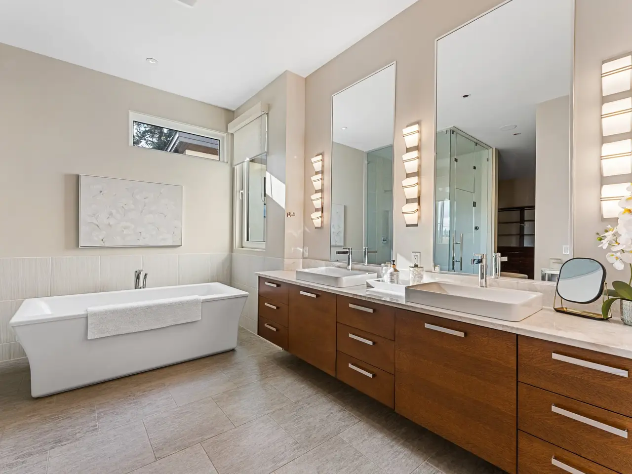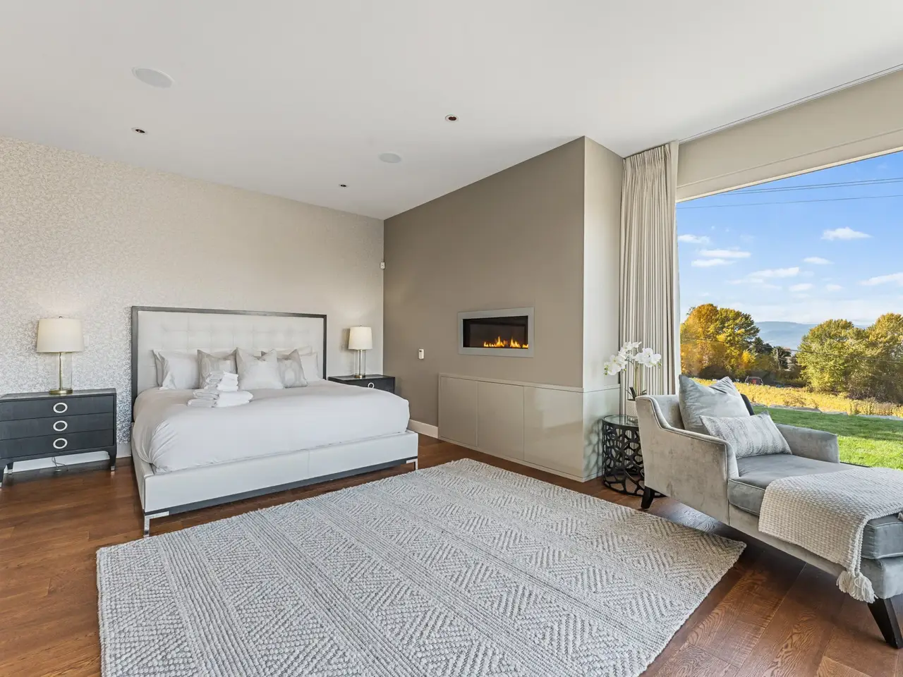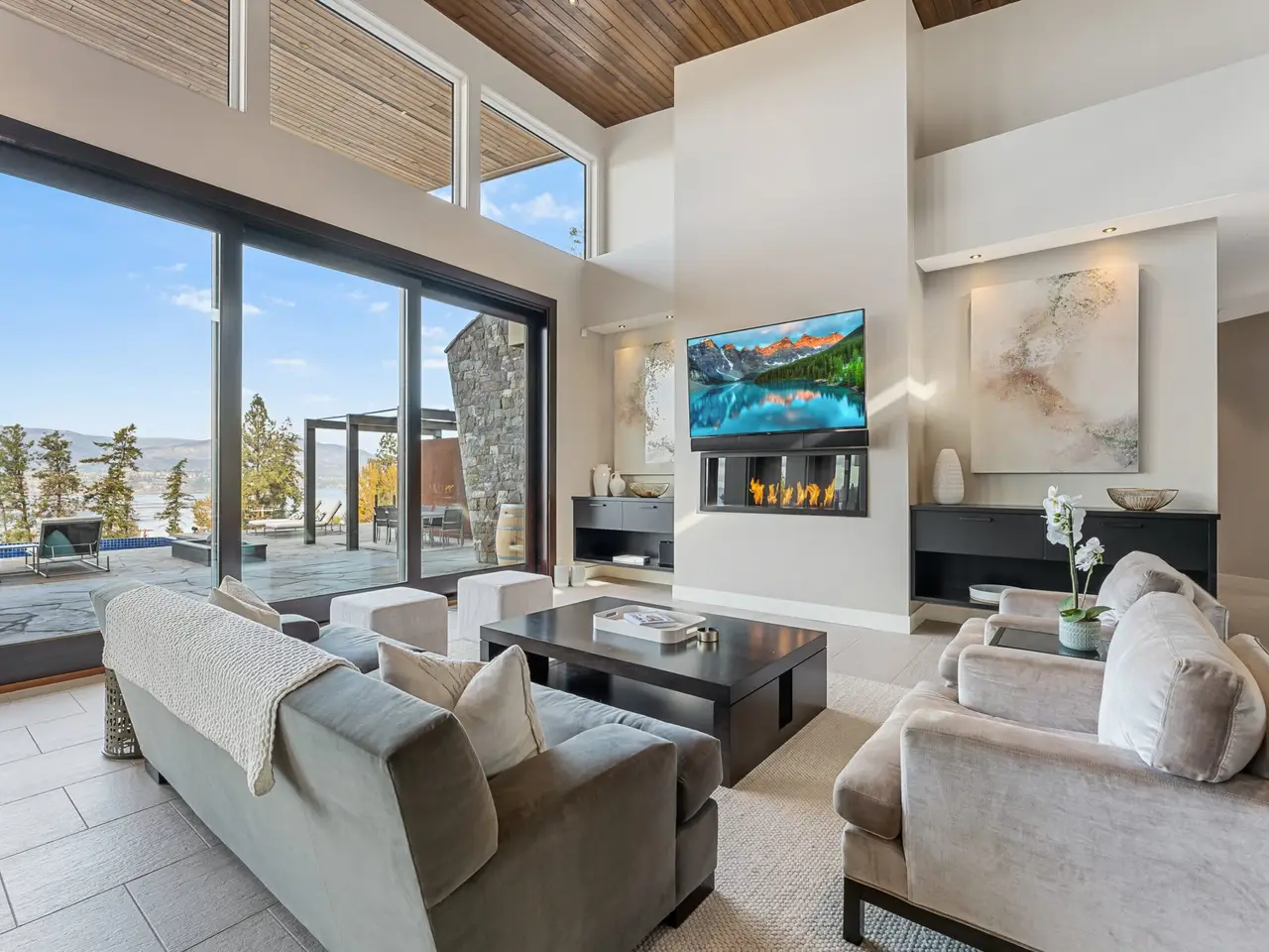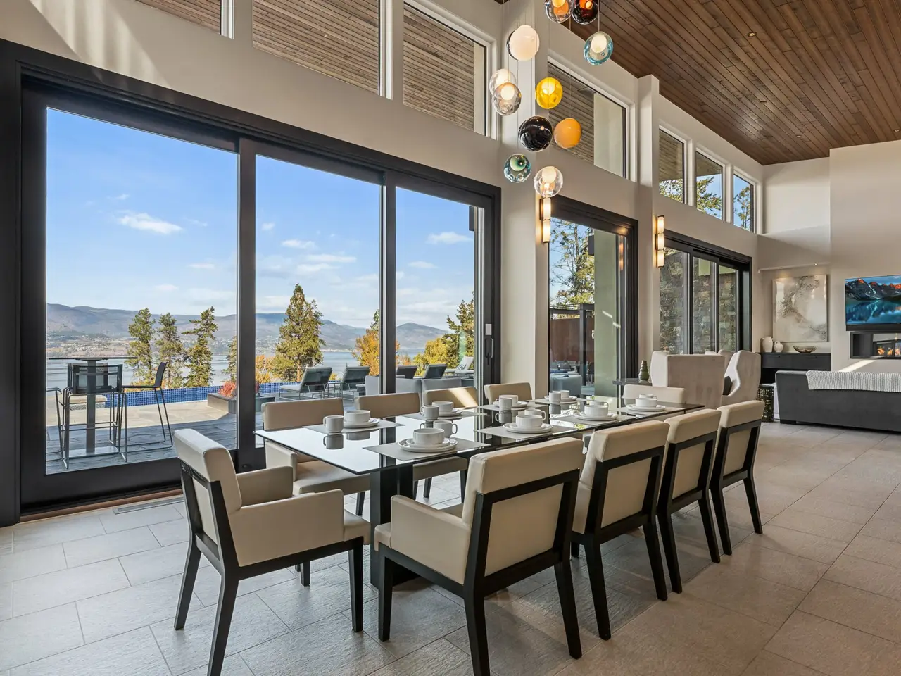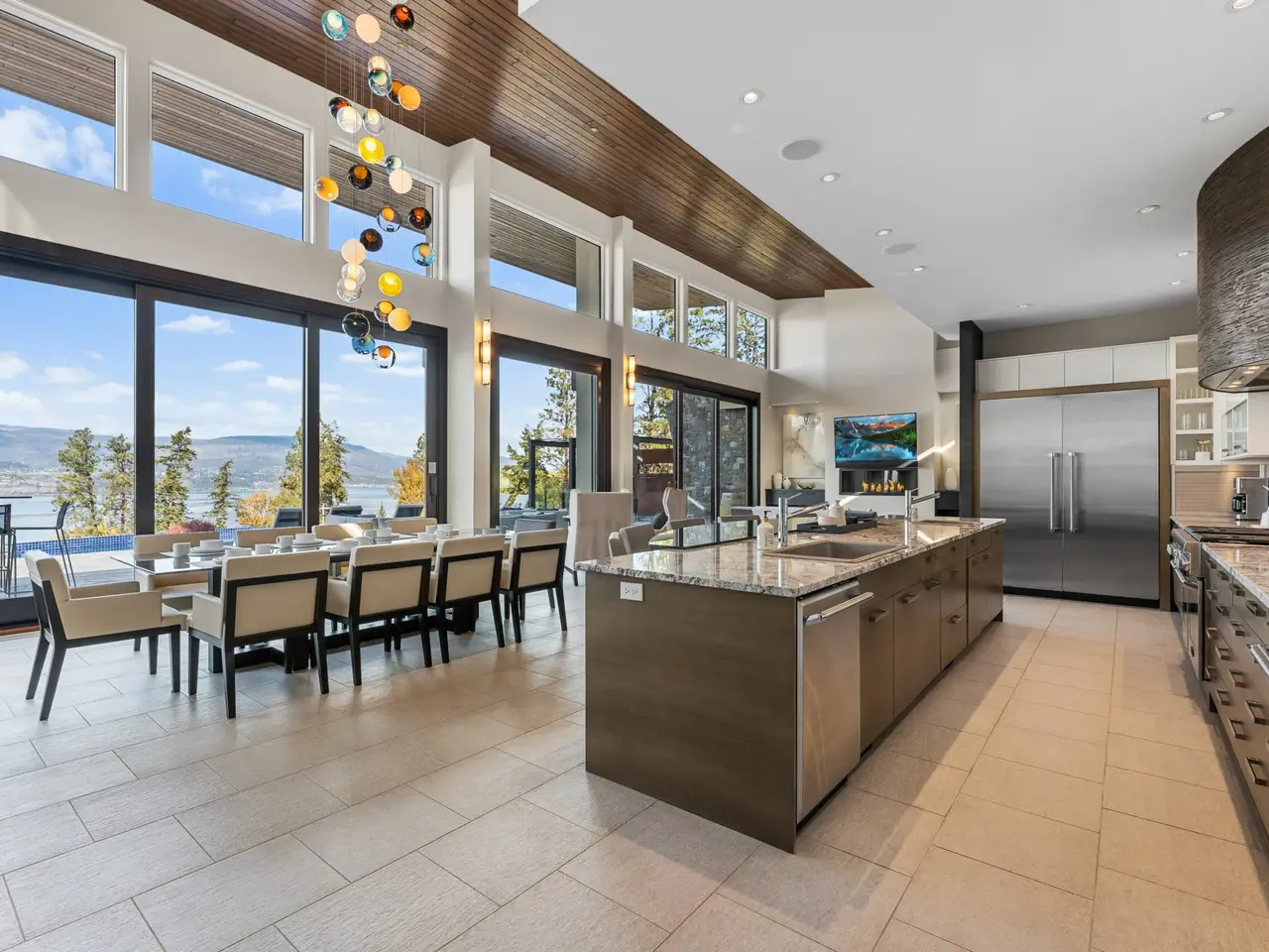 Listed by Unison Jane Hoffman Realty | Private estate home set on 2.05 acres and perfectly positioned to capture the stunning lake, city and vineyard views. Enjoy an expansive flagstone patio with a spectacular negative edge saltwater infinity pool that creates a resort-like setting with room to lounge, entertain and take in the breathtaking views. Gated entry leads to heated triple garage & single garage plus RV garage. Upon entering the home you’ll notice walls of glass that showcase the views of the pool, lake and beyond. Soaring ceiling height with floor to ceiling windows & sliding wall system create a seamless extension to the outdoors with the open concept great room, dining & kitchen. Kitchen features oversized granite island, professional appliances, custom fixtures & cabinetry. Generous sized lake view primary bedroom framed in windows with linear gas fireplace & full ensuite with frameless glass shower, his/her sinks and soaker tub. Contemporary style home is over 5600 square feet with 4 bedrooms & 6 baths. Lower level boasts wine room, media room and games room. New pool, patio, pergola & outdoor living space completed in the summer 2015. The home blends exterior with interior living superbly. Located a short stroll to adjacent Summerhill Winery and minutes to the lake, hiking, dining, boutiques and schools.