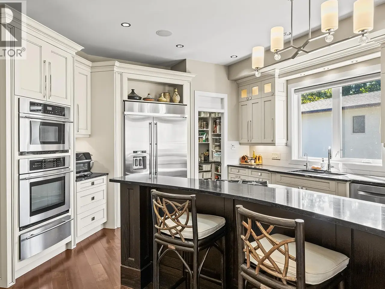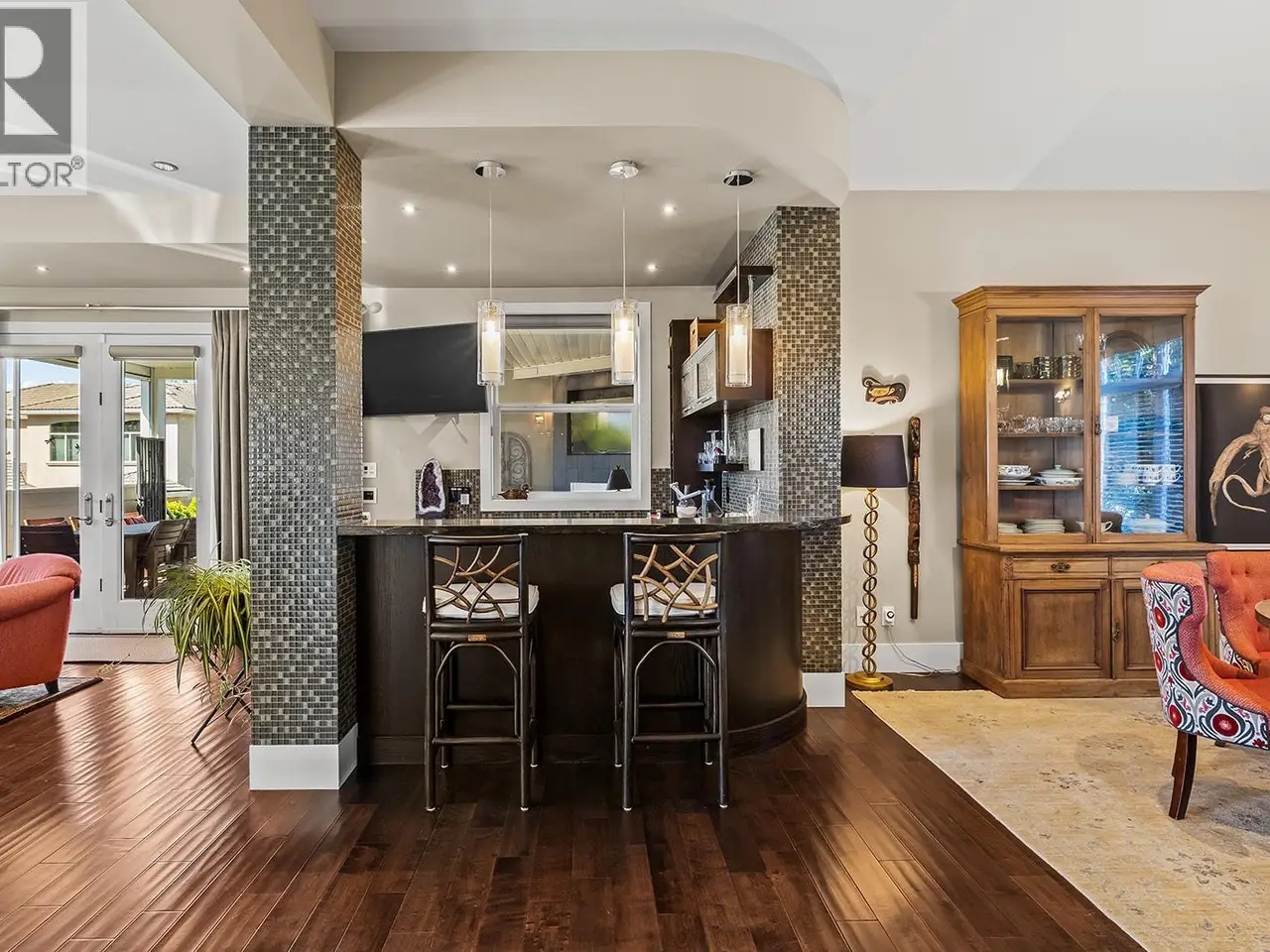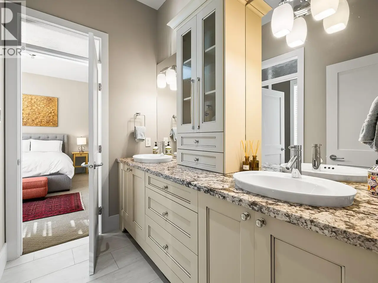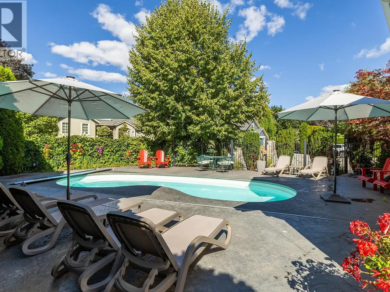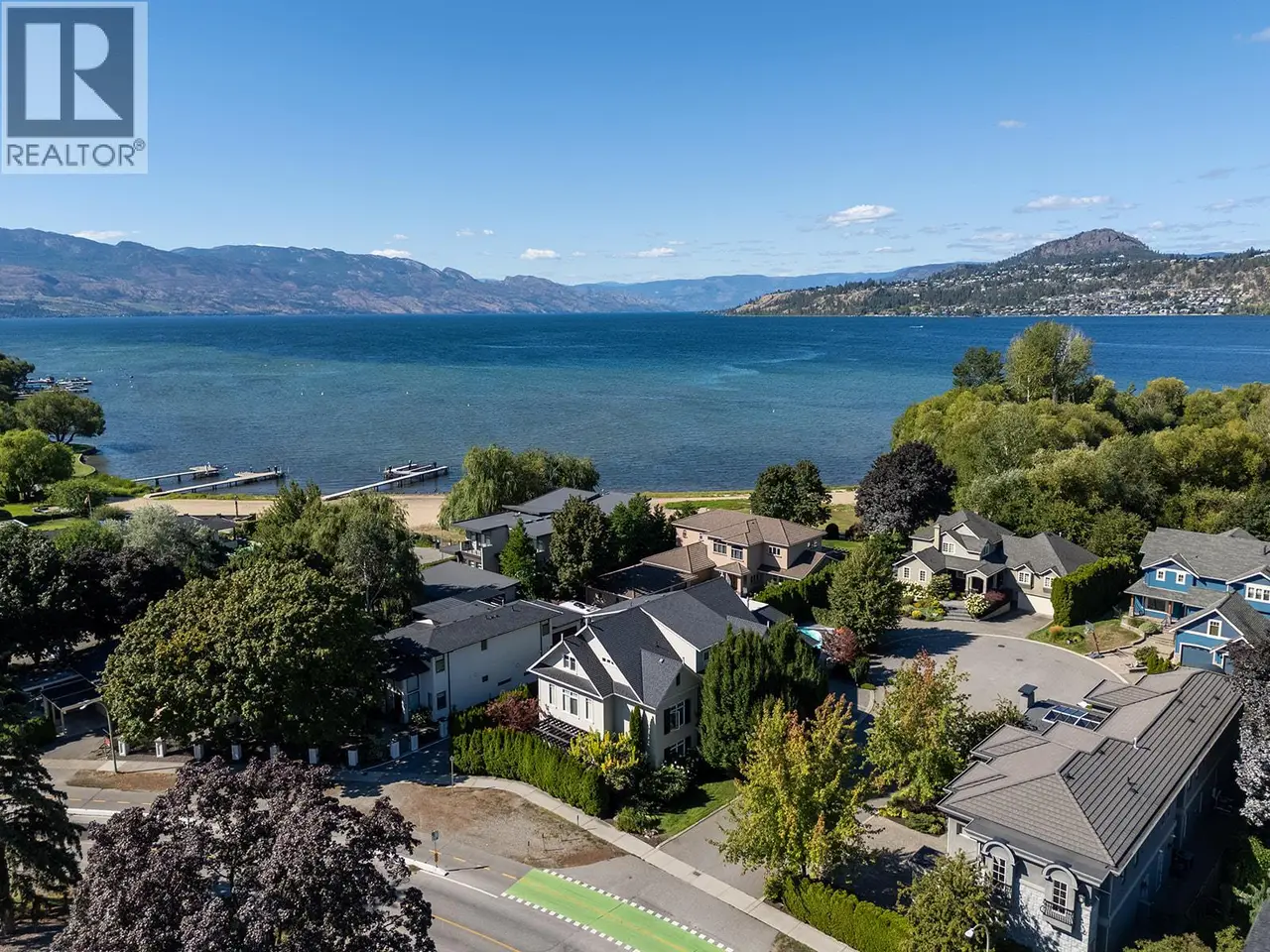 Welcome to luxury living on highly desirable Abbott Street! Combining timeless elegance with modern functionality, a spacious layout and impeccable finishes throughout. The grand double-storey foyer, embraces you with under-floor heated tile, soaring vaulted ceilings, and an abundance of natural light. An elevator, enhances accessibility and convenience. The ground level is perfect for guests or multi-generational living, featuring a private suite with kitchenette, sitting room and garden courtyard access, ideal for in-laws or Airbnb. An office, home theatre, laundry, and pool bathroom round out this level. The main floor chef’s kitchen with premium appliances and pantry, a great room with gas fireplace, two bedrooms with a shared bathroom, powder room, dining area, and a full wet bar with a dishwasher, wine and beverage fridges is an entertainer’s dream. Step outside to a stunning lounge and dining area with gas fireplace, TV, phantom screens, and hot tub. The top floor is an indulgent primary retreat with a spa-inspired marble bathroom, dressing room with laundry, private sitting area with fireplace, and a serene sun deck. Enjoy your secluded oasis with a UV pool, auto cover, and ample lounging space. A heated triple garage with additional storage completes this exquisite home. This freehold, bare land strata with private beach access has a low monthly strata $30 covering insurance for the common road. Ideally located near Pandosy Village, KGH, and the lake.