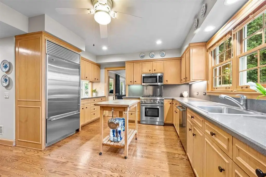 A Kenilworth GEM...deceptively spacious and full of character, this gorgeous Lannon stone home offers incredible versatility and timeless craftsmanship. With two primary suite options...one on the first floor and one upstairs...you can customize the home to fit your lifestyle! Right when you walk in the home you will be WOWED by the grand living room with a gorgeous floor-to-ceiling window overlooking the professionally landscaped, private backyard, exquisite millworker a statement fireplace. The formal dining room is perfect for entertaining with beautiful built-in cabinets. The cook's kitchen features high-end appliances, an eat-in area, and seamlessly flows into the inviting family room with direct access to the spacious patio. A large first-floor office/den provides the flexibility to work or relax at home. The first-floor primary suite offers ample closets and an ensuite bath, ideal for guests or an in-law suite, while convenient first-floor laundry adds ease. On the second floor...four generously sized bedrooms including another primary suite, plus an additional ensuite bedroom. A large unfinished room, a huge cedar closet, and attic space above the garage - leave it as is - or it's perfect for expansion to create a dream suite with luxurious bath and walk-in closet, a 2nd family room or a studio - whatever you want! The lower level features a rec room and an abundance of storage. You will love entertaining outside on the large patio and enjoying the privacy of the gorgeous backyard, and recreational fun on the sport court! Two-car attached garage. A+ location...just minutes from Award-Winning Joseph Sears School (JK-8), New Trier High School, the Metra, the beach, newly renovated Plaza Del Lago shopping and dining. Truly a unique home with character and flexibility - YOU WON'T FIND EVERY DAY!