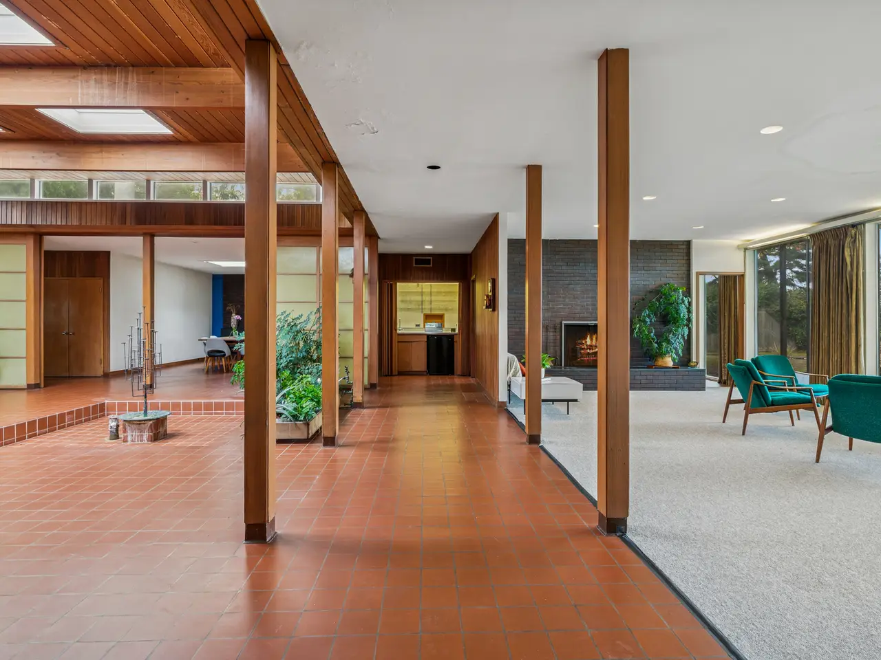 Radiant heated floors and skylit atrium