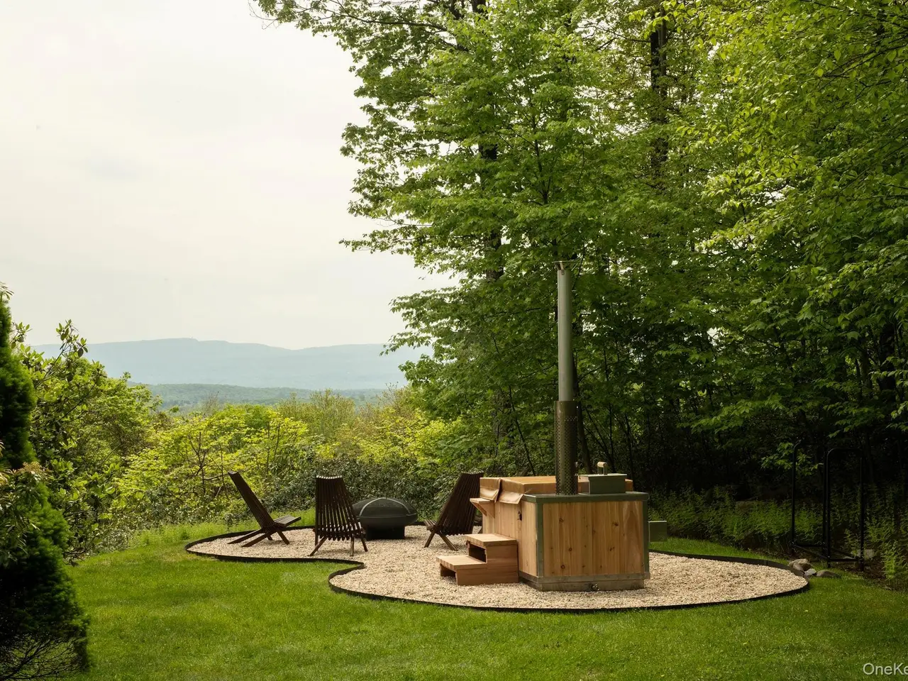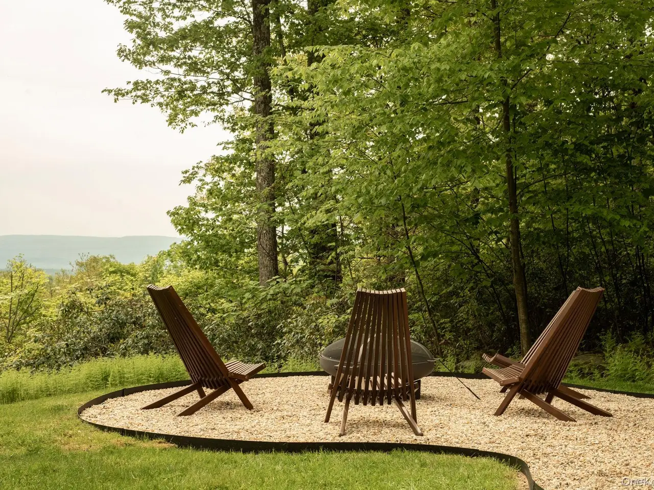 High above the valley, tucked among ancient stone and soft forest light, Stillview feels like a place the world forgot to rush. Opening to a long, unbroken panorama of the Shawangunk Ridge and the cliffs of Mohonk, Stillview is surrounded by nearly nine acres of forest and rock outcroppings, and offers complete privacy with a sense of calm that feels rare, even here.The house itself is effortless, a study in serenity. Light streams through each window, landing gently on oak floors and moving with you from room to room as you go from morning coffee in the sunroom to studious afternoons in the office to quiet evenings around the fireplace. The living room, anchored by a sleek fireplace and warm brass fixtures, flows into the welcoming sunroom and adjacent kitchen. The kitchen, a mix of natural textures and thoughtful restraint with its Zellige tile and stone counters, offers verdant views and opens toward a formal dining room with custom built-ins. Adjacent to the kitchen and dining room is an immaculate walk-in pantry with custom shelving. A laundry room with half bath and direct access to the attached garage round out the main level. Upstairs, each bedroom looks out to the woods and feels equally private and calm. The expensive primary suite is a true retreat, its windows framing the changing colors of the landscape, green and luminous in summer, gold in autumn and crystalline in winter. Complete with double vanity, separate water closet, glass-and-tile shower, luxurious soaking tub and walk-in closet, the primary suite creates a measured rhythm of calm and a space that feels both composed and deeply restorative. On the lower level, a finished studio space walks out to the land and creates the perfect gym, playroom or guest space. Outside, the land reveals itself slowly: ledges of ancient rock softened by moss and ferns, glimpses of light through oak and birch, and a silence that deepens at dusk. Low-maintenance by nature, without a neighbor in sight, End the day in your outdoor oasis overlooking the Shawangunks by rejuvenating in your hot tub and decompressing with an evening cocktail around the fir pit while recollecting your thoughts as you enjoy your private vista.Stillview is truly private, elemental and deeply peaceful. Stillview is 2 hours from New York City and perfectly positioned for weekends that mix rest with exploration. Minnewaska State Park and Mohonk Preserve are just minutes away, with endless trails and hidden lakes. Within a short drive are local favorites Inness, Westwind Orchard, Arrowood Farm and Ravenwood. Kingston and New Paltz are close enough for a day's wander, each with their own rhythm and charm. At Stillview, the hours lengthen, the light softens and the rest of the world falls away. The property is being sold with all furnishings for a truly turn key experience.