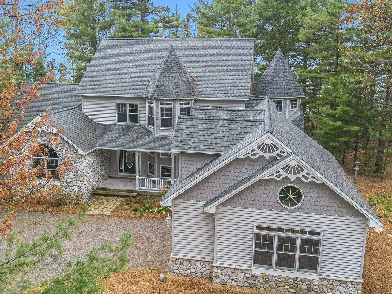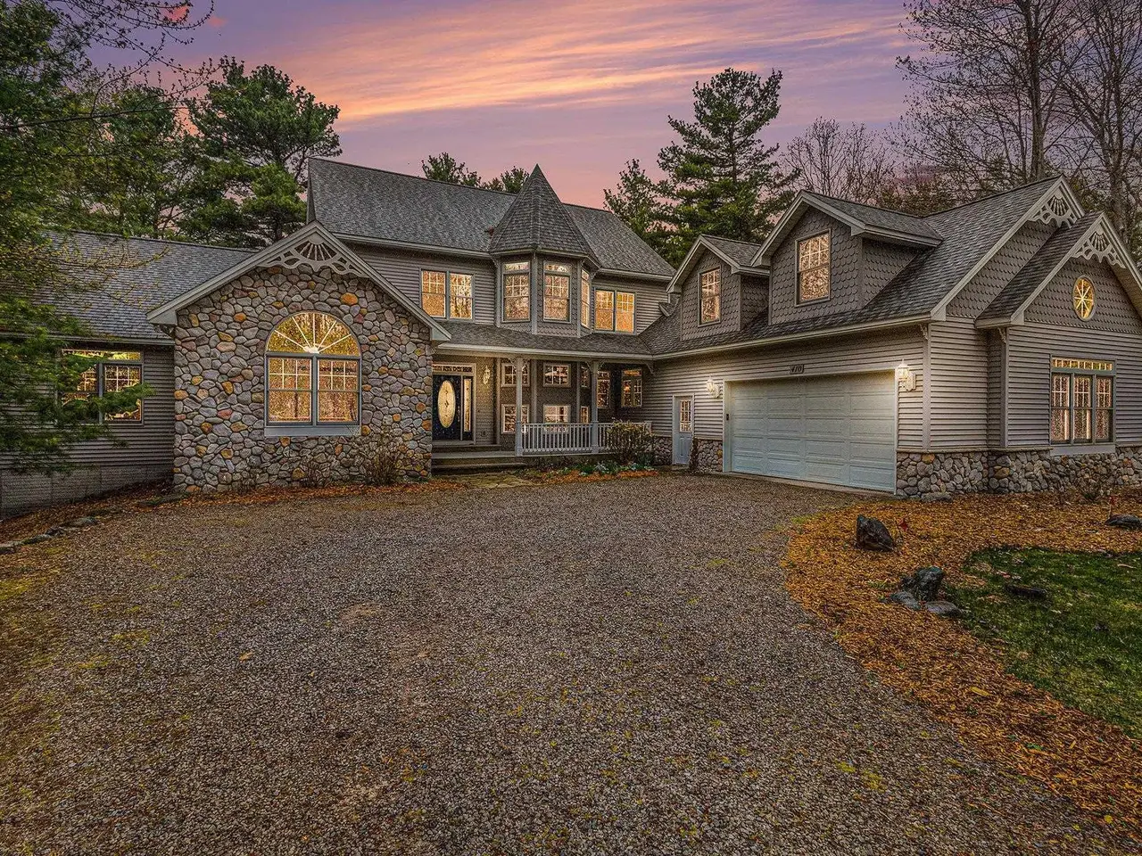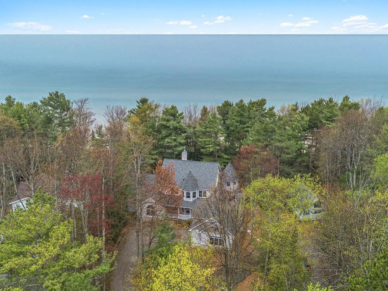 Discover your own piece of paradise with this stunning Lake Michigan waterfront property, where every day feels like a vacation. Enjoy direct access to one of the world's most beautiful freshwater lakes and immerse yourself in the ultimate lakefront lifestyle. Step outside to your 200' of private sandy beach on Lake Michigan and savor the soothing sounds of waves and breathtaking sunsets. Whether you seek relaxation or adventure, this home offers it all: kayak along the shoreline in the morning, spend afternoons boating or paddle boarding from your dock, and gather around a lakeside fire pit in the evening. Experience true Northern living in this stunning Custom Woodcraft home nestled on 3 acres located just minutes from Elk Rapids and Charlevoix. Designed for maximum enjoyment, this spacious retreat features expansive windows and spacious decking. Home features over 4500 sp. ft. of living space, 5 bedrooms and 5.5 bathrooms, thoughtfully designed for comfort and entertaining. The open floor plan showcases quality craftsmanship with natural wood finishes, expansive windows framing water views, and generous living spaces ideal for gatherings or peaceful relaxation. In addition to the main residence, the property includes a charming original Bellaire log cabin, perfect for guests or a cozy getaway, and a large pole barn providing ample space for storage, hobbies, or equipment. Experience the magic of Lake Michigan-embrace serenity, adventure, and the timeless appeal of living by the water's edge. Your ultimate waterfront lifestyle awaits.