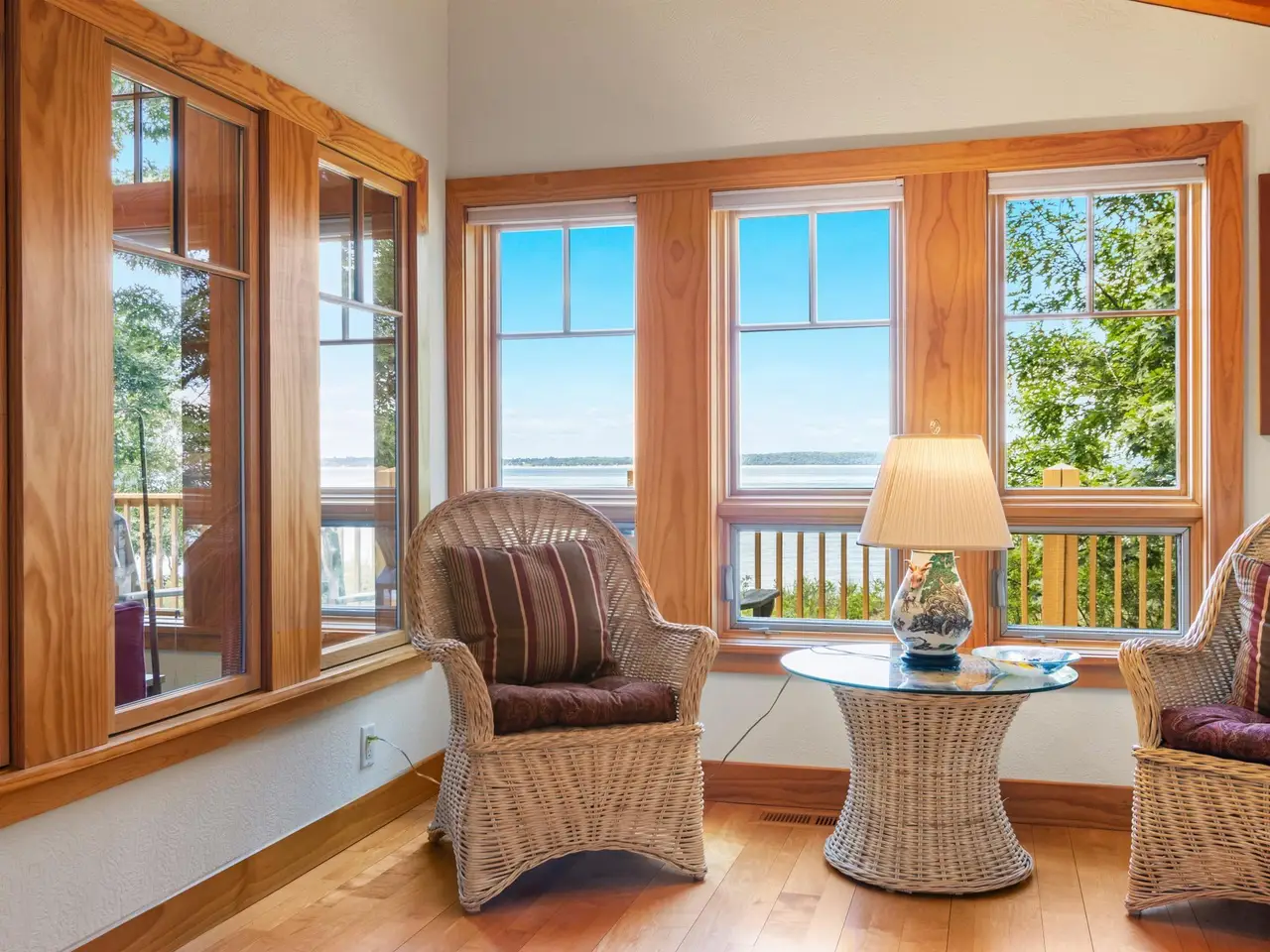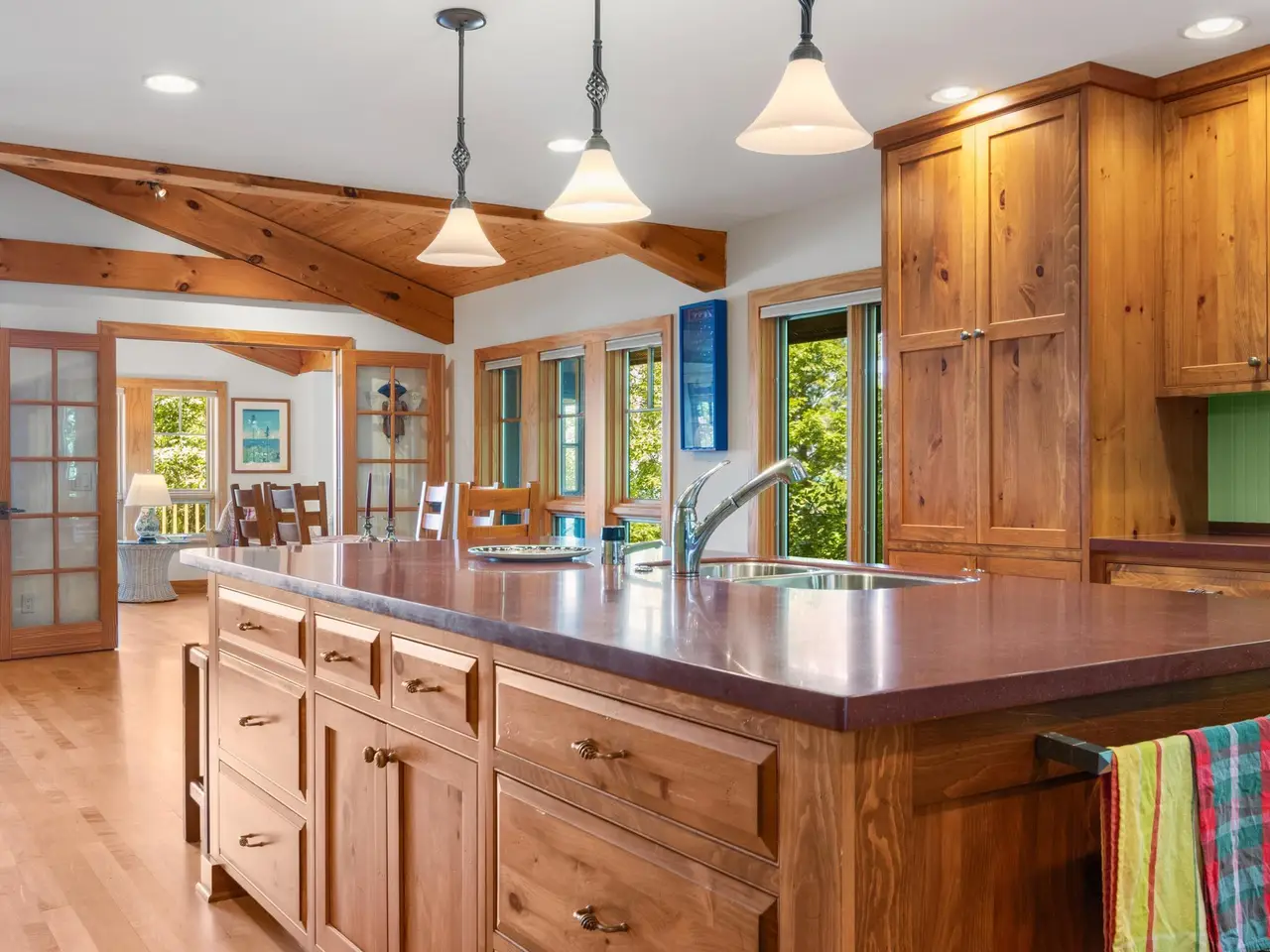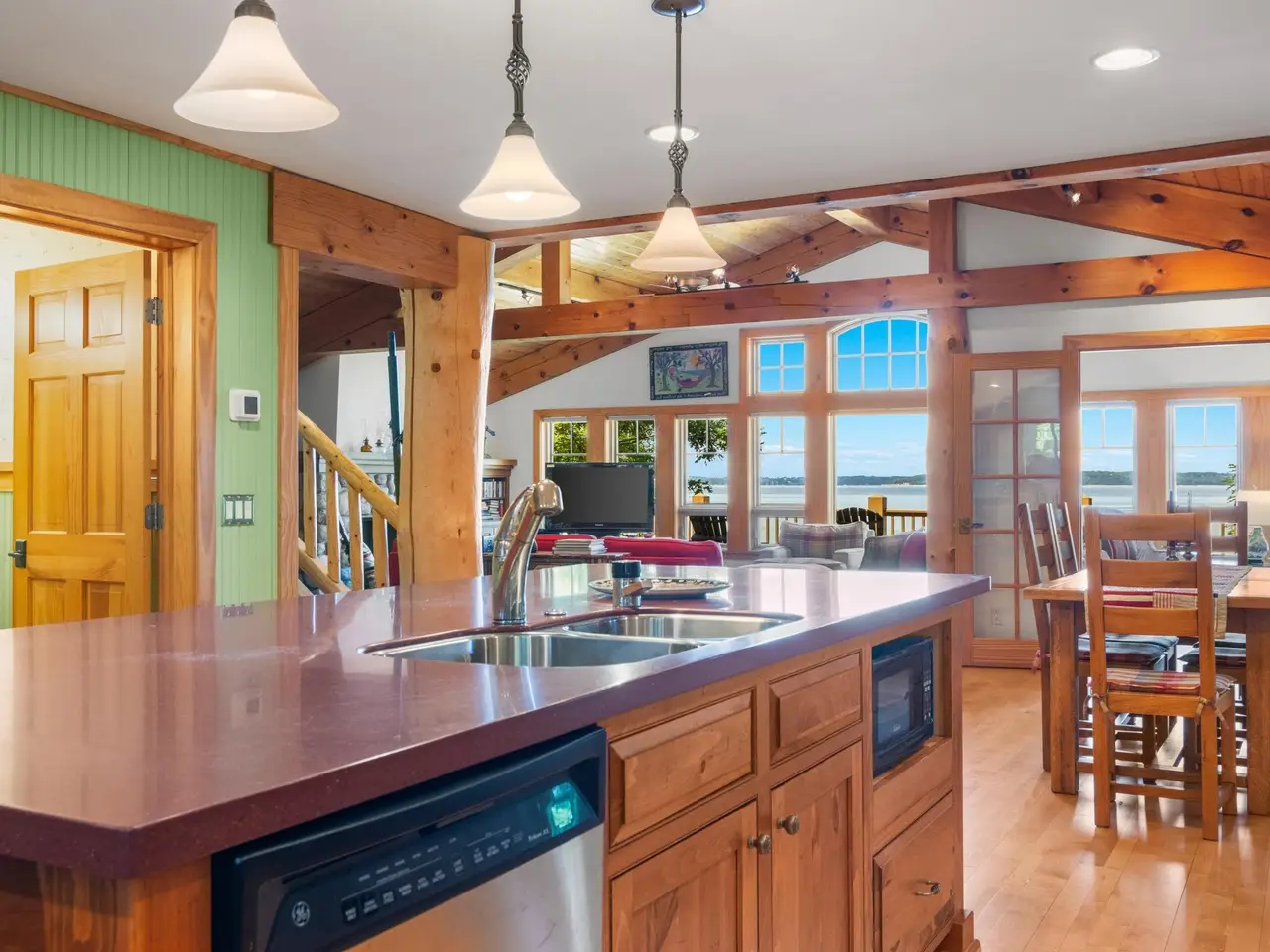 Grand Traverse Bay at its Finest! Welcome to your private retreat on the shores of Grand Traverse Bay-featuring 100 feet of pristine, crystal-clear waterfront, a sugar- sand beach, and breathtaking panoramic sunset views. Nestled on a large, wooded lot along a quiet, private road just 3.5 miles north of Elk Rapids. With 5-bedrooms and 3.5 baths, this beautifully crafted craftsman-style home (designer and builder Paul Maurer) features meticulous attention to detail and premium finishes throughout, perfect for year-round living or summer escapes. The open concept main floor includes a well-appointed island kitchen with wood floors, main floor laundry, a spacious sunroom overlooking the water, and a main floor primary suite with en suite bath, stone gas fireplace and built-in bookcases. Upstairs, two bedrooms share a jack and Jill full bath while the walk out lower level includes 2, additional bedrooms a family room, stone gas fireplace and screened in covered porch ideal for guests or multi-generational living. Covered large back porch and beautiful sun filled deck to gaze out on the lake front. Two -car detached garage, beautifully maintained home, and move-in ready. This property blends natural beauty with everyday comfort.
