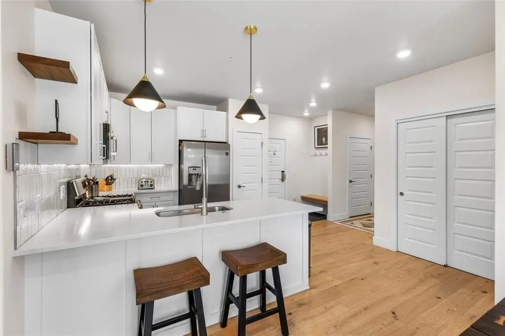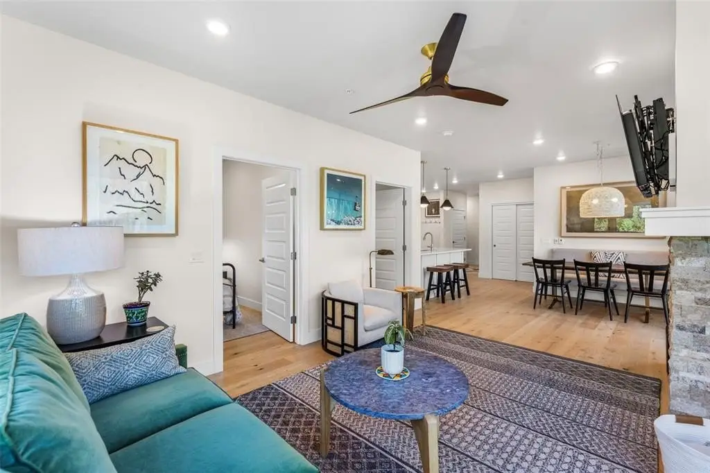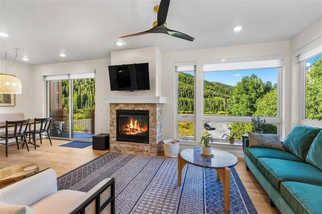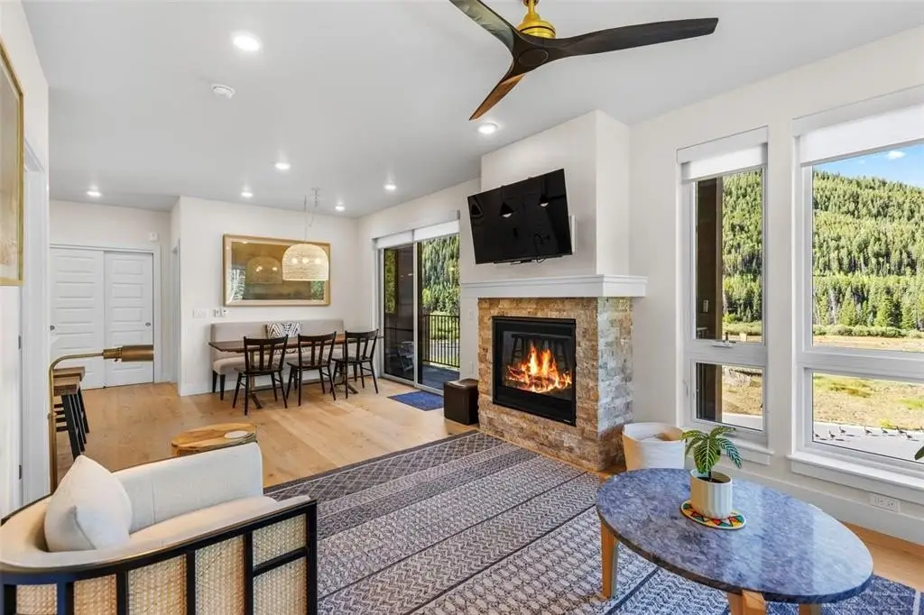This turnkey southwest facing, 3-bedroom + den corner alcove in the coveted Clearwater Lofts, blends newer construction with modern mountain style and includes numerous windows for ample natural light. This condo’s bright open layout has a lovely dining nook, stainless steel appliances, quartz counters, radiant heated floors, gas fireplace, and an oversized deck that showcases the Snake River and protected wildlife corridor views into national forest land. Amenities for this sought after development include heated covered parking with EV charging, three ski lockers, an additional generous storage closet in the garage as well as two onsite hot tubs to relax after a day of mountain adventures. Enjoy being steps away from the paved recreation path and with a shuttle stop right outside your door, you can easily access the Keystone Village and ski resort for effortless access to skiing, snowboarding, mountain biking, hiking trails, restaurants, and village shops. Optional membership for an additional fee can include access to the community’s outdoor heated pool, extra hot tubs and sauna create the ultimate alpine getaway. The short-term rental potential and extremely competitive HOA dues that include mostly everything, make this mountain condo opportunity rare in today’s market.