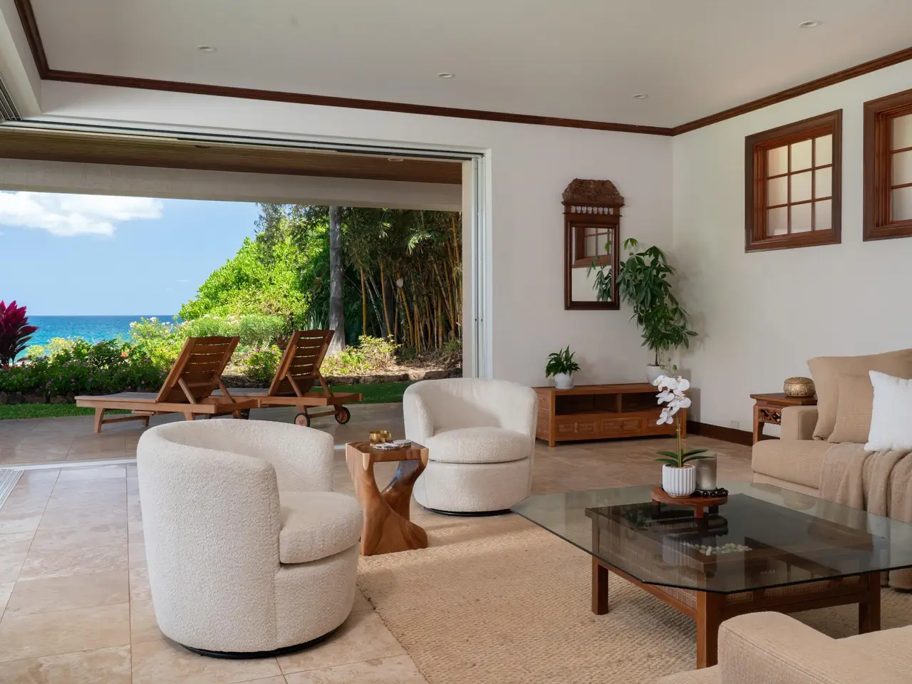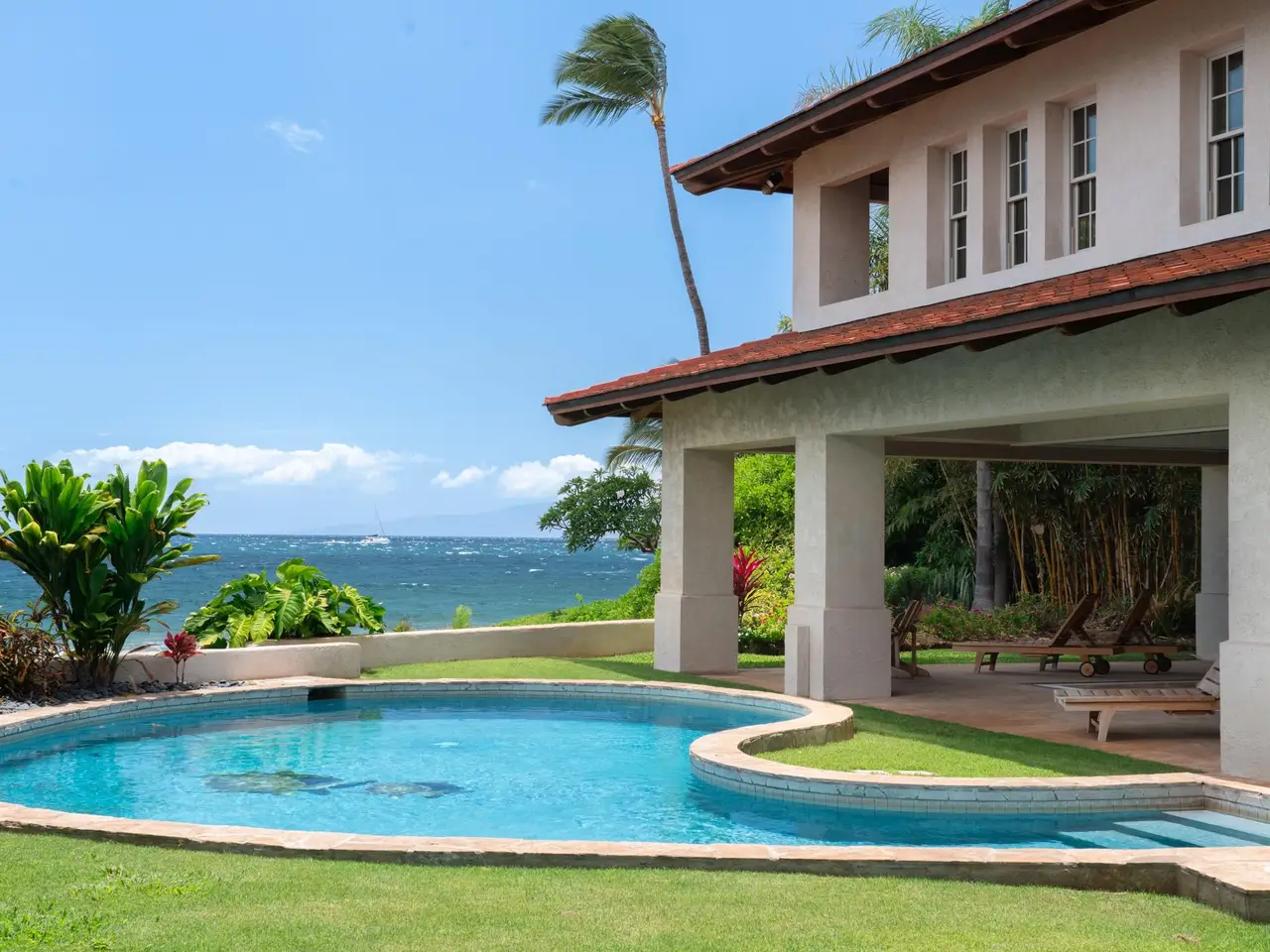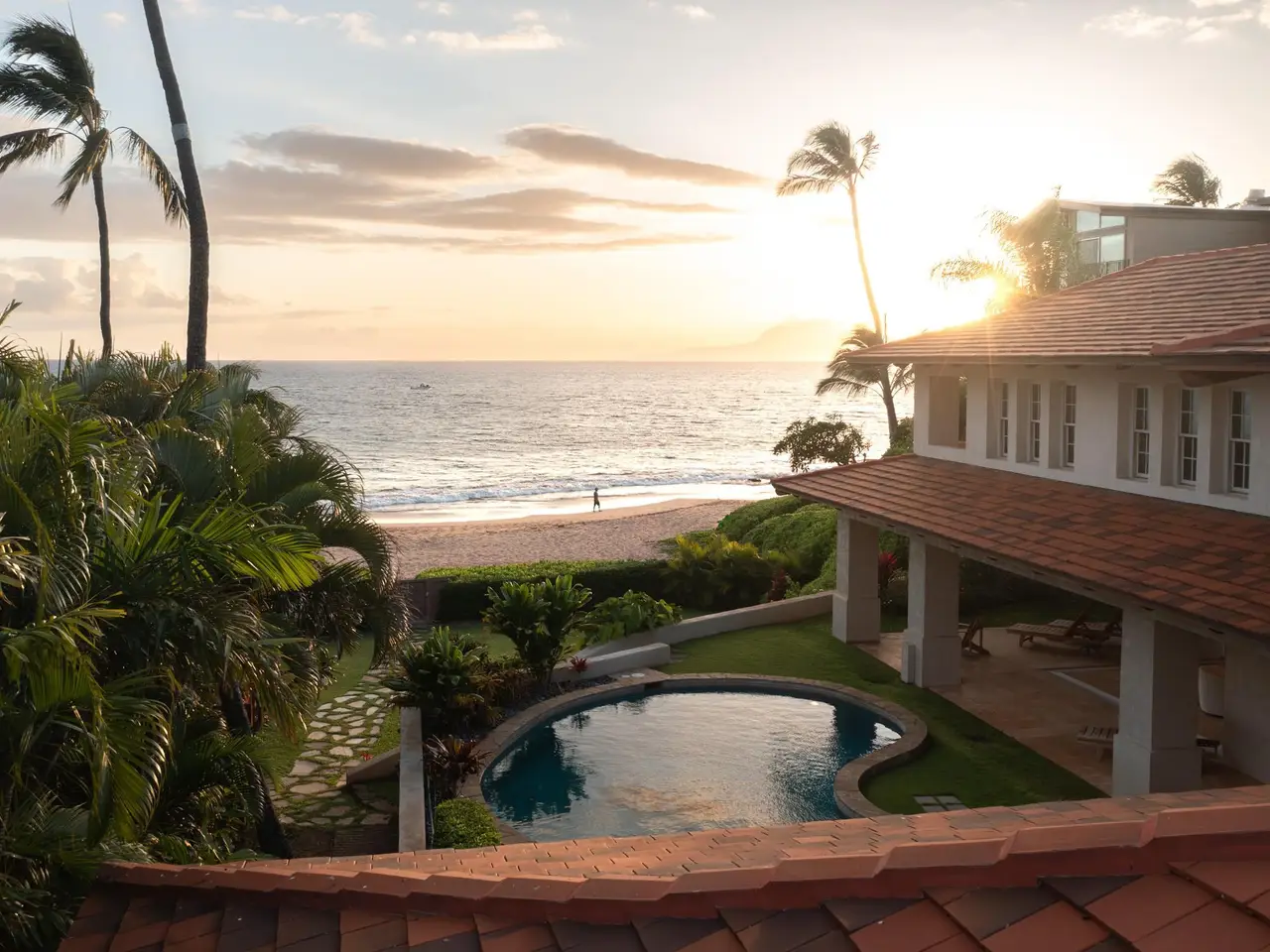 Hawaiiana meets contemporary design with this exceptional estate on the pristine shores of Keawakapu Beach. Beyond the gated entrance lies a world of relaxation and rejuvenation, where quality adjoins an unrivaled location. Upon entering the property, you're surrounded by lush tropical landscaping and the soothing sound of waves crashing against the shoreline. The grand entrance opens into a sprawling foyer where warm tones and gentle breezes are abundant. The open and airy interior seamlessly blend indoor and outdoor living spaces to capitalize on Maui's year-round sunshine and uninterrupted ocean views. The first level features an expansive kitchen with butlers pantry, sprawling great room, and the primary guest room with en suite. Outside the multiple sets of dramatic pocket sliders, is a large courtyard area and pool, just steps away from the sand. Below the pool area is an additional large yard, perfect for entertaining and an outdoor shower for rising off after a day at the beach. Retreat upstairs to the massive primary suite, where there are panoramic views of the Pacific Ocean and Keawakapu Beach. Complete with a luxurious en suite bathroom and private balcony. Additional highlights of this exceptional property include a spacious 1,000 square foot garage, providing ample space for your vehicles, water toys, and outdoor gear. Perhaps the best feature of this home are the unparalleled views of three neighboring islands – Molokini, Kaho'olawe, and Lana'i – from just about every room in the house. Experience the Maui lifestyle in this exquisite beachfront retreat, where every day feels like a vacation and paradise is truly found at home.
