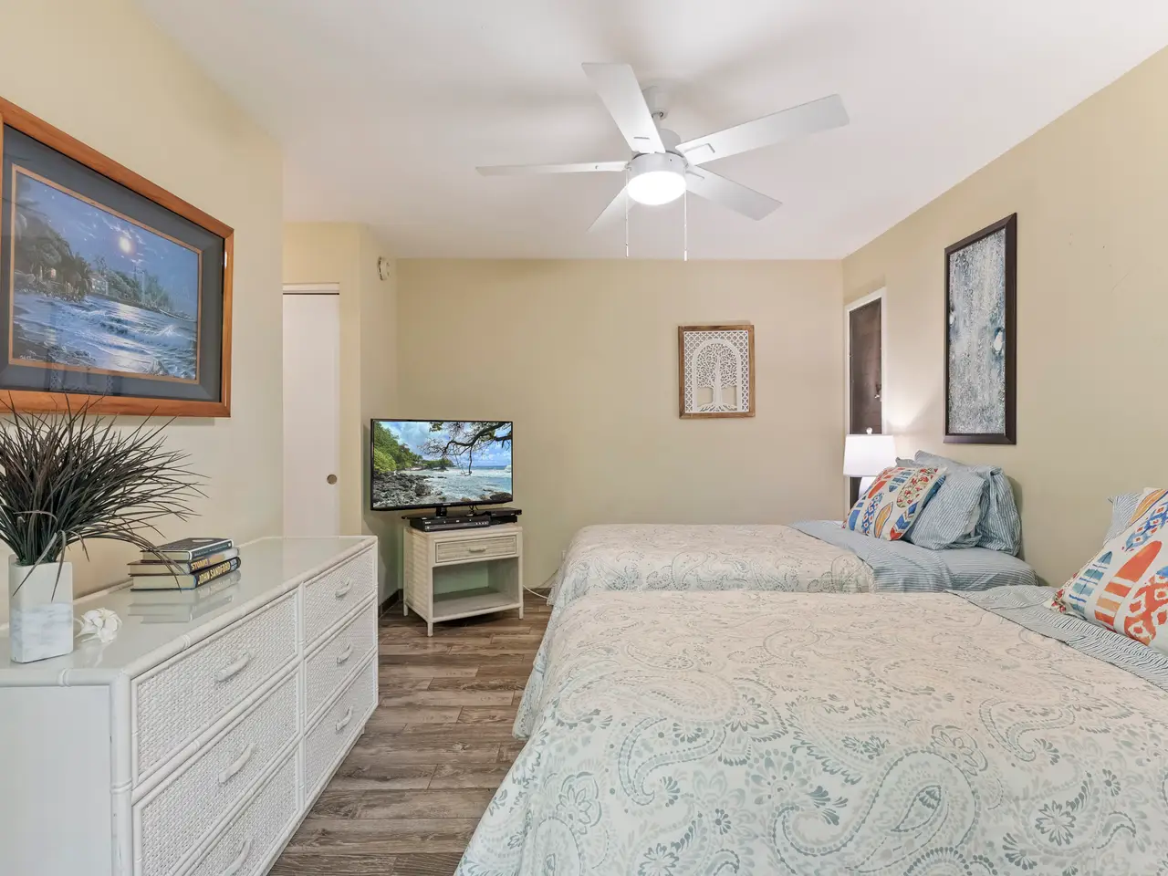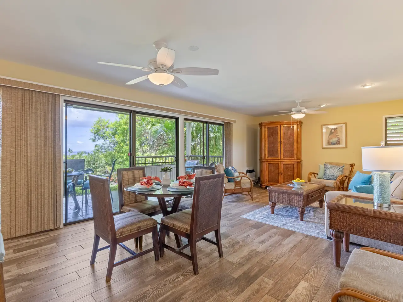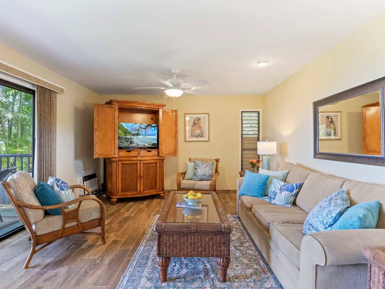 Wailea Ekolu 201 is a ground-floor vacation condominium located in the highly sought-after Wailea community. Featuring a spacious open-concept floor plan and a clean, modern interior, this residence offers a comfortable and refined retreat in one of South Maui’s premier destinations. Enjoy panoramic ocean views from the living room and kitchen—ideal for watching sunsets or spotting whales in season. Surrounded by lush tropical landscaping, the unit offers a quiet, private setting within the well-maintained Wailea Ekolu complex. Situated along the Wailea Blue Golf Course, the community offers scenic surroundings and beautifully landscaped grounds. Residents and guests enjoy access to multiple swimming pools, BBQ areas, and a network of lush walking paths throughout the property. Just a short walk to The Shops at Wailea + Wailea Village Shops, fine dining, and only minutes from world-class beaches, Wailea Ekolu 201 combines convenience, natural beauty, and an exceptional South Maui location. Whether used as a vacation rental or personal getaway, this unit is a smart investment in the Wailea lifestyle.