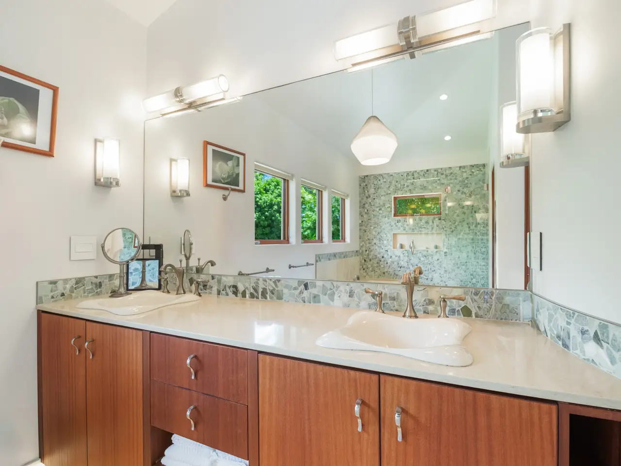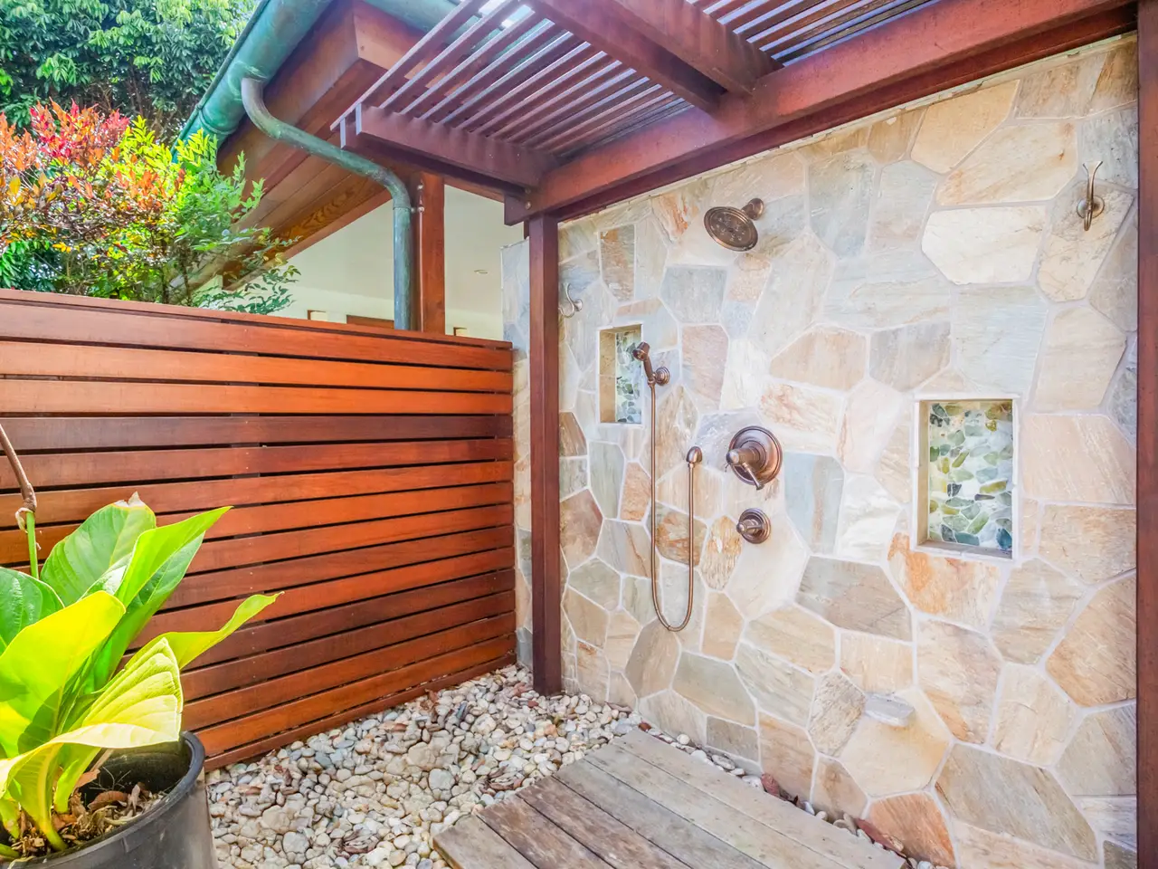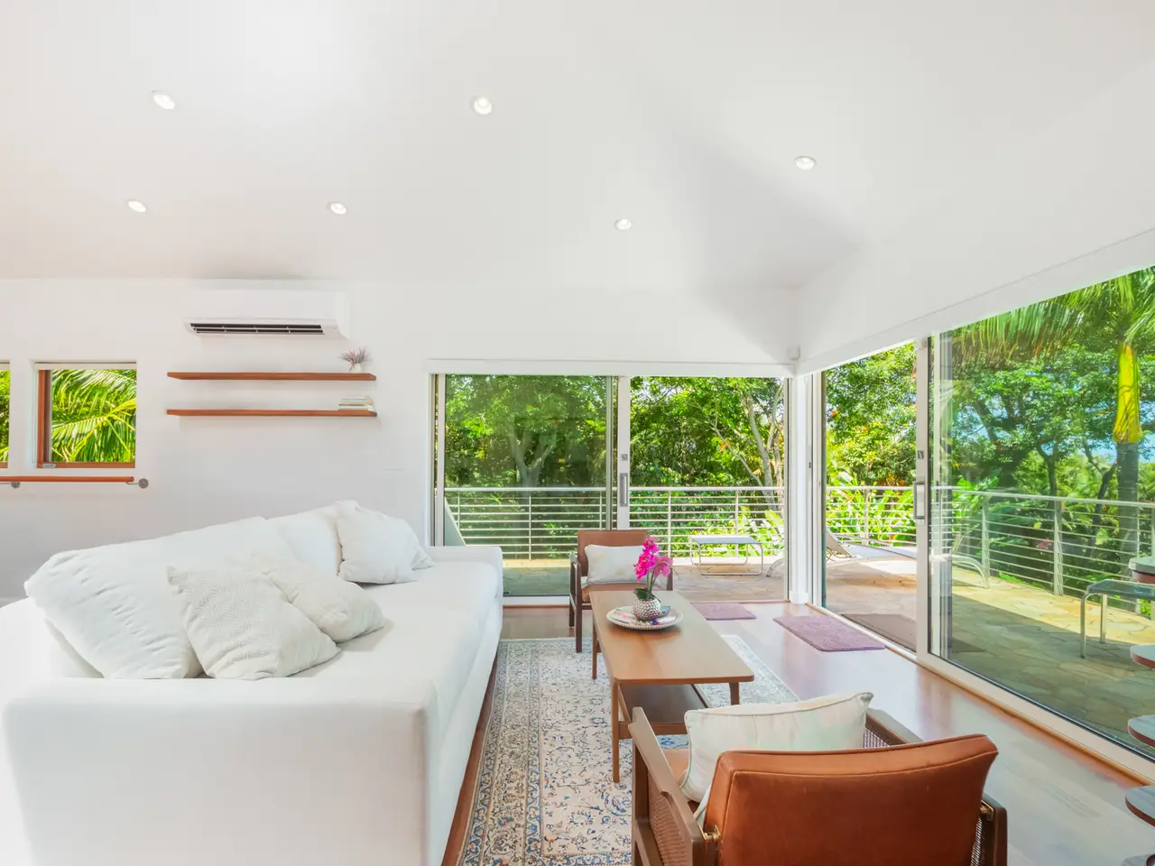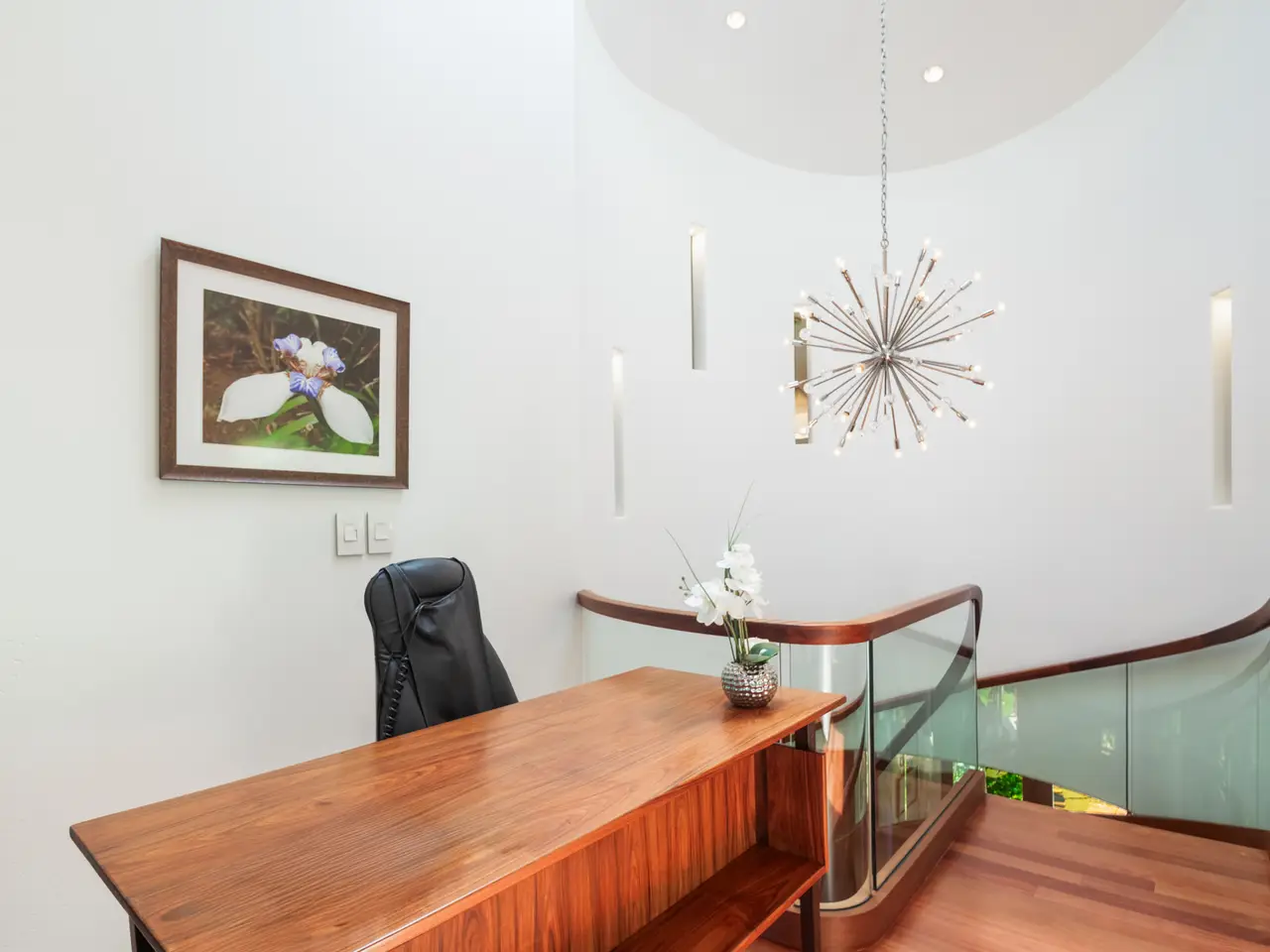Set above one of Kauai’s most iconic stretches of coastline, this 1.3-acre property offers private, deeded access to coveted Secret Beach via a scenic footpath. Built just 10 years ago and meticulously maintained by its original owner, the 2,000 sqft residence is tucked into a lush botanical landscape with ocean views and a focus on indoor/outdoor living. Sapele wood flooring runs throughout, with tile and stone finishes in the bathrooms. A sculptural Sapele wood and glass floating staircase anchors the two-story layout. Upstairs, the main living space opens to an expansive lanai with sweeping ocean and sunset views. Multiple sliding doors and well-placed windows bring in natural light and steady trade winds, blending the interior spaces with the surrounding gardens. The home is fully air-conditioned and equipped with a whole-house water purification system, electric tankless water heater, and a 14-panel owned photovoltaic system. Additional highlights include a dedicated dance or exercise room, a tropical outdoor shower off the half bath, and copper gutters and trim. Infrastructure is in place to support future additions, including underground electrical for a potential pool. An attached garage and carport offer ample storage for all the gear needed to enjoy Kauai’s outdoor lifestyle. Select custom furnishings are included, and concept plans are available to expand the residence into a 3-bedroom, 3.5-bath estate. A private, well-executed retreat in one of the North Shore’s most sought-after locations—just minutes from Kilauea town, the historic lighthouse, world-class golf in Princeville, and a collection of Kauai’s finest beaches.