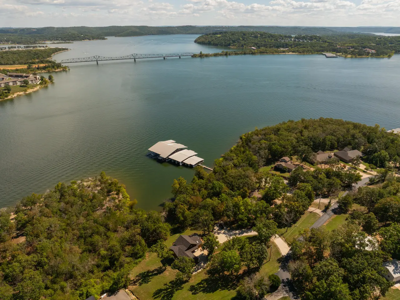 Lakefront gentle to the water! View of Tablerock Lake & the Kimberling City Bridge! THIS LOVELY HOME BOASTS LAKEVIEWS BOTH LIVING AREAS, BEDROOMS AND OFFERS A LARGE BACK DECK FOR ENJOYMENT AND ENTERTAINING. THIS LOVELY LAKEFRONT HOME NOT ONLY OFFERS A 14 X 40 BOAT SLIP ADJACENT TO THE PROPERTY FOR AN ADDITIONAL $85,000, BUT THIS HOME ALSO OFFERS 2 ADDITIONAL LOTS (ONE LAKEFRONT ADJOINING THE OTHER) WITH TONS OF ELBOW ROOM ON BOTH SIDES WITH STREET ACCESS FOR A FUTURE SHOP/GARAGE BUILDING OR GUEST HOUSE. BOTH LOTS ARE OFFERED FOR AN ADDITIONAL $75,000!!!RARE AND VALUABLE ASSETS!!! WITH WELL OVER 200' OF SHORELINE, THIS HOME IS IN A POPULAR LAKESIDE COMMUNITY KNOWN AS ARROWHEAD ESTATES. WITH 5 DEDICATED BEDROOMS, THIS LAKEFRONT HOME WILL SLEEP 17 GUESTS, MASTER HAS KING BED, THERE ARE ALSO 3 WITH QUEEN BEDS, ONE WITH A FULL BED. THERE ARE 2 DAYBEDS WITH TRUNDLE UNITS IN THE LOFT (HOME MOSTLY FURNISHED). LOCATED 10 MINUTES TO KIMBERLING CITY, HARTER HOUSE, POST OFFICE AND CLOSE TO THE MARINA......7 MINUTES BY WATER TO THE GAS DOCK. BRING YOUR FAMILY AND MAKE THIS YOUR LAKEFRONT RETREAT!