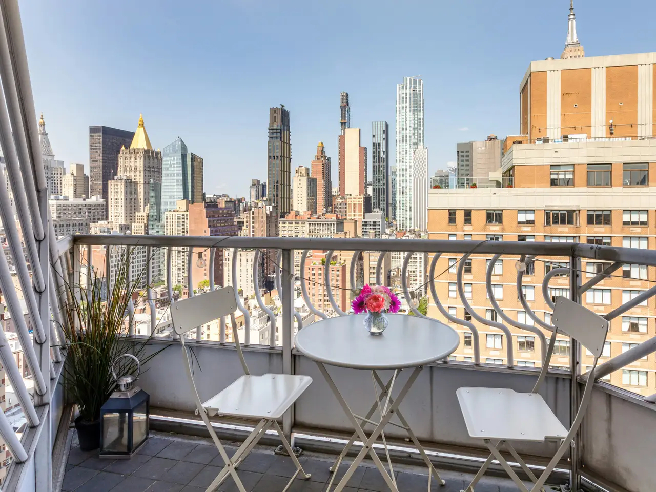 Spectacular two Bedroom, two Bath Condo, Washer/Dryer, Terrace, & Views! Enter this home's welcoming foyer and transition into a large, more than twenty one foot long living room. You will immediately be impressed by the high ceilings, western views, and light pouring in from the wall of floor-to-ceiling bay windows. Enjoy entertaining friends and family in this oversized space. There is also a private highly coveted terrace for enjoying stunning sunset views . This home features a beautiful chef's kitchen with a thoughtfully designed layout. Opening into the living room, it incorporates an attractive breakfast bar. The cabinetry and appliances have been tastefully selected to compliment the kitchen's modern design. Continuing on into the bedroom wing, the spacious more than nineteen foot long primary bedroom has floor-to-ceiling bay windows and ample space for a king size bed with room to spare. There is an ensuite bathroom with a closet, grey and white honed marble floors and walls, and a deep soaking tub with shower combination. As in the living room and master bedroom, the generous second bedroom boasts a wall of floor-to-ceiling bay windows. There is a nicely proportioned closet and room for a queen size bed. The second full bathroom has beautiful marble flooring and walls, a separate closet, and soaking tub with shower combination. Adding to the convenience and thoughtful design of this home are its attractively-outfitted California closets. There is also a front loading washer and dryer in it's own closet off the main hallway. It is directly across from a huge walk-in storage closet. This apartment's signature ten foot ceilings easily accommodate ambient recessed lighting and speakers throughout, further highlighting the overall feeling of spaciousness, comfort and convenience. The ultimate in modern luxury and convenience, the Future is a white glove full service condominium located at the crossroads of Murray Hill, Gramercy Park and NoMad. Designed by award-winning architect Costas Kondylis, the Future is a "grand dame" of modern architecture. With only five apartments per floor there is an intimate, boutique feel. It is convenient to all transportation, excellent schools, a public library, wonderful restaurants, renowned cultural institutions, 5-Star hotels, and steps to all shopping (including a Trader Joes next door and a Fairway on block away!) There's even a 15-cinema AMC multiplex around the corner. Amenities include a live-in super, full time doorman and concierge, fitness center, children's playroom, parking garage (with direct building access), bicycle room, additional laundry facility, private storage, and a spectacular roof deck with 360-degree views. Free Wi-Fi is available on the roof deck and in the fitness center. A beautifully landscaped plaza borders the building's entry and glass-walled lobby. Inside, the lobby and hallways are tastefully appointed to compliment the building's award winning design. There's even a concierge waiting to hand you your mail as soon as you arrive home. Pets are also welcome. This fine home is in a truly special building and neighborhood. Please call me to schedule a private viewing.