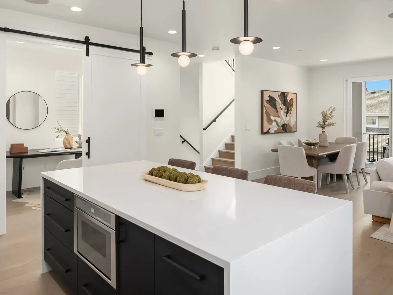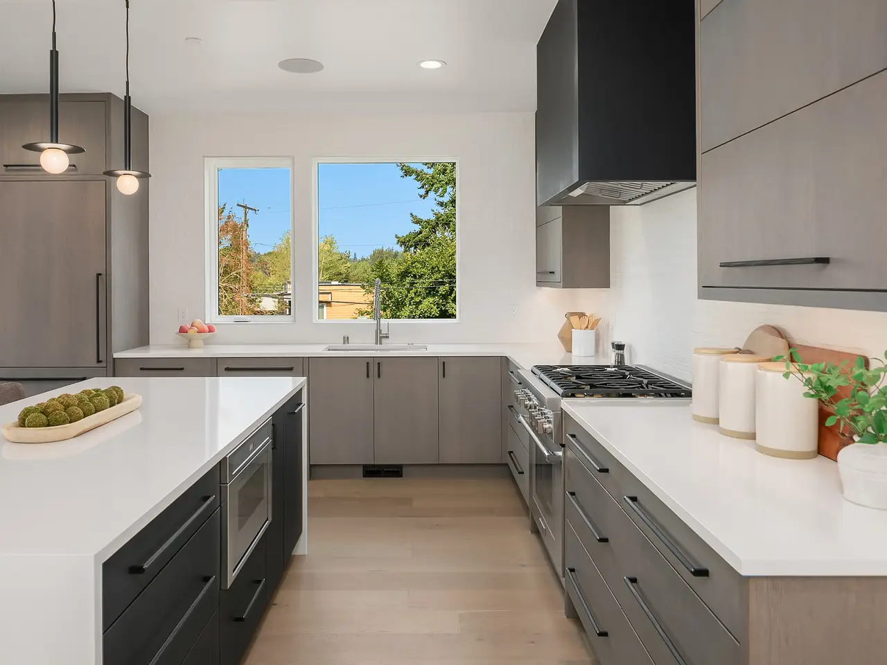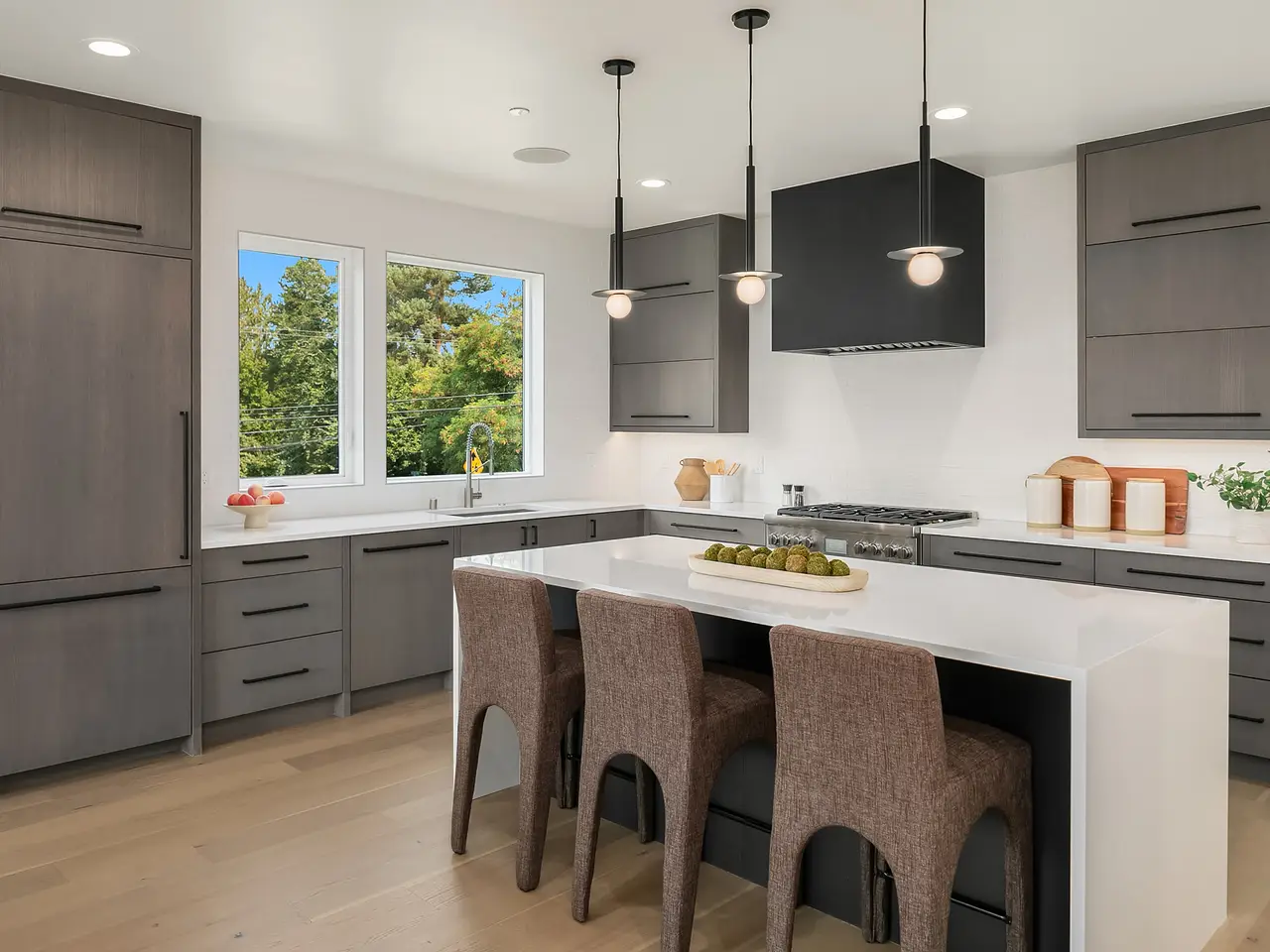 Enfort Homes presents, 'Maverick', ideally located in the Moss Bay neighborhood, just steps away from Google and all the DT Kirkland Amenities. These brand-new homes boast a modern, seamless aesthetic with elevated finishes and designer touches. 3 spacious view homes to choose from to suit an urban lifestyle ranging from 2647 to 3722sf. Large great rooms with patios and yards, sleek kitchens curated for the inspired chef, fully equipped with Thermador appliances. Lot 1 features main floor office + bedroom + 3/4 bath. Entertainment sized bonus room in the lower-level w/ guest suite. Upper-level features luxurious primary suite with gas fireplace and lavish spa bath + walk-in closet + 2 additional en-suites. A/C, 2-car garage with EV charging.