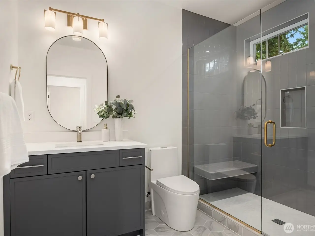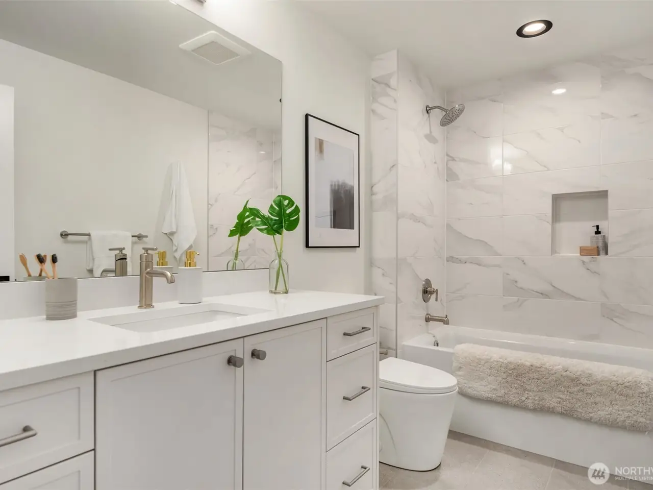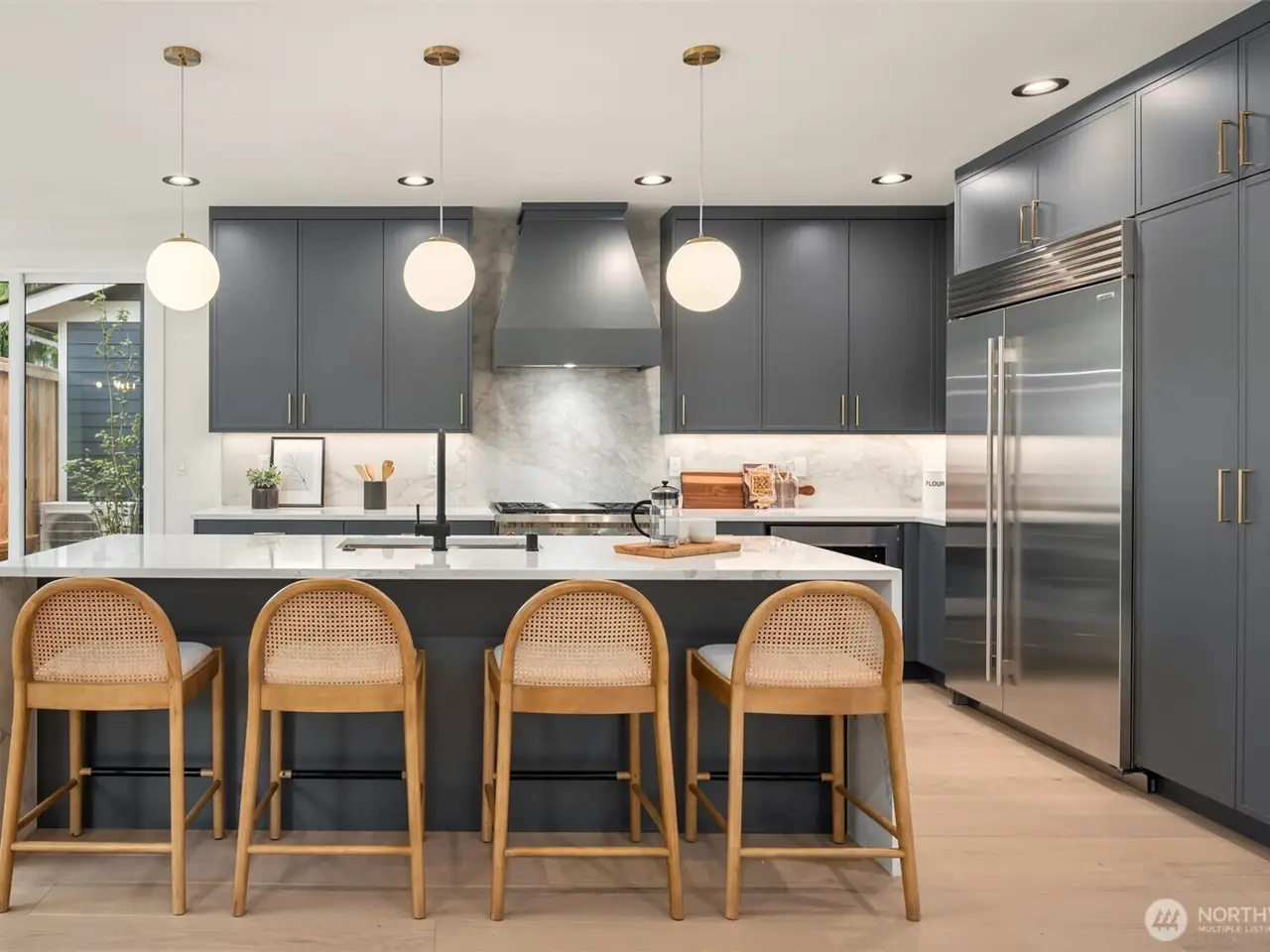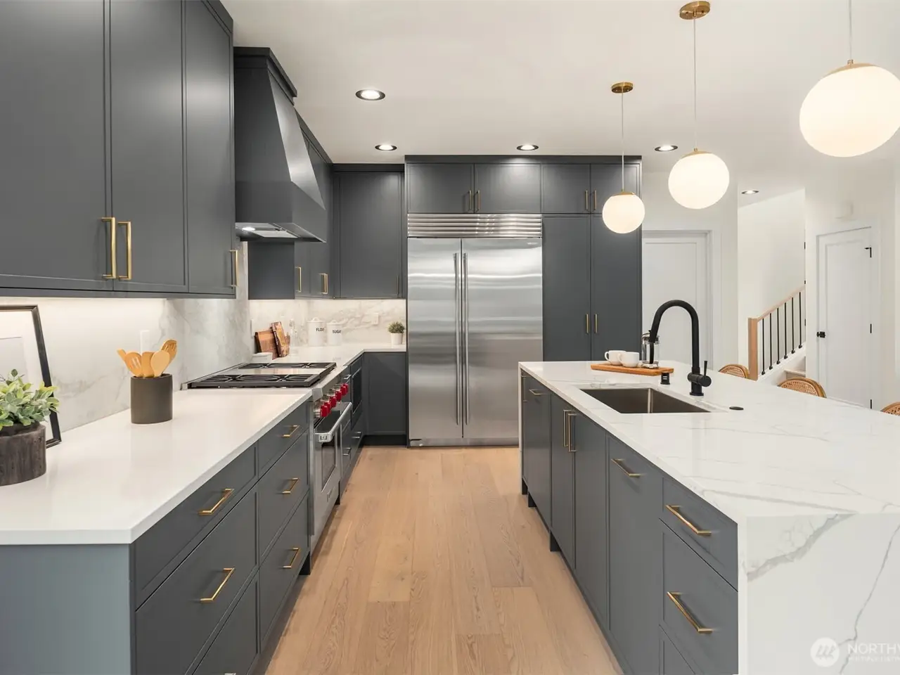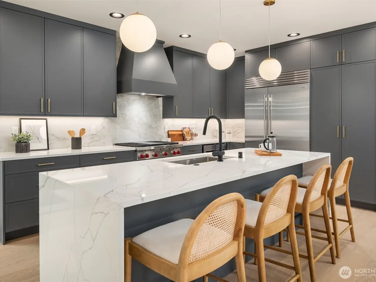 Prestigious Builds presents Kirkland's latest luxury new construction. Nestled on a quiet dead-end street in the coveted Norkirk community, this exceptional residence boasts a sundrenched interior loaded w/chic & sophisticated designer finishes. Crafted for effortless entertaining, the warm & inviting main level offers an open concept great rm w/dedicated living & dining areas, chef's epicurean kitchen & rare 5th BR/office. Expansive upper level provides 4BRs incldg sumptuous primary suite w/private veranda & stunning sunset views. Sought-after location in the premier East of Market community: just steps from incredible parks & award-winning Lake WA schools, w/easy access to vibrant shopping/dining, DT Kirkland waterfront & Juanita Village.