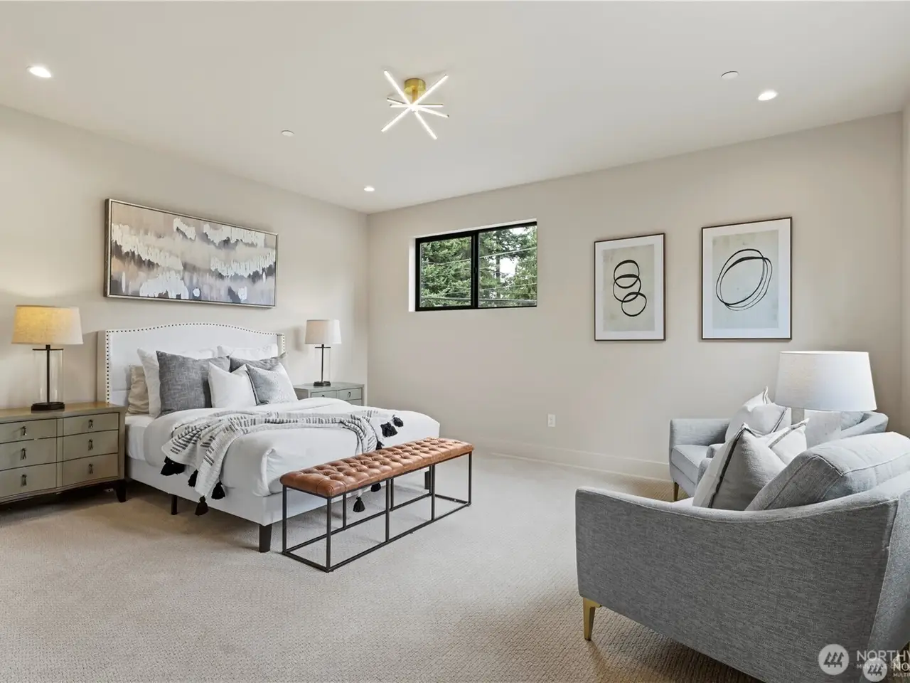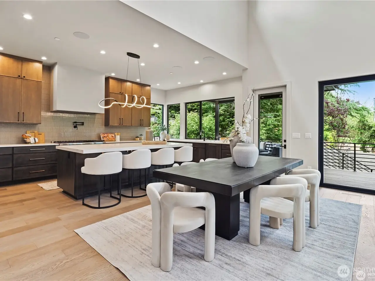 JUST COMPLETED NEW CONSTRUCTION! Grand Primary Suite on Main Floor w/Level Entry! New 5 BD/5 BA custom home by premier builder Serena Construction, sophisticated luxury in every detail. Coveted central Houghton location! Open concept blends Great Room w/85 fireplace, dining area w/entertainer’s buffet & gourmet kitchen w/high end appliances & walk-in pantry. 480 sqft outdoor covered deck w/heaters & speakers. Also on main, guest suite, office, laundry rm & mud rm. 3BD, 2BA on upper w/ bonus/media rm & 2nd laundry. Built-in gas-fueled generator, smart tech for lighting-heating-security, 2 gas furnaces & 2 heat pump/hot water heaters. Expansive 826 sqft 3-car garage & EV charging conduit. Solar panels & fully fenced back yard.