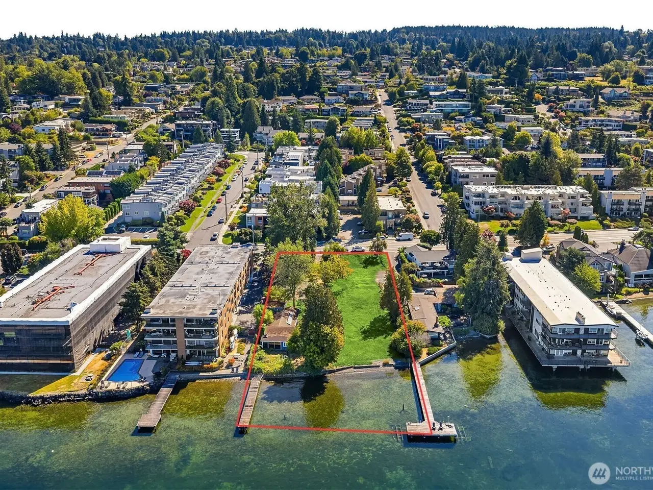 Secure your piece of prime Kirkland waterfront! This nearly one-acre, level lot boasts rare WD1 zoning, allowing for the development of 8-10 luxury townhomes or condos, or for building your dream waterfront estate. With 125 feet of shoreline & two docks (private and shared), you'll enjoy sweeping, west-facing views of the Seattle skyline & Olympic mountains. Enjoy the sunset and sunrise. Its desirable location provides easy access to Carillon Point's vibrant restaurants and shops, a short stroll to downtown Kirkland's amenities, proximity to the Kirkland Corridor Trail and three waterfront parks. Located near major tech employers Google and Microsoft. Discover an extraordinary development prospect in a truly coveted Kirkland waterfront setting.