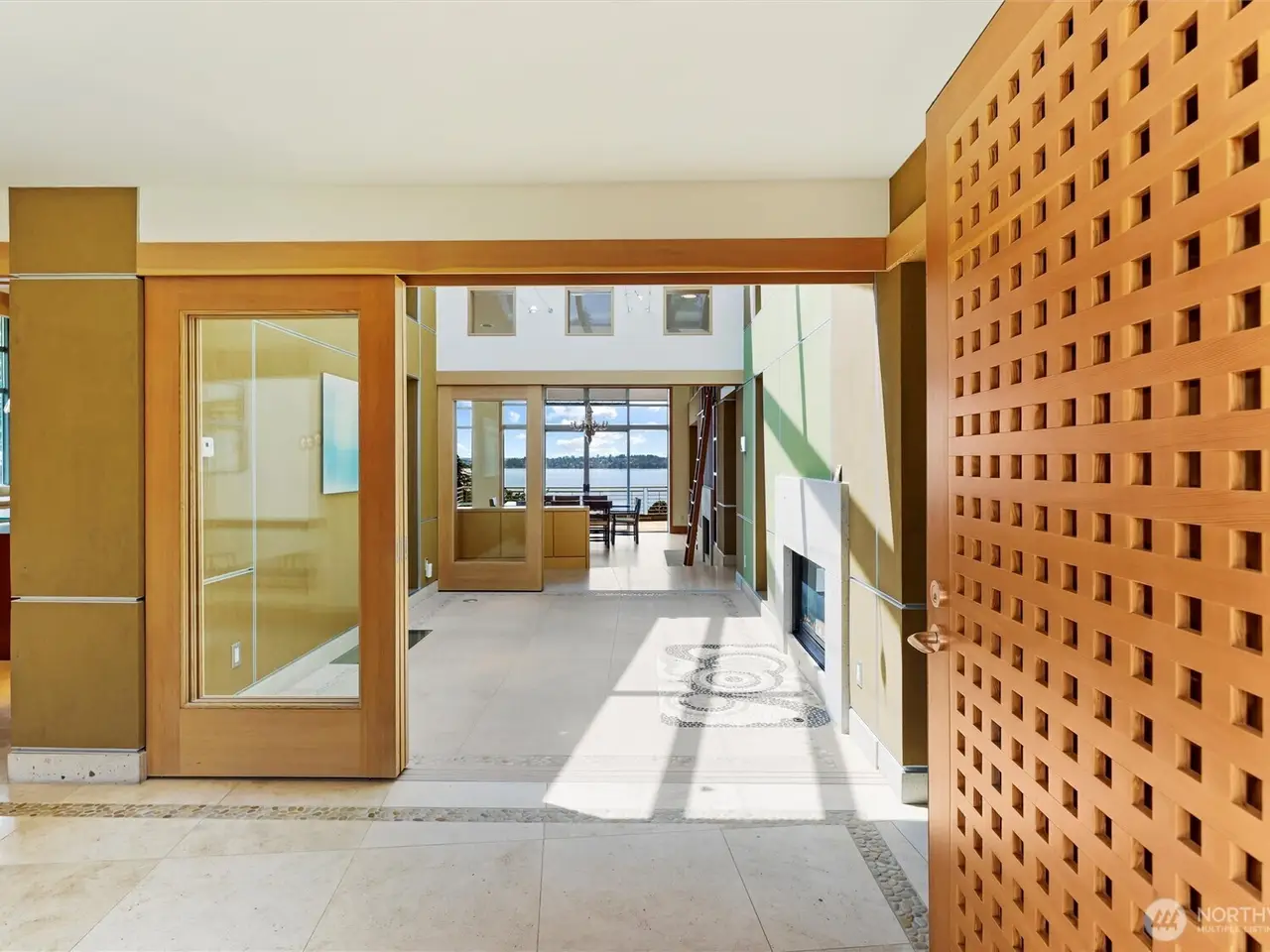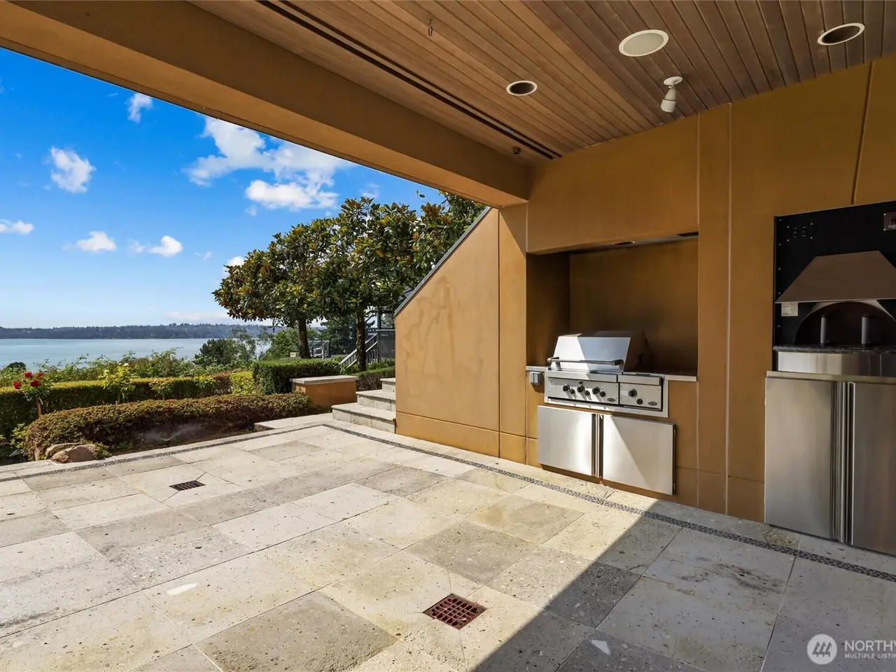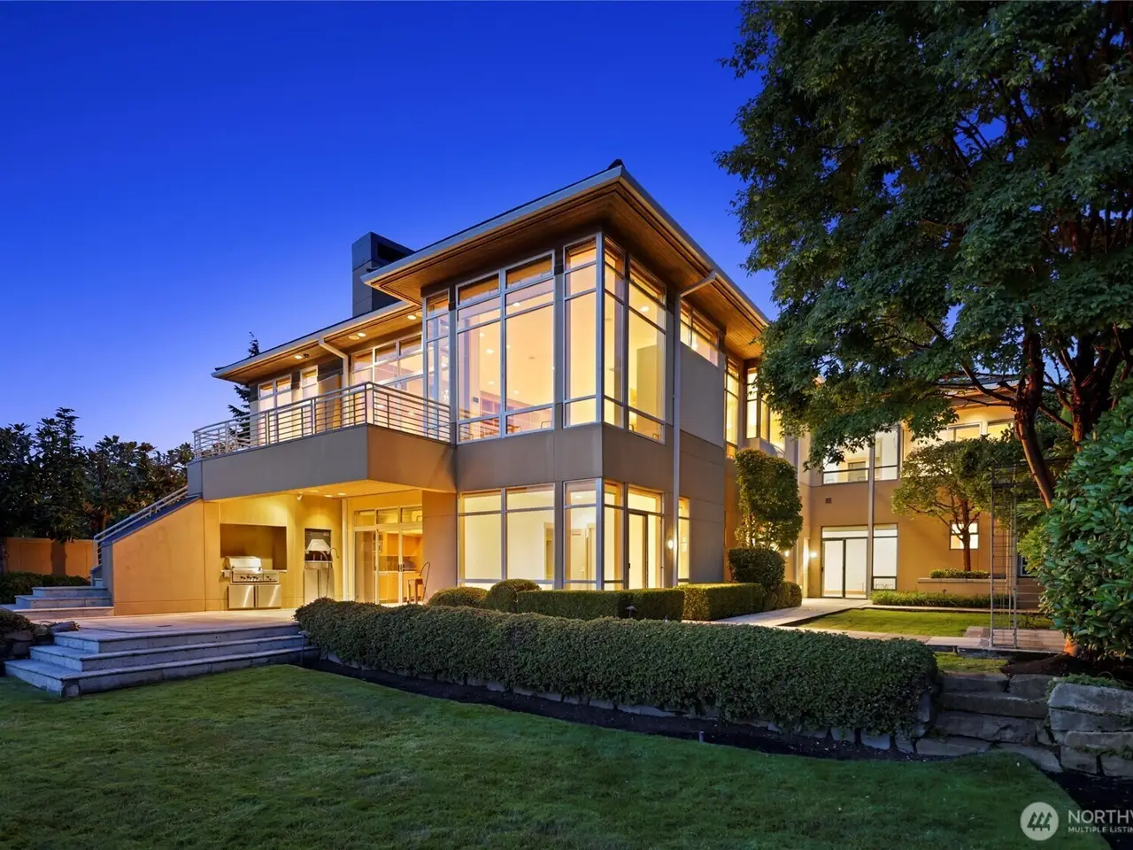 This luxury home boasts a rare bluff setting w/ one of Kirkland’s best views. Designed by Robert Reed, it blends modern PNW architecture w/ Mexican designs inspired by Luis Barragán & Ricardo Legorreta. Built by Bender Chaffey, it features 36” thick angled stucco/metal walls. The 6 BD, 5.5 BA, 5,500 SF home includes an entry w/ a fountain, indoor courtyard w/ fireplace, real stucco, natural stones, & doors like modern Mexican homes. It offers high ceilings, large windows, built-ins, multiple courtyards, a living room w/ fireplace, formal dining, nook, exquisite kitchen w/ views, deck, primary bedroom w/ spa-like bath, 2 offices, rec room w/ kitchenette opening to patio, study/library, craft room, beautiful gardens, & a 3-car garage.