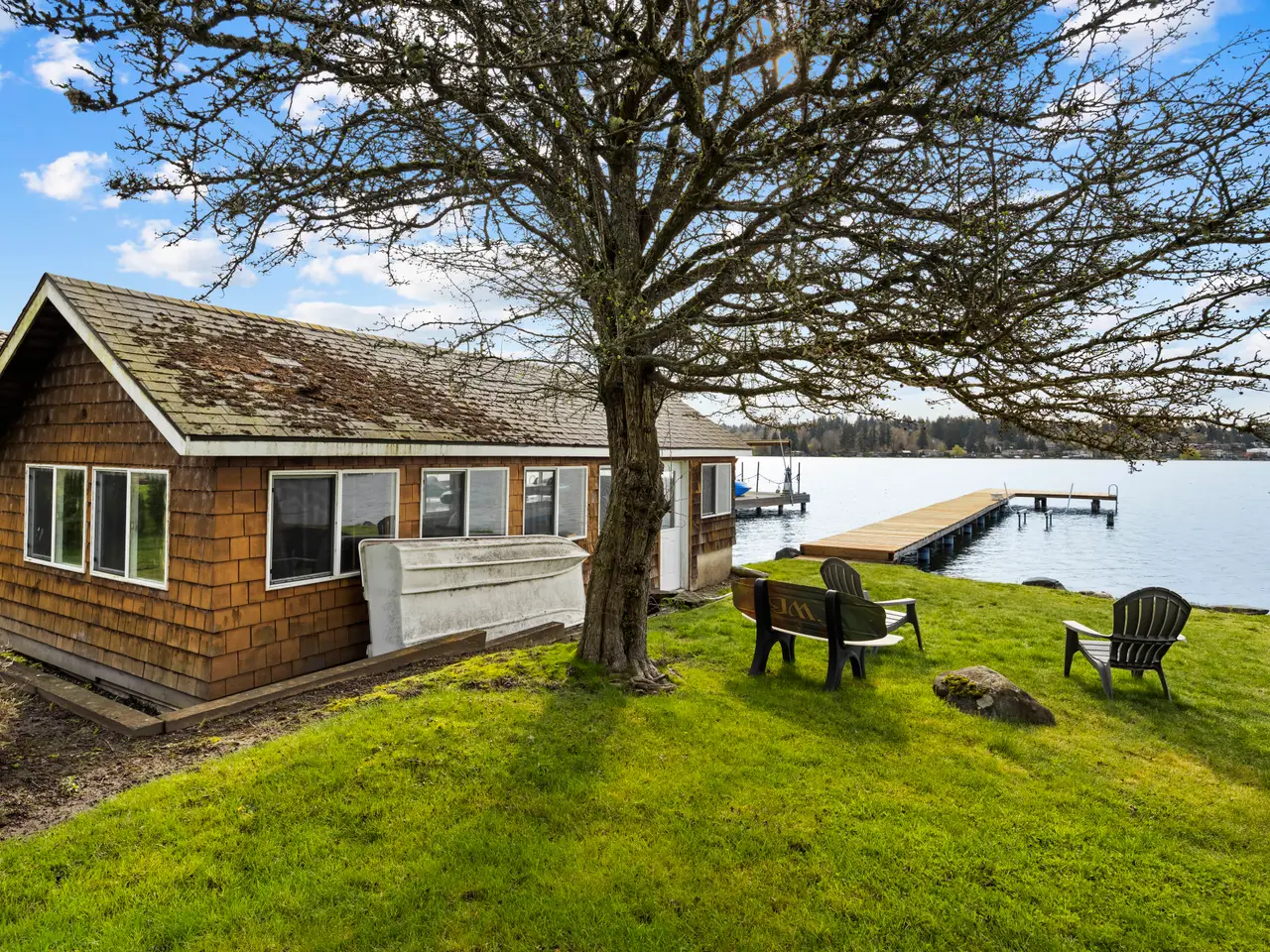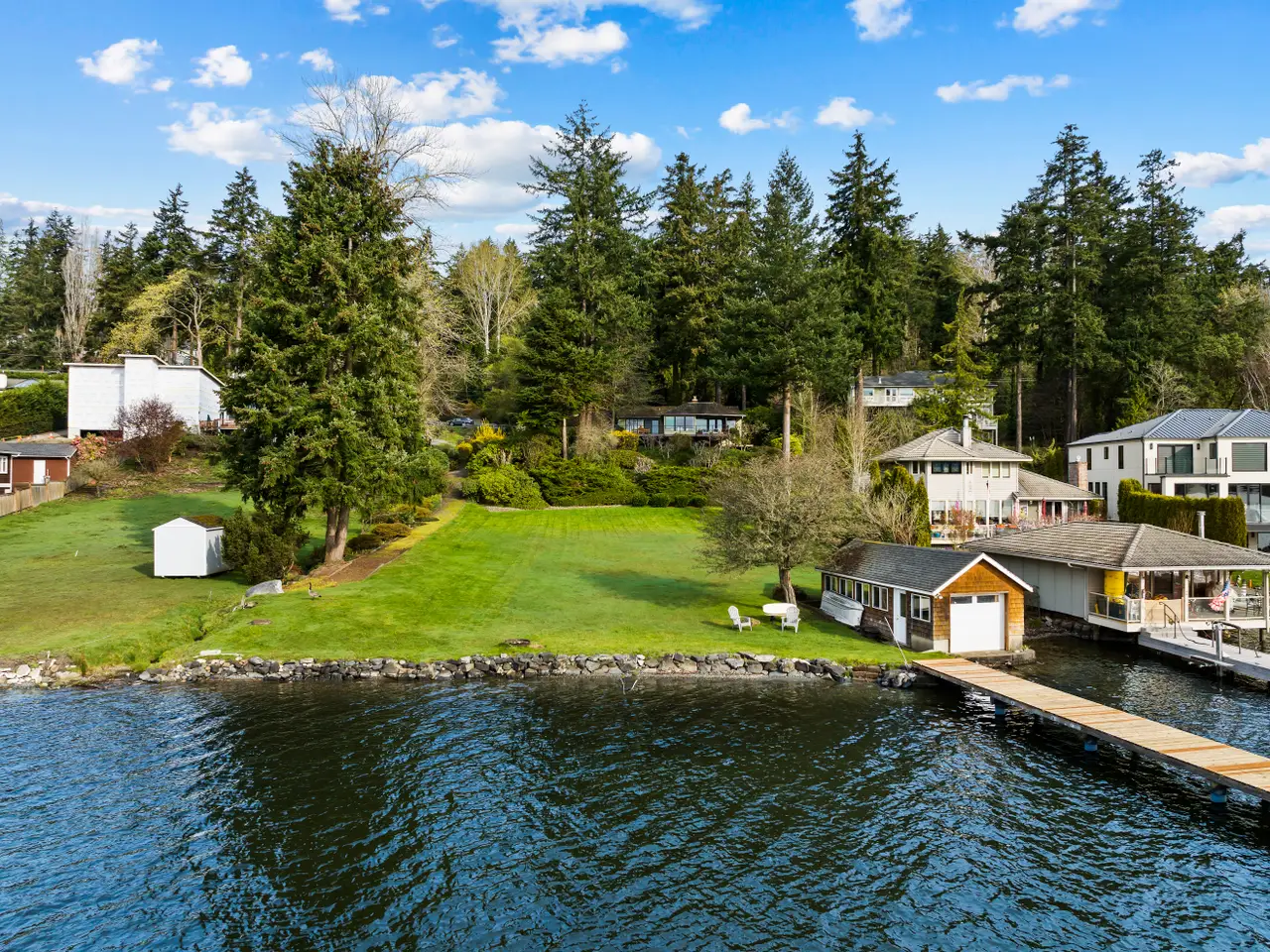 Spectacular waterfront acreage with incredible 119 feet of coveted south-facing Juanita Bay waterfront! Property includes a 5 bedroom, 3 bath 2,730 square foot home, originally constructed in 1922 with significant renovations including an updated kitchen, hardwood floors and large newer composite deck perfect for entertaining. 47,508 square feet (1.09 acres) with mature plantings and huge lawn to waterside boat house with rails to the water and 100' dock with 6'+ deep moorage. Enjoy the amazing waterfront lifestyle and panoramic southerly vistas looking at Mt. Rainier and the Bellevue city lights along with the ever-changing waters of Lake Washington! Near perfect location, just a few blocks from Juanita Bay Park and vibrant Juanita Village, 5-7 minutes to downtown Kirkland's eclectic shops and restaurants and I-405. Wake to rose colored sunrises and be mesmerized by the golden sunsets reflecting on Bellevue and Mt Rainier skylines, and nearly endless maritime performances. This magnificent level waterside oasis with boat house and large, level lawn is the perfect venue for festive celebrations with friends and family - or peaceful enjoyment of life at its best. Whether you choose to renovate the architecturally interesting existing home or build the large waterfront estate of your dreams, you don't want to miss this amazing opportunity!