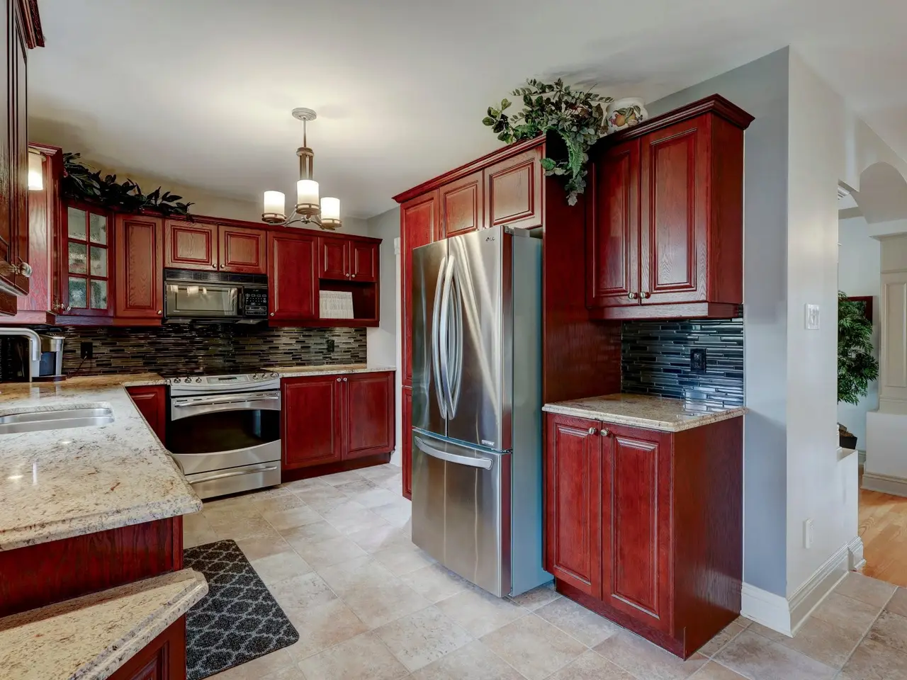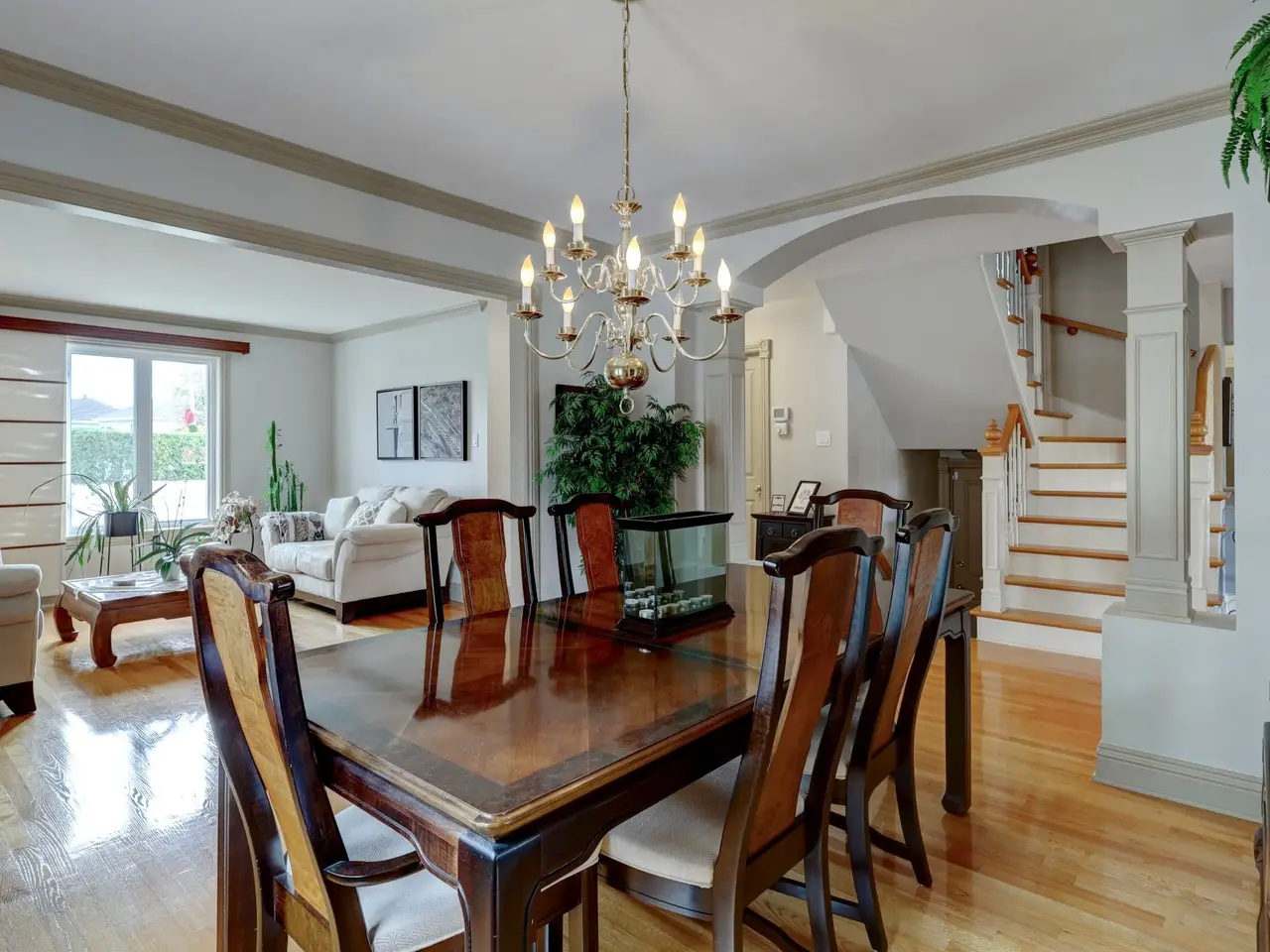 Turnkey brick beauty backing on to a green space. The property features 4+2 bedrooms, 3.5 bathrooms, fully loaded kitchen with granite counters open to you spacious dinette, main floor family room with fireplace, the upper level features a large landing and four bedrooms. One of which is on its own level. The finished basement is comprised of a large playroom, full bathroom and two bedrooms. Meticulously landscaped with a paviuni patio and large deck with covered pergola overlooking a green space. Live on a family friendly street within walking distance to the REM. **Original owners, first time making its debut onto the market**.