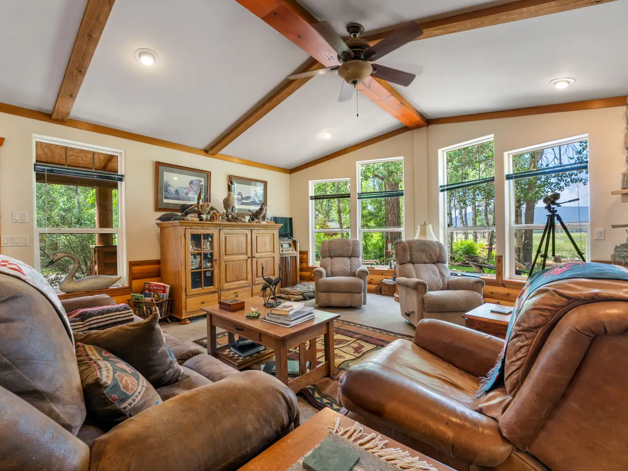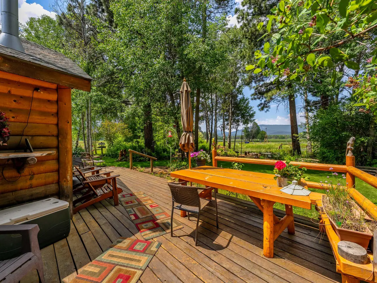 Mountain view ranch with cattle grazing in the summer and abundant wildlife year-round. This incredible 82.95-acre property features a 2,432 sq. ft. home with 3 bedrooms, 2 bathrooms, a 3-car garage, a large deck with covered porch, and stunning views of the ranch pasture and surrounding mountains. Forest service borders the property on three sides for added privacy and access to nature. Wildlife is everywhere--daily visits from 30-50 elk, Sandhill cranes in spring, summer, and fall, plus over 190 bird species recorded. Deer, coyotes, otters, wolves, weasels, mountain lions, bobcats, beavers, and bears all call this area home. Property highlights include a 24' x 30' log cabin hobby and craft room with spiral staircase to loft, a 40' x 48' barn, a seasonal pond, and a landscaped lawn with water feature and full sprinkler system powered by a 35 GPM well. A working ranch, wildlife retreat, or private mountain paradise--this property has it all!