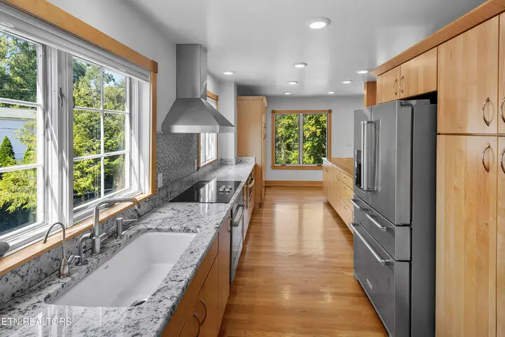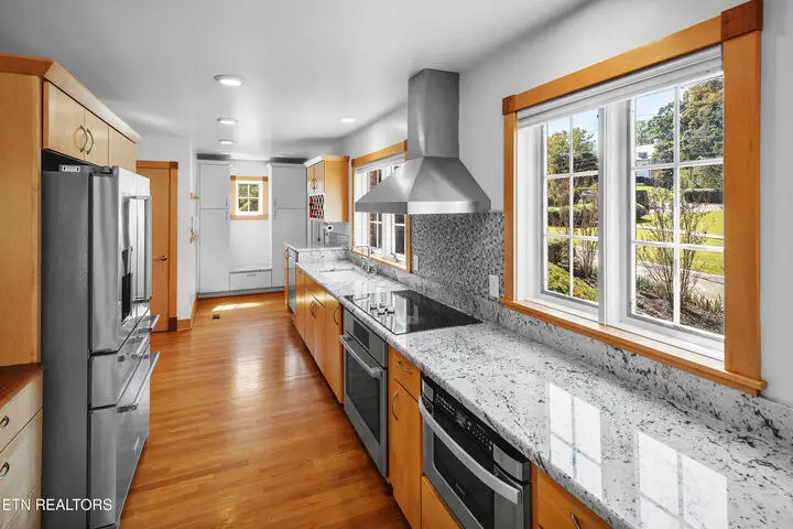 Live in one of America's Top 40 most envied neighborhoods, nestled in the heart of Knoxville - Sequoyah Hills. A welcoming home with great flow—perfect for gatherings and entertaining, where historic charm meets modern comfort. 5 bedrooms, 5.5 baths. Multigenerational living and income producing possibilities! Thoughtfully renovated in 2016—to include plumbing and wiring—this home features a long list of high-end upgrades. From the fully renovated kitchen and baths to custom built-ins and stylish finishes throughout, every detail has been carefully designed. The main-level primary suite is a true retreat, complete with two large closets and a spacious ensuite featuring a double vanity and walk-in shower. Upstairs, you'll find three more bedrooms—including one with its own full ensuite—and another that's perfect for a home office or creative space and one of two laundry areas. The lower level offers incredible flexibility with its own kitchenette, den, bedroom, two full baths, and laundry area. Whether you're hosting guests, need space for extended family, or want income potential, this setup is ready to go. Outside enjoy the private backyard—ideal for entertaining. The large deck overlooks a generous lot with a heated saltwater gunite pool, perfect for relaxing or gathering with friends and family. A detached two-car garage includes a full walkout basement, ideal for a workshop, studio, or future guest suite. This home is ready to welcome you. Come take a look—you'll fall in love!