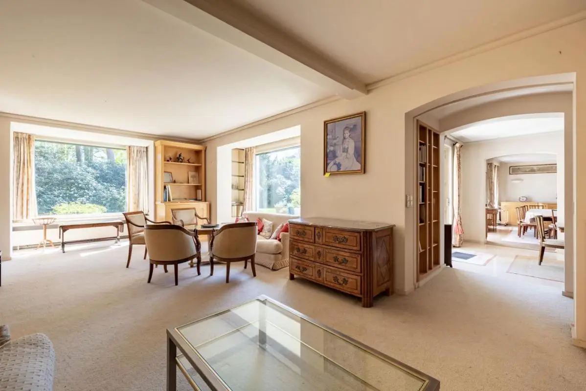 In the Bechet neighbourhood, close to the Forêt de Soignes, this superb classic property stands on a plot of approximately 35 ares, featuring a magnificent garden and a wide façade that enhances its appeal. The villa has a living area of approximately 650 m², comprising beautiful, bright reception rooms, a fitted kitchen, four bedrooms and three bathrooms. A separate service wing houses two additional bedrooms and a bathroom. The property is completed by a beautiful indoor swimming pool, a double garage, and is located in a quiet and green residential area. EPC: F (517 kWh/m²/year) An elegant and rare family property, offering space, character and a privileged location.