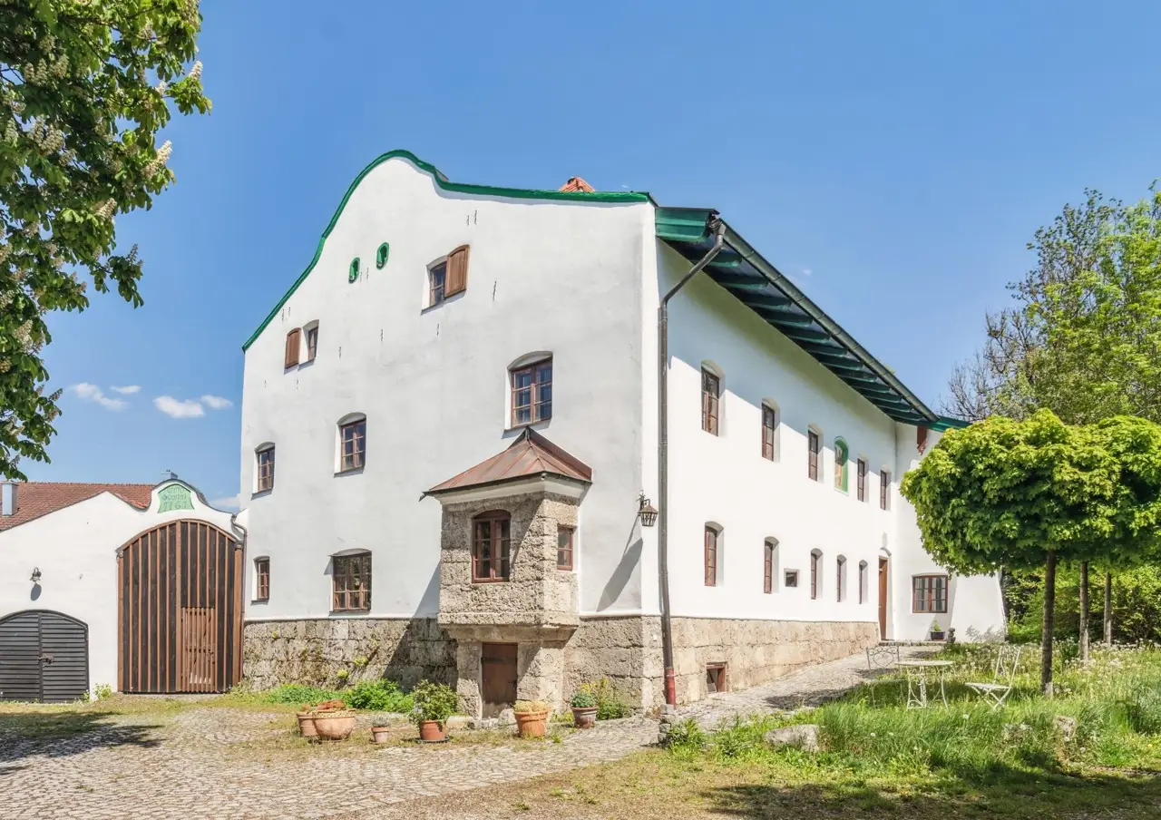 This listed baroque residence with extensive grounds is located within the historic town center and just a few steps away from the southern-style market square - in an idyllic location. The property is situated on an island with a surrounding artificial stream fed by the Wanklbach. This unique location promises absolute privacy in a secluded setting in the middle of the village center - completely untouched by the hustle and bustle of urban life. The picturesque main building of the former Bruckmühle dating from 1767 in the style of a baroque manor house was completely renovated back in the 1990s and most recently extensively and lovingly modernized in 2016. Today, a successful combination of historical splendor and modern living comfort awaits you in the multifaceted walls. On two lovingly renovated floors, residents will find plenty of space for living, well-being and self-fulfilment on over 380 m² of living space. The first floor impresses above all with its cross vaults and Bohemian vaults, but also with a variety of special rooms and retreats. Whether it's the eat-in kitchen with luxury fittings, the atmospheric parlor with tiled stove, the spacious split-level living room with fireplace or the cosy lounge with bay window, each room has its very own character and reveals its very own purpose. The upper floor offers no fewer highlights and impresses with a total of three high-quality, modern bathrooms, stately bedrooms and study rooms and a separate granny apartment, which exudes its very own charm with large arched windows. The top floor also offers exciting expansion potential for a partial area. But it's not just the top floor that has considerable potential; the longhouse, the former farmhouse along the stream, also offers around 100 m² of further expansion potential for a wide variety of uses and space for a studio with a large glass front, for example. The technical building infrastructure such as water, sewage, electricity and heating has already been prepared. The garage, former horse boxes and an outdoor seating area are currently located there. The long house and the residential building are connected by the arched gateway with a restored wooden gate over 100 years old and 5 meters high, which provides access to the outside area and the idyllic garden. Whether you choose access via the archway, the various points in the house or via the imposing outdoor seating area, the garden offers views from all sides and on two levels and, above all, maximum privacy. The central point in the garden is undoubtedly the elaborate, high-quality swimming pond with a depth of up to 3.5 meters and exquisite botanical planting. Here you can jump into the water from the jetty, enjoy a wonderful view of the house and garden from the deckchair on the wooden deck or simply let your mind wander while watching the koi. These and other atmospheric oases in the garden round off an exquisite living ambience on this stately property. The symbiosis of urbanity and maximum privacy, paired with superior living comfort and plenty of space in a historic setting leaves virtually nothing to be desired! Come and see for yourself! We would be delighted to introduce you to this dream retreat! As a first step, please send us a written inquiry (real estate portal, homepage, e-mail) with your full contact details. We look forward to your inquiry! ...and here are a few more impressions of the property: https://youtu.be/hDTbViBUSDg