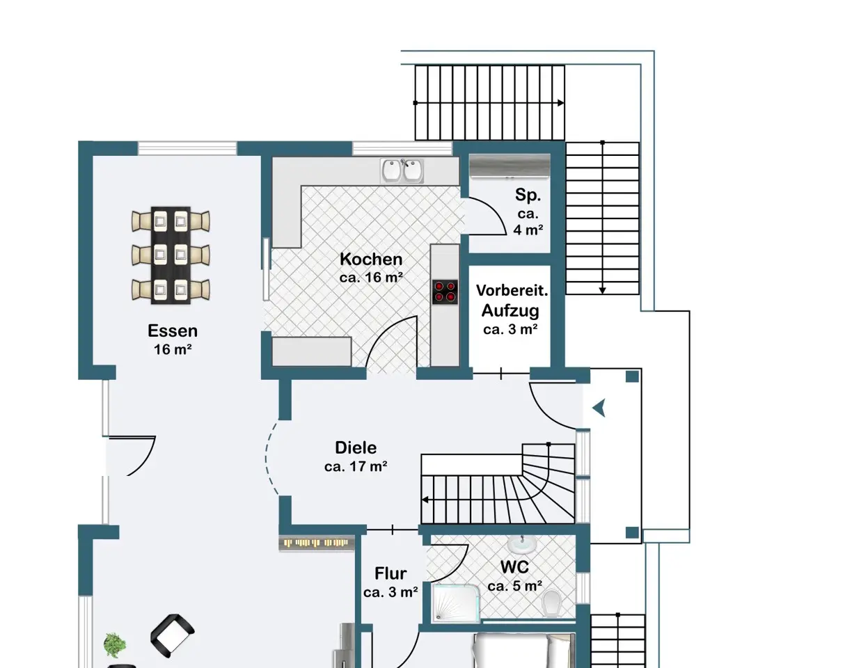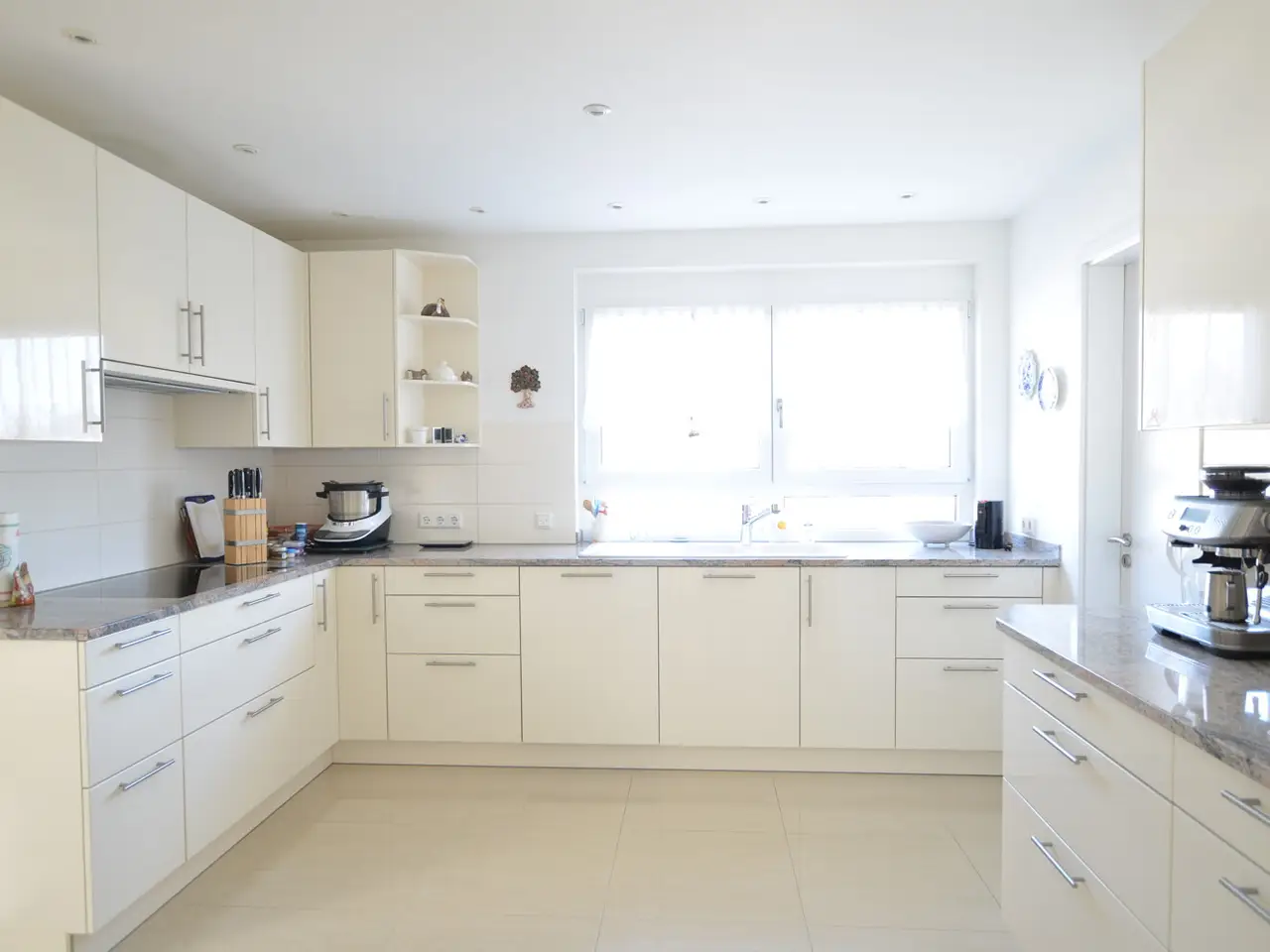 This spacious and modern urban villa is situated in an absolutely central location in Kronberg im Taunus on a plot of approx. 752 m². The villa was built in 2013 with forward-looking technology and fittings and today presents itself in contemporary condition with energy efficiency class A+. With around 300 m² of living space, it offers plenty of room and comfort for a wide range of living requirements. There are currently 5 bedrooms and 2 bathrooms available. On the top floor there is a further room of approx. 46 m², which offers additional expansion potential for a large children's room with en-suite bathroom or a spacious, versatile attic studio. The villa boasts many highlights that will delight even the most discerning of clients. Particularly noteworthy are the impressive roof terrace measuring more than 38 m² with a distant view of the Altkönig and the beautifully landscaped, ingrown garden, which offers plenty of peace and quiet despite its central location and invites you to spend relaxing hours outdoors. To make the most of the roof terrace, there is a water tap and a socket suitable for a whirlpool. Inside the villa, there is a large living and dining area measuring over 60 m², which creates an open and airy feeling of space and provides the opportunity for sociable evenings with family and friends. The technical features are also impressive: underfloor heating provides cozy warmth throughout the property. This is complemented by a Viessmann heating system with gas boiler, which can be conveniently controlled via Wi-Fi. Triple glazing offers high energy efficiency, which further increases living comfort. For additional security, an alarm system with wireless smoke detectors is integrated, which is directly linked to a security service. In the master bedroom, air conditioning guarantees the right temperature at all times, while the heated driveway remains easily accessible at all times, even in the colder months. This special offer is complemented by the large double garage directly in the house as well as an existing elevator shaft that leads from the garage to the second floor and, together with the extra-wide, wheelchair-accessible doors, ensures that the house is largely barrier-free. A cistern for water collection and a solar system for the hot water supply round off the sustainable concept of the property. Please do not hesitate to contact us for detailed information or to arrange a viewing appointment. We look forward to hearing from you.