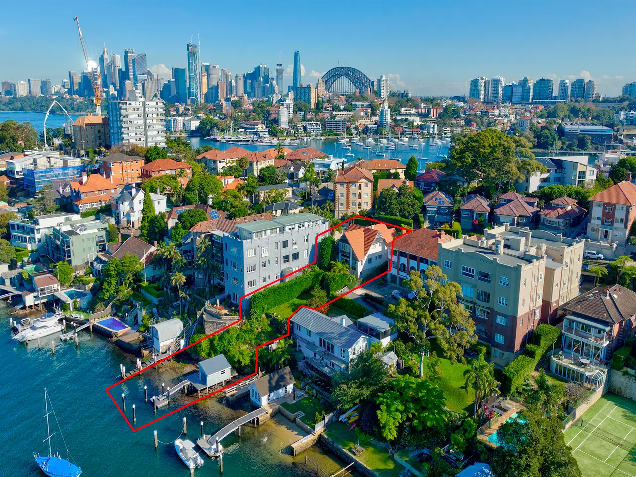 'St Agnes' is a grand double brick and sandstone home b.1920s on approx. 768sqm of street-to-waterfront land with a northeast rear aspect above the serene waters of Shell Cove. Perfectly comfortable now with sweeping water views and private boating facilities, it also comes with DA approval for a stunning 4 bed/3 bath residence over four levels featuring internal lift access, a vast entertainers' terrace and swimming pool. Located just 200m to the ferry wharf, it presents a dynamic opportunity in one of Kurraba Point's most exclusive settings. - High ceilings, herringbone parquetry floors, ducted r/c air con, gas - Spacious formal and casual living/dining, modern open plan kitchen - Three bedrooms incl. master with walk-in robe and sunroom/nursery - Semi-enclosed rear verandah for entertaining showcasing the views - Boatshed, jetty, pontoon and private berth plus DA approval for pool - Two separate single carports each with remote-controlled garage door - 750m to Hayes Street Beach, 900m to Cremorne Point Garden and Walk