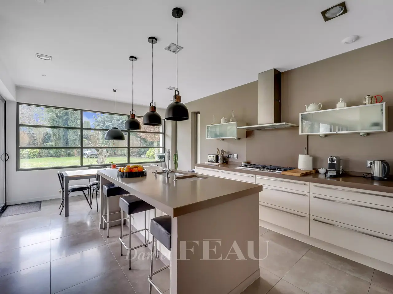 Luxuriously equipped kitchen with central island