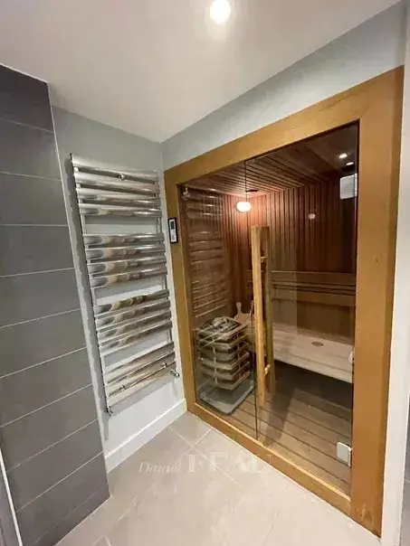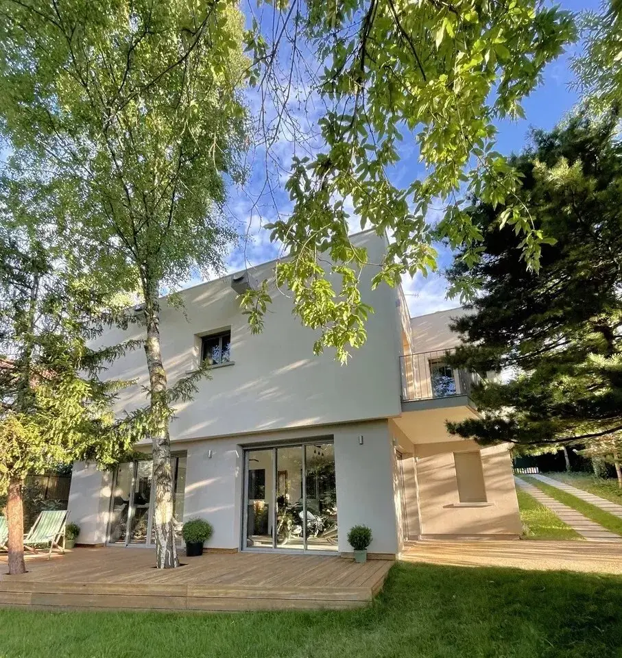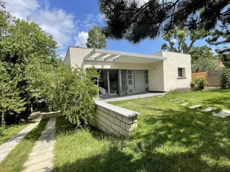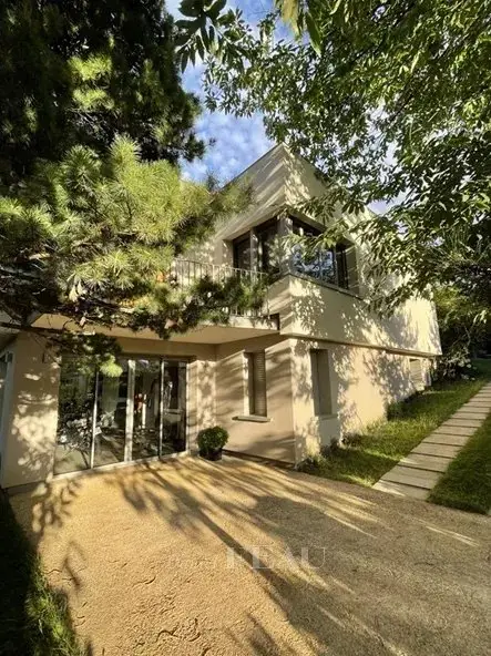 In the heart of a residential area, on a plot of 758 m², architect house of 236 m² dating from 1956 completely renovated. On the ground floor double reception opening onto terrace and garden, semi-open fitted kitchen. A master suite, two bedrooms, a bathroom, separate toilet. On the garden level, a beautiful 33 m² space opening onto the outside, a bedroom, two offices (or bedrooms of 18 and 15 m²), bathroom, separate toilet as well as a laundry room, sauna and boiler room. Insulation from inside and outside, recent condensing boiler resulting in an excellent DPE (B).