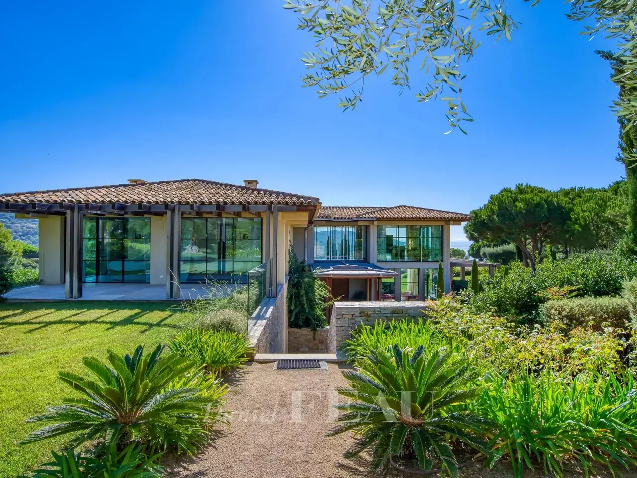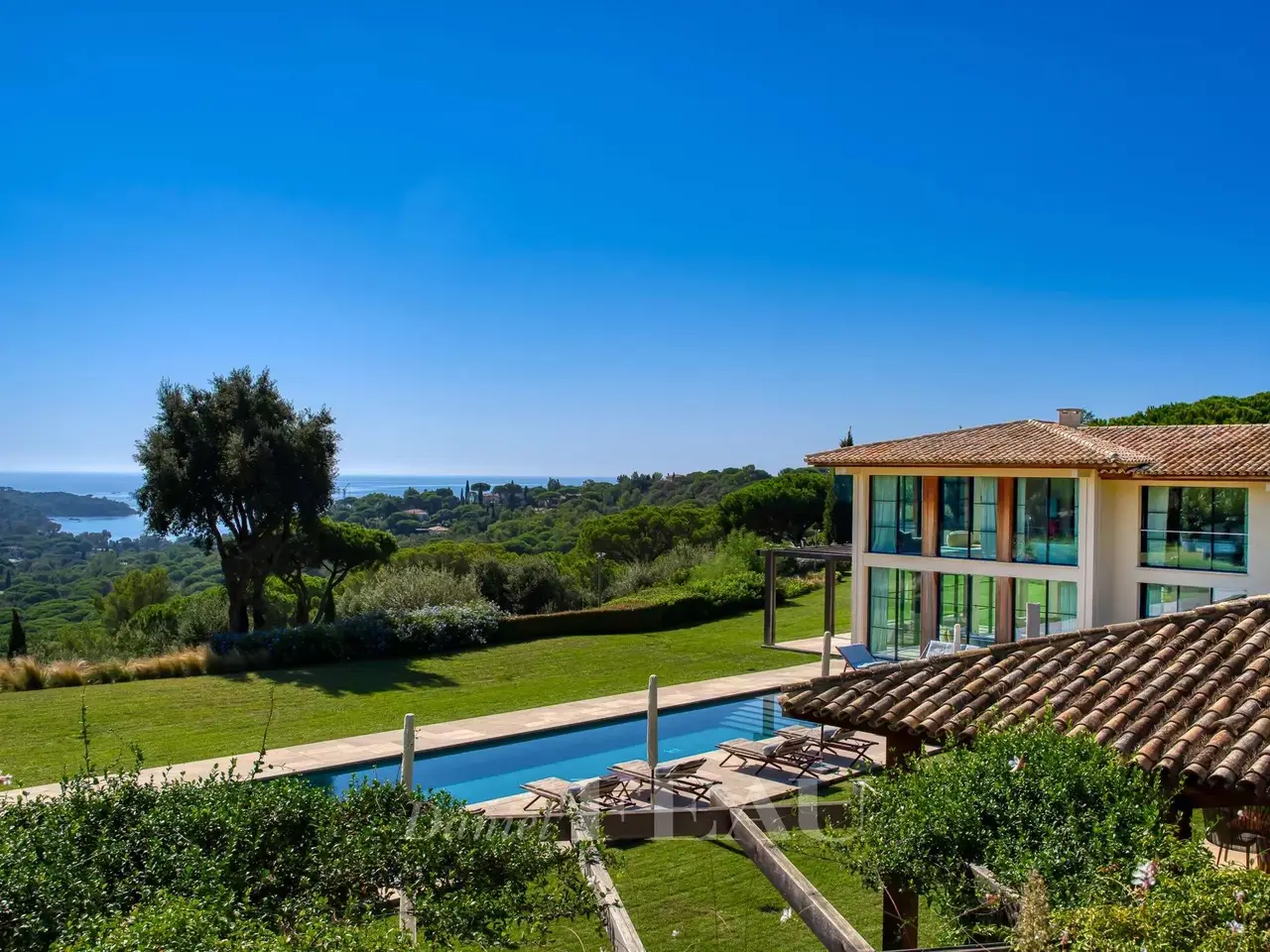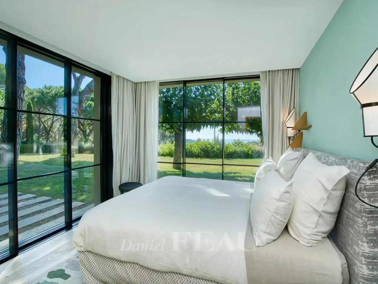 La Croix-Valmer, Ramatuelle, Saint-Tropez… This unique 800 sqm property just 15 minutes from Saint-Tropez, one of the globe’s most famous locations, is set in 3 hectares of secure enclosed and landscaped grounds with the Mediterranean on the horizon. It includes a spacious main villa bathed in sunshine, a second guest villa, a caretaker’s lodge, several garages and a helipad. Allying stone and timber, the architectural style is resolutely contemporary, with each and every detail inside the work of a renowned interior decorator. The main villa is accessed by means of an elegant patio with a water feature, leading to a magnificent 100 sqm living/reception room and dining room bathed in sunshine thanks to wide patio windows, a TV lounge, and a kitchen with a pantry. Two staircases access the upper floor which comprises a 33 sqm study, a 42 sqm master suite commanding a sea view, and four further 17 to 20 sqm suites. Facing the 20-metre long swimming pool is a superb exterior area benefiting from an equipped kitchen and fitted with comfortable sofas. The pool technical premises are in the basement, along with a wine cellar and a cold room. Separated from the main villa by a 57 sqm gym, a massage room and a shower room, the guest villa comprises a 47 sqm living room, an open-plan kitchen, and four suites (one on the ground floor). With an independent caretaker’s lodge benefiting from a separate entry, four garages and an 8-vehicule carport. The ensemble is perfectly maintained. A unique property in an exceptional location a stone’s throw from Ramatuelle and Saint-Tropez.
