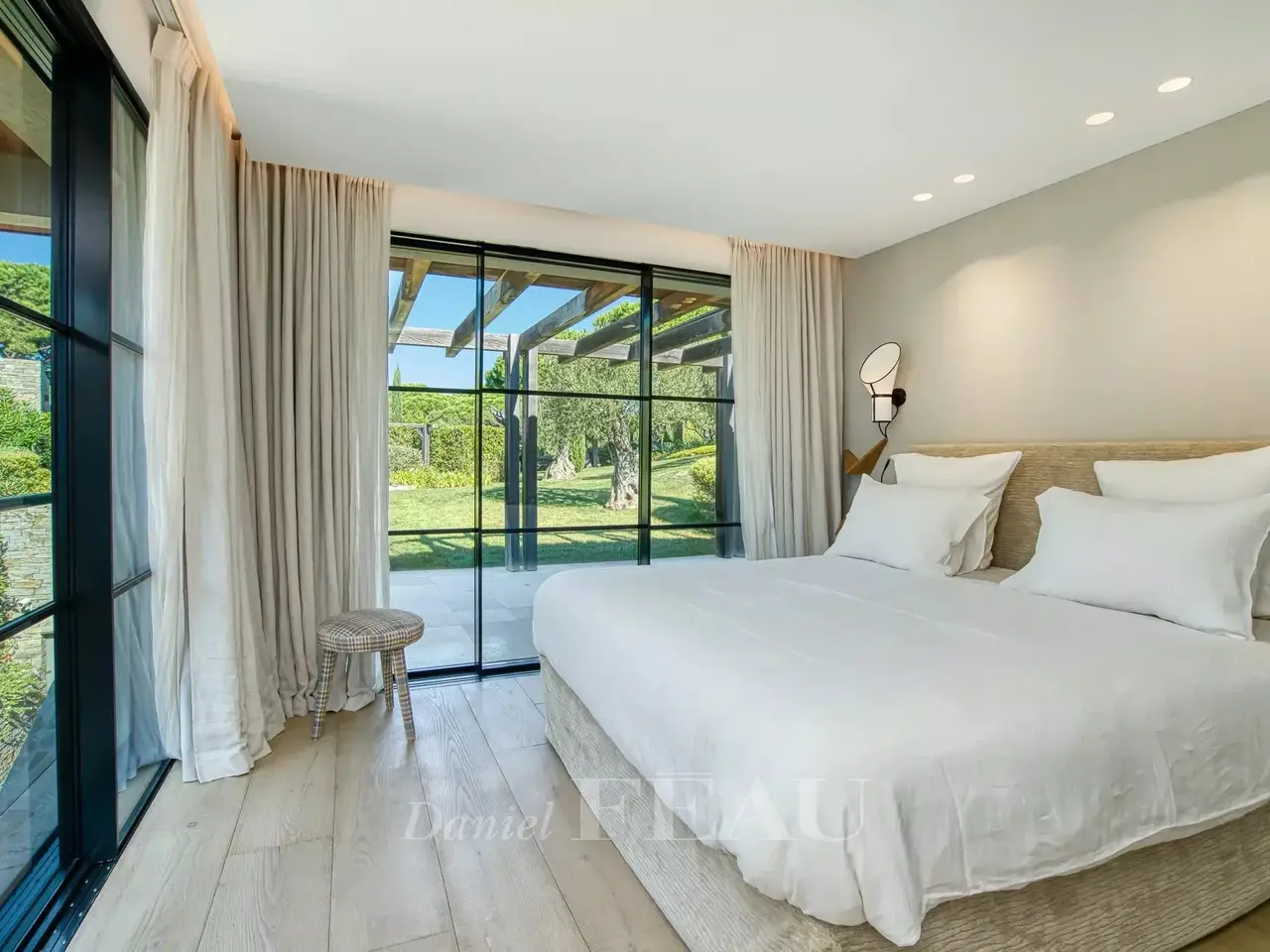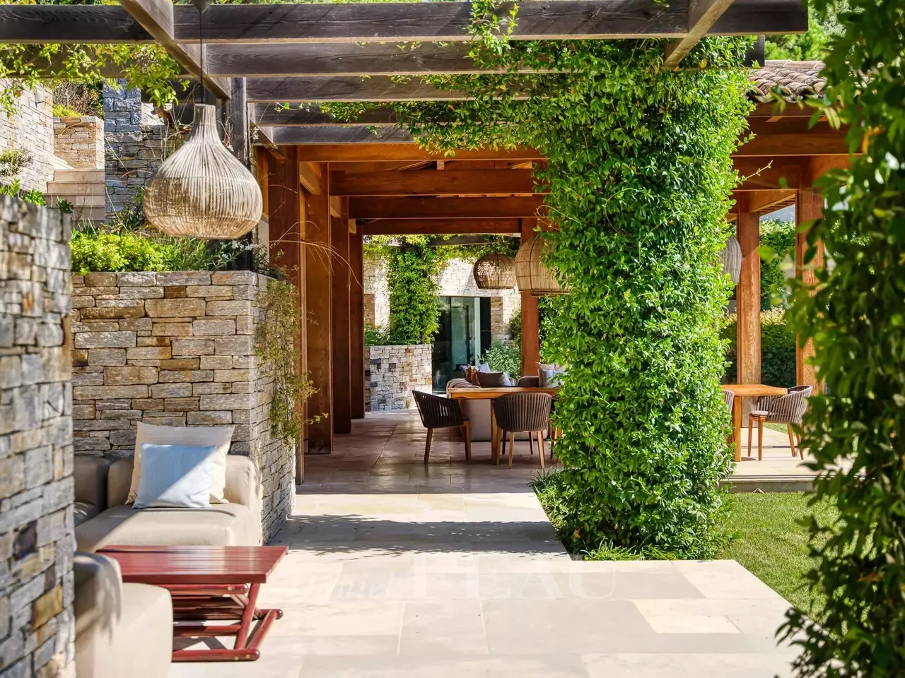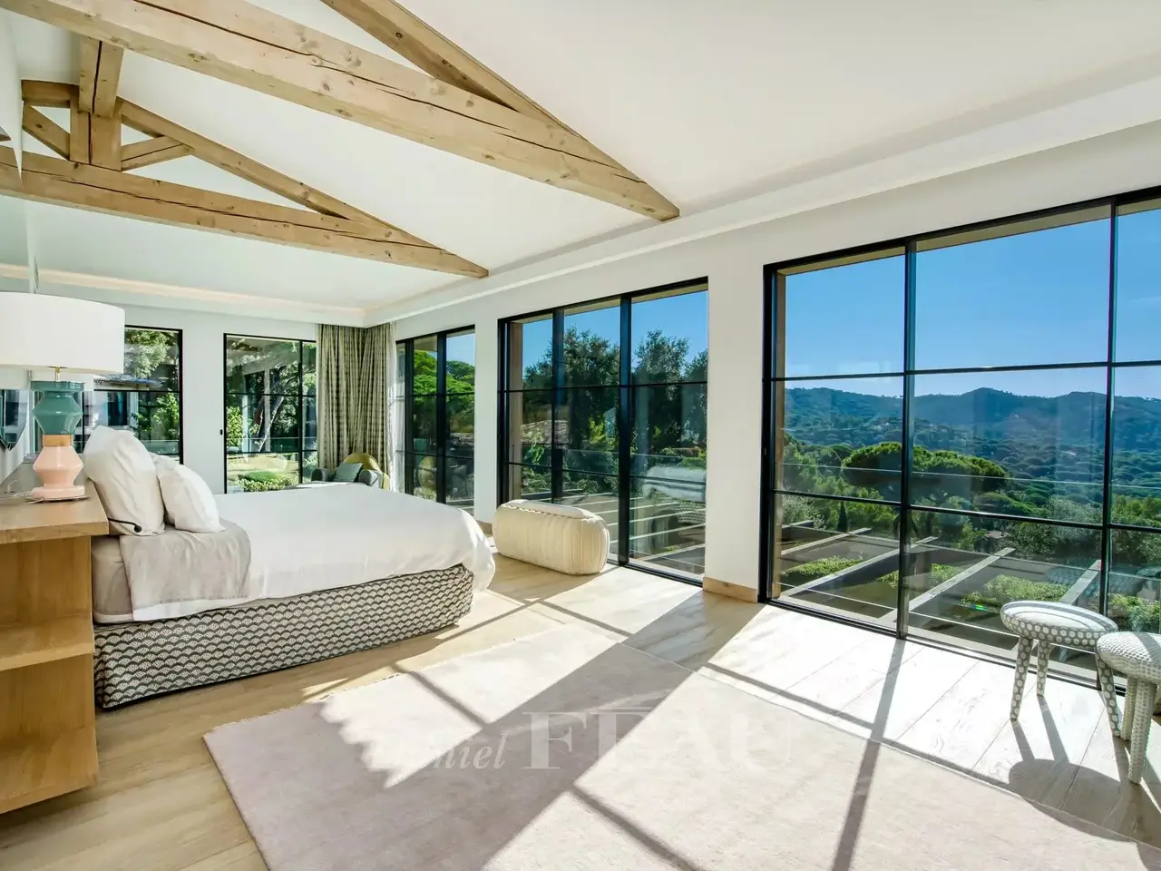 La Croix-Valmer, Ramatuelle, Saint-Tropez… This unique 800 sqm property just 15 minutes from Saint-Tropez, one of the globe’s most famous locations, is set in 3 hectares of secure enclosed and landscaped grounds with the Mediterranean on the horizon. It includes a spacious main villa bathed in sunshine, a second guest villa, a caretaker’s lodge, several garages and a helipad. Allying stone and timber, the architectural style is resolutely contemporary, with each and every detail inside the work of a renowned interior decorator. The main villa is accessed by means of an elegant patio with a water feature, leading to a magnificent 100 sqm living/reception room and dining room bathed in sunshine thanks to wide patio windows, a TV lounge, and a kitchen with a pantry. Two staircases access the upper floor which comprises a 33 sqm study, a 42 sqm master suite commanding a sea view, and four further 17 to 20 sqm suites. Facing the 20-metre long swimming pool is a superb exterior area benefiting from an equipped kitchen and fitted with comfortable sofas. The pool technical premises are in the basement, along with a wine cellar and a cold room. Separated from the main villa by a 57 sqm gym, a massage room and a shower room, the guest villa comprises a 47 sqm living room, an open-plan kitchen, and four suites (one on the ground floor). With an independent caretaker’s lodge benefiting from a separate entry, four garages and an 8-vehicule carport. The ensemble is perfectly maintained. A unique property in an exceptional location a stone’s throw from Ramatuelle and Saint-Tropez.