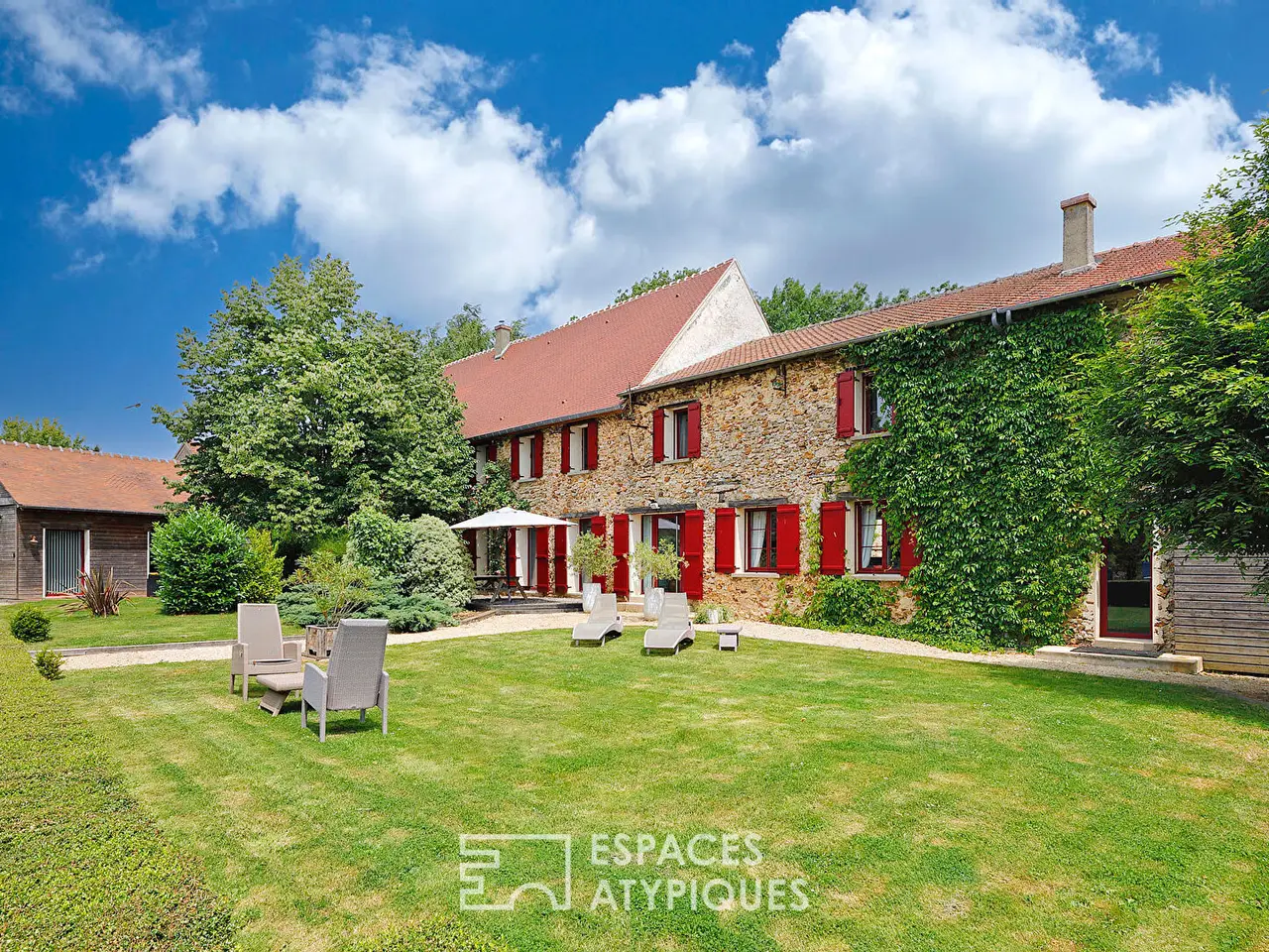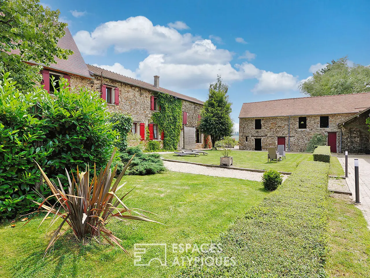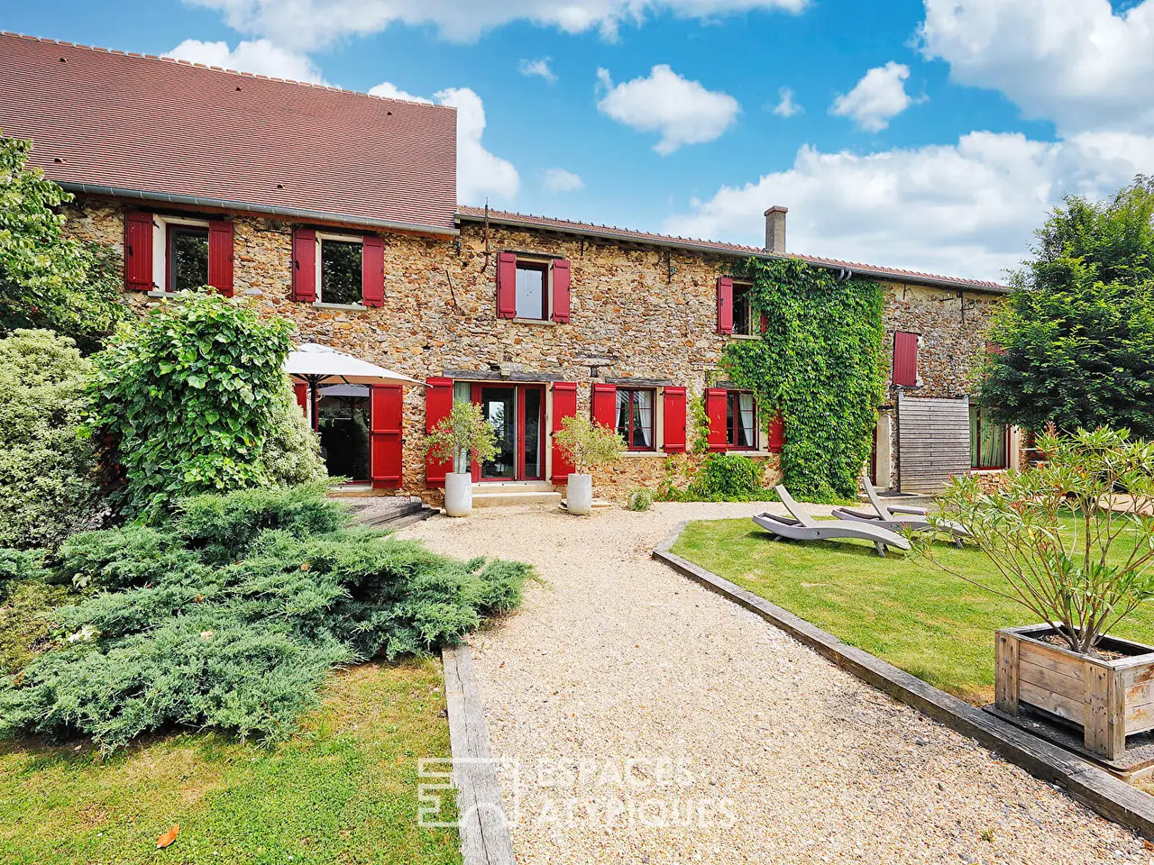 Located in a preserved and peaceful natural setting, an hour and a half from Paris, this magnificent Brie farmhouse, whose history dates back to 1425, offers over 500m2 of living space on a plot of over one hectare, offering a refined living environment combining tranquility and high-end amenities.Set around a typical square courtyard, the property consists of a renovated 50-meter-long farmhouse, housing several independent apartments, a complete wellness area, and quality equestrian facilities. The property stands out for its harmonious layout, its fine materials, and its ability to accommodate a turnkey family, tourist, or professional project.The main house, approximately 200m2, captivates with its generous space, character, and meticulous appointments. A large entrance leads to a cozy living room with a Canadian wood-burning stove, a high-end open kitchen extending onto a south-facing terrace, as well as four spacious bedrooms with walk-in closets and a bathroom upstairs.Two cottages complete this complex: the first, measuring 160m2, features a vast living room with a sitting area around the fireplace, a billiard table, a kitchenette, and four bedrooms and three bathrooms upstairs;the second, measuring 85m2, offers a luxury suite with a bedroom, a small living room, a kitchen, a bathroom, and a spa with a jacuzzi, sauna, and multi-sensory shower.A separate wellness area offers a swim spa with counter-current swimming and balneotherapy, a sauna, a steam room, a massage room, and a reception lounge.Outside, a building houses the equestrian facilities, which include a stable with 12 stalls, a tack room, and a grooming area. This complex can be converted into a reception and meeting room.A 120m2 house remains to be renovated to provide additional accommodation.Stabilized paddocks and a large meadow can be used as a parking area.A garage, a workshop, several outbuildings, and a parking lot complete the property's amenities.The landscaped garden offers a beautiful diversity of tree species and flowerbeds, a pond bordered by a majestic weeping willow, terraces, and unobstructed views that enhance the tranquility of the setting.Just 5 minutes from amenities and 15 minutes from the neighboring towns of La Ferte-sous-Jouarre and Montmirail, its proximity to a train station connecting Paris-Est and the A4 highway enhances its rental potential.The property requires no work and is sold furnished and equipped.Whether for professional use or a family reunion project, this estate is a rare opportunity that combines comfort, nature, and versatility.ENERGY CLASS: D / CLIMATE CLASS: BAnnual energy expenditure for standard usage based on indexed energy prices for 2021, 2022, and 2023 (including subscription) is between €4,299 and €5,817 per year.Contact: Elvire de la MARTINIERE - +33 6 03 05 05 96RSAC (Registered Service for Residential Buildings): 800 930 232 MEAUXEnvoyer des commentairesREF. SM1154Additional information* 20 rooms* 9 bedrooms* 1 bathroom* 4 shower rooms* Outdoor space : 13484 SQM* Property tax : 4 441 €Energy Performance CertificatePrimary energy consumptiond : 192 kWh/m2.yearHigh performance housing*A*B*C*192kWh/m2.year6*kg CO2/m2.yearD*E*F*GExtremely poor housing performance* Of which greenhouse gas emissionsb : 6 kg CO2/m2.yearLow CO2 emissions*A*6kg CO2/m2.yearB*C*D*E*F*GVery high CO2 emissionsEstimated average annual energy costs for standard use, inde