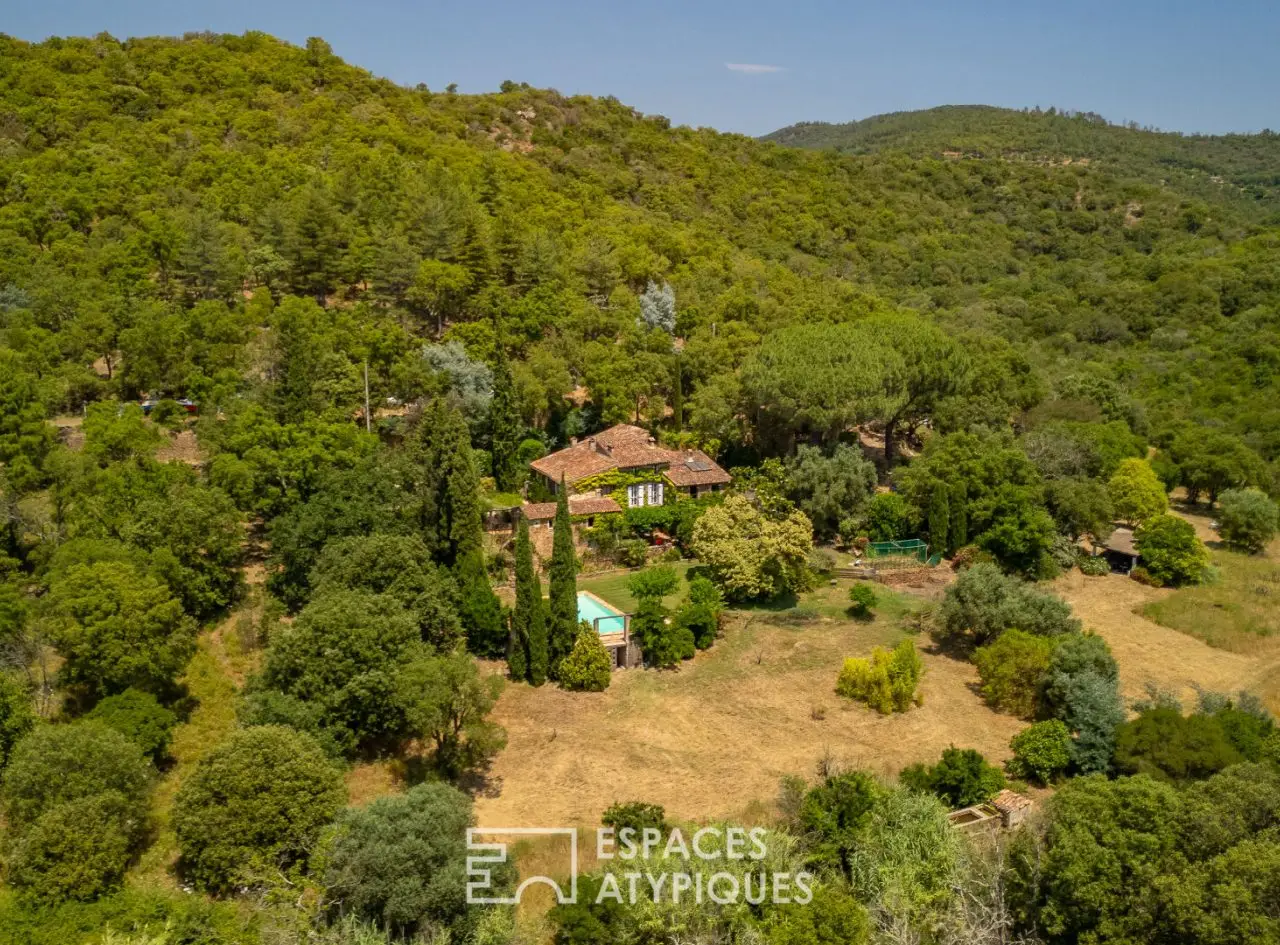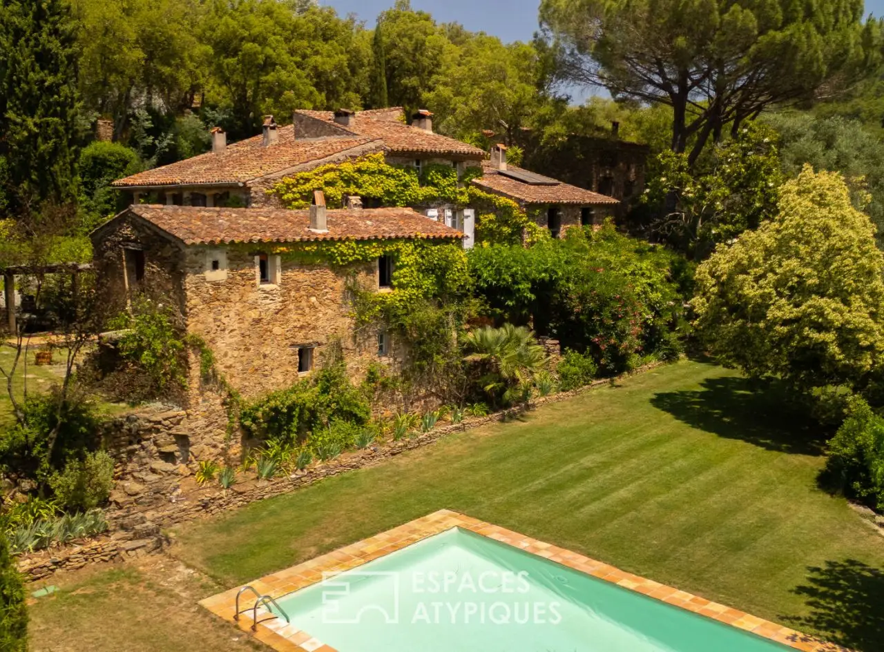 Charming property, silkworm farm and old sheepfold in the heart of the Maures At the bend in a path lined with pine trees, cypress trees, and wild hills, this timeless property is hidden in a Mediterranean green setting. Enveloped by 3.5 hectares of unspoiled nature, it embodies the Provencal art of living in its most authentic and poetic form. Here, the old stones, weathered by time, tell an open-air story, between charming country houses, an old sheepfold, and a silkworm farm, all harmoniously integrated into the landscape. An elegant swimming pool, bathed in light and facing the hills, completes this rare ensemble, like an invitation to suspend time. The main house, on three levels, offers an authentic and welcoming atmosphere. From the entrance, the cool stone walls contrast with the warmth of the wood and old terracotta tiles. The open kitchen and dining room interact with the living room, warmed by a period fireplace. The complex opens onto a vast terrace shaded by a century-old mulberry tree, overlooking the swimming pool. A wine cellar, pantry, and guest toilet complete this level. Upstairs, a vast living room-office area precedes a master suite with soothing views of nature, a bathroom, and a separate toilet. The top level houses two large bedrooms sharing a second bathroom. The silkworm farm, set apart, retains its raw and authentic feel. On the garden level, there is a large room used for technical or storage purposes. Upstairs, there is a bedroom, a shower room, and a vast living space open to the outdoors, ideal for imagining a pool house, an art studio, a guest house, or a games room. The second house offers a fully equipped kitchen and an outdoor-facing dining room on the ground floor. Upstairs, a master suite with a private bathroom echoes a second bedroom with its own shower room and a spacious dressing room. The sheepfold, in turn, develops its own story. It accommodates a kitchen, a dining room, a generous living room on the ground floor, two bedrooms, a bathroom and toilet upstairs. Under the roof, a vast living space with a billiard table, kitchenette, a bedroom, a bathroom and toilet that offers new perspectives for hosting or family life.The property is finally enriched by multiple annexes: an artist's studio, and other living spaces to be arranged according to your desires (yoga room, reception room), two garages, two sheds, a greenhouse, not to mention a natural spring and a well that complete the autonomy and magic of the place. This rare living space, between sovereign nature and built heritage, will seduce lovers of silence, character and authenticity. While some layouts deserve to be rethought, the property offers a vast playground to imagine a unique life project: family home, confidential reception area, artist residence or professional project on a human scale. A property to be revealed, to be shaped, according to your desires and your vision, where each stone, each tree and each perspective gives free rein to the imagination. ENERGY CLASS: E (319 kWh/m2/year) / CLIMATE CLASS: B (10 kg CO2/m2/year). Estimated amount of annual energy expenditure for standard use between EUR4,020 and EUR5,470 indexed to the years 2021, 2022 and 2023 (subscription included) Additional information * 15 rooms * 9 bedrooms * 3 bathrooms * 3 shower rooms * Outdoor space : 33839 SQM * Parking : 4 parking spaces * Property tax : 2 115 € Energy Performance Certificate Primary energy consumption e : 319 kWh/m2.year High performance housing