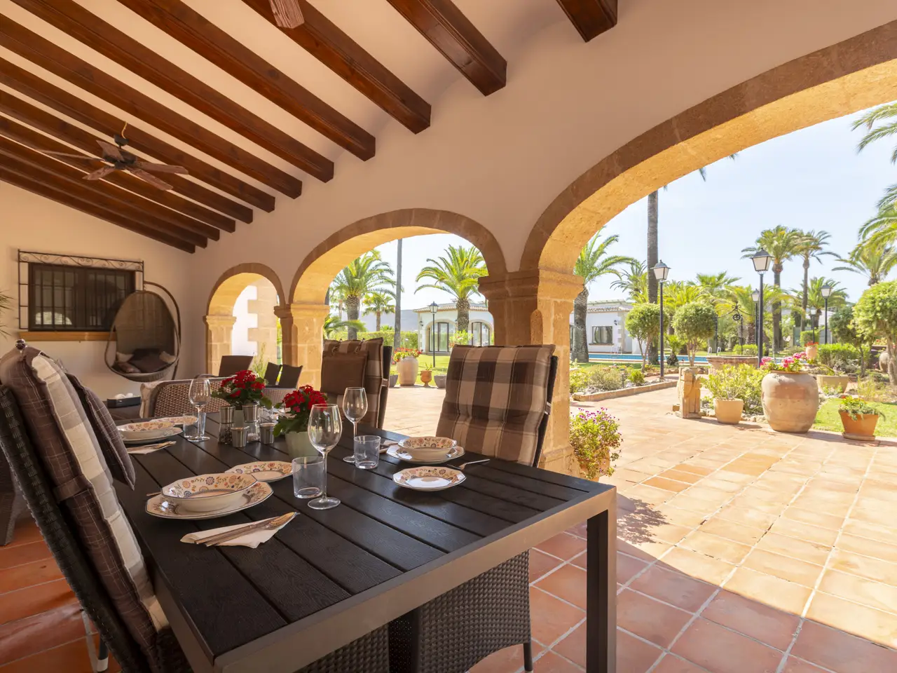 Summer dining area by the pool