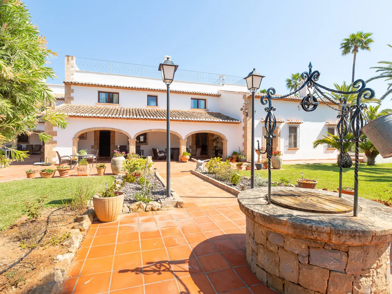 It has a built area of 1,020 square meters, approximately, and a large land of 5,831 square meters totally flat with a wide variety of native vegetation and palm trees, with open views to the valley, located a few meters from the Golf de Jávea and just five minutes from the center of the city of Jávea, this property offers ample space and privacy to enjoy a luxurious lifestyle. With spacious spaces, it has 13 bedrooms and 10 bathrooms, making it the perfect choice for a large family or for those looking for an additional space for guests. It is worth noting that it has an interior patio, a large terrace covered with arches with coarse stone of Javea and a large cellar on the basement floor with large living room, where you can entertain meetings. In addition, the property has a private pool of 16x7 meters, and an area for summer dining next to the pool. It has a well to supply the irrigation of the garden. It has underfloor heating, air conditioning and solar panels. This villa is in excellent condition and offers open views and a privileged location in one of the most exclusive areas of Jávea. Do not miss the opportunity to acquire this unique property and enjoy a luxurious life on the Costa Blanca.