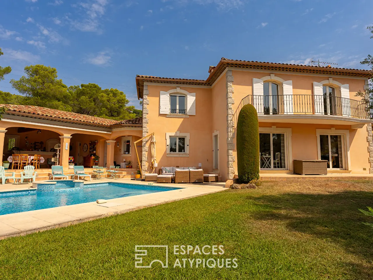 Elegant villa with neo-Provencal charm Nestled in the heart of a sought-after, unspoiled and peaceful neighborhood of La Motte, this charming neo-Provencal villa is located. Built on a vast, wooded plot of 2,476 sqm, this property offers approximately 200 sqm of living space. Designed in the 1990s with elements created by the Compagnons de France, its unique architecture blends authenticity and elegance. Upon entering, a hall leads to a spacious living room, a separate kitchen, a bedroom, and a first master suite with its own bathroom and dressing room, as well as a separate toilet. The layout allows for a smooth and harmonious flow between the living spaces. Upstairs, the landing leads to two other bedrooms with a private balcony offering unobstructed views, a dressing room, a bathroom, two toilets, and a second master suite with its own bathroom. The exterior is a true invitation to the good life. A swimming pool and jacuzzi, a vast 47 sqm covered terrace with a summer kitchen perfect for enjoying the tranquility of the surroundings, as well as generous outdoor spaces, invite you to relax and feel good. The garden, carefully landscaped and planted with olive and cypress trees, offers a green and intimate setting. A full basement houses a large garage and a technical room. A carport and several parking spaces complete this property. With its timeless style, the quality of its materials and its generous volumes, this atypical villa is aimed at buyers looking for a rare residence. Its preserved environment and its unique character make it a privileged place for a fulfilling family life or a seasonal rental project. ENERGY CLASS: C (102 kWh/sqm/year) / CLIMATE CLASS: C (18 kg CO2/sqm/year). Estimated average annual energy expenditure for standard use, based on energy prices as of August 15, 2015: EUR1,409 (including subscription).REF. 12386Additional information* 6 rooms* 5 bedrooms* 2 bathrooms* 2 shower rooms* Outdoor space : 2475 SQM* Parking : 2 parking spaces* Property tax : 2 741 €Energy Performance CertificateEPC : 102 kWhEP/m2.year* A 450GHG : 18 kgeqCO2/m2.year* A 80Agency feesThe fees include VAT and are payable by the vendorMediatorMediation Franchise-Consommateurswww.mediation-franchise.com29 Boulevard de Courcelles 75008 ParisInformation on the risks to which this property is exposed is available on the Geohazards website : www.georisques.gouv.fr