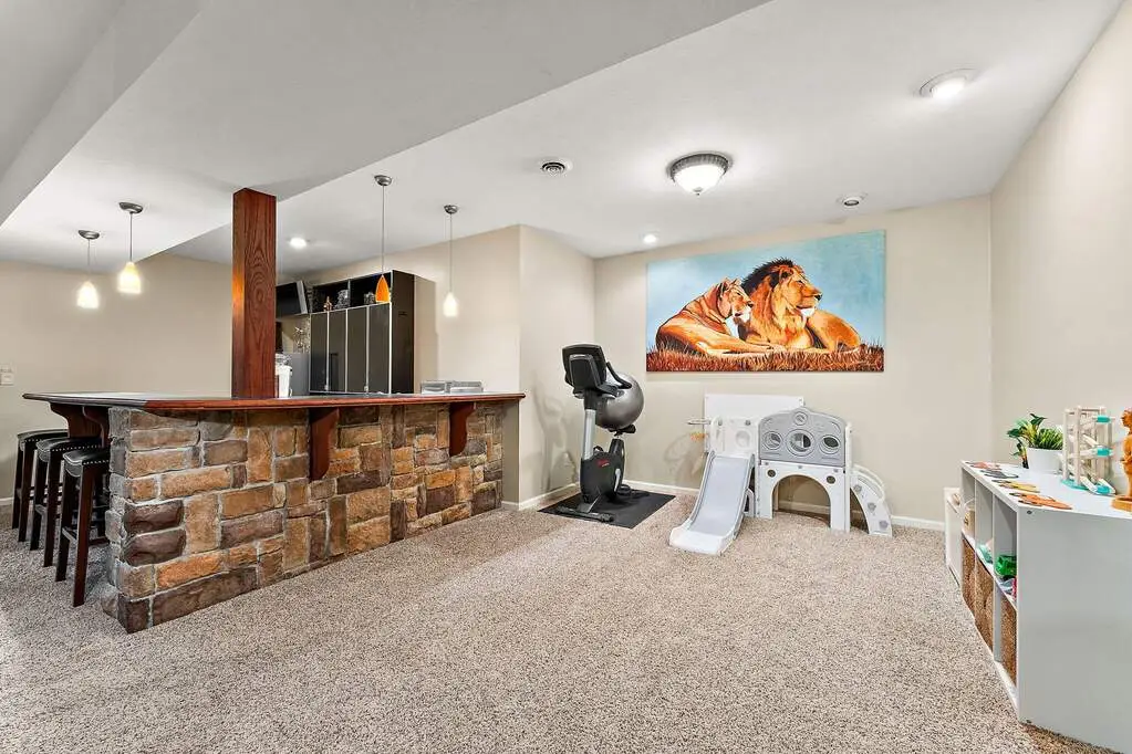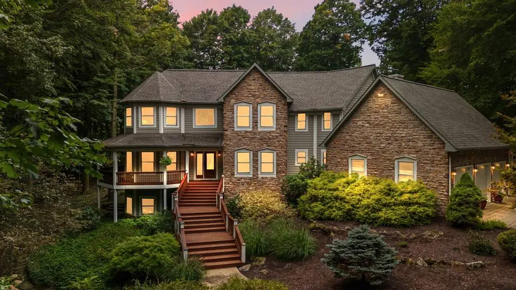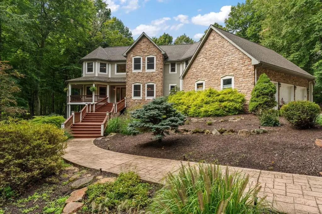 Nestled on six wooded acres, this stunning 5-bedroom, 3.5-bath home offers 4,500 sq. ft. of refined living space and exceptional privacy via a long, 800-foot winding driveway. Meticulously maintained since it was built in 2000, the home features a massive primary suite with a spa-like bathroom and an incredible walk-in closet. The kitchen offers ample counter space, high-end appliances, and a separate wet bar with beverage refrigerator, all flowing seamlessly into the main living areas. A spacious walk-out basement includes a bedroom, full bathroom, and a large entertainment area with a second wet bar--perfect for hosting. In addition, the basement offers over 900 sq. ft. of unfinished space, ideal for storage. The stone and cedar exterior complements the professionally landscaped and fully irrigated yard, surrounded by mature forest, creating a serene and picturesque setting. The oversized, heated 3-car garage offers year-round comfort and ample storage. Outdoor living is a true highlight, featuring a heated in-ground pool surrounded by an expansive stone patio, a gas fire pit, and a vaulted pavilion. The pavilion includes a full outdoor kitchen with granite countertops, a large grill, surface cooktop, beverage refrigerator, two burners, ceiling-mounted electric heaters, and is wired for TVs and a sound system. A separate barn provides two bays and attic storage, offering flexible space for hobbies, equipment, or a workshop. The property is equipped with a full-home Generac generator for peace of mind. Recent updates include two new HVAC systems (2022) and a new roof (2024) on the home, pavilion, and barn. An additional 15+ acres are available to expand the property. Please see MLS number 828377 for information regarding this exceptional property.