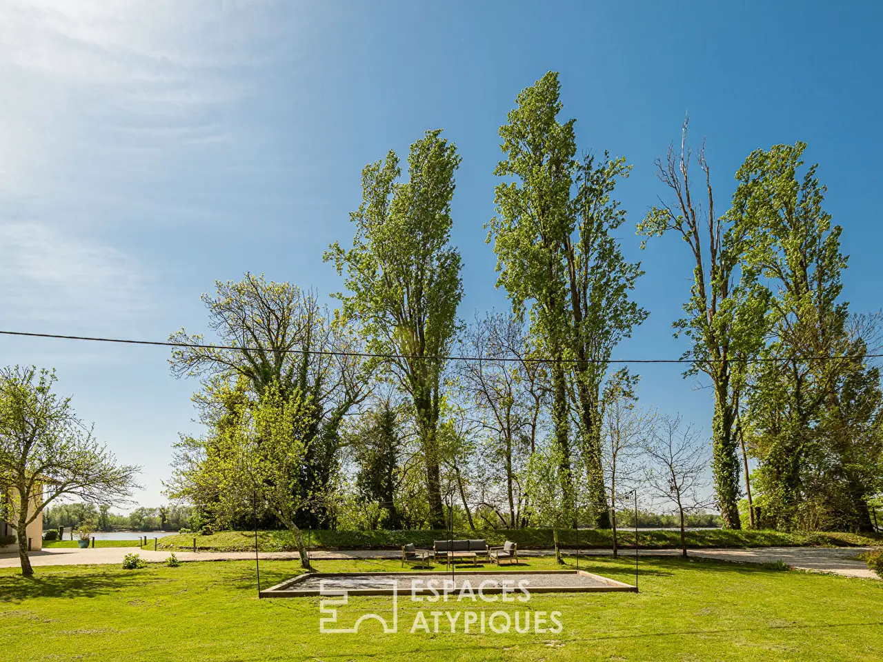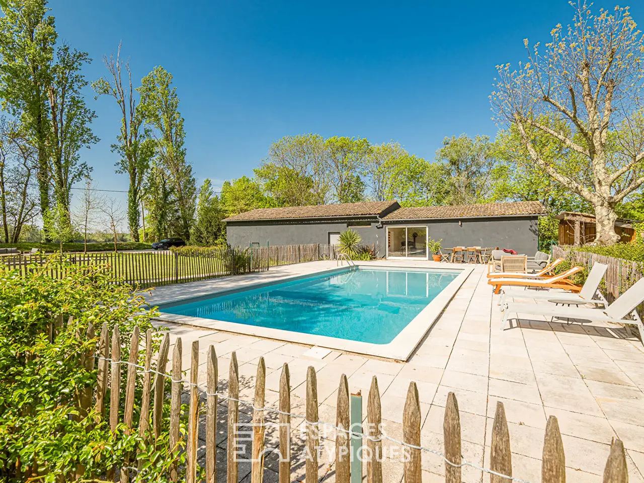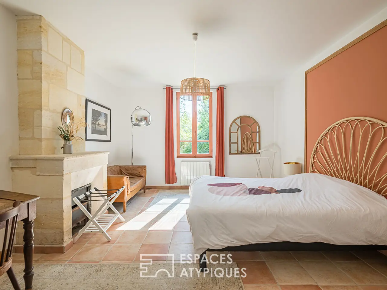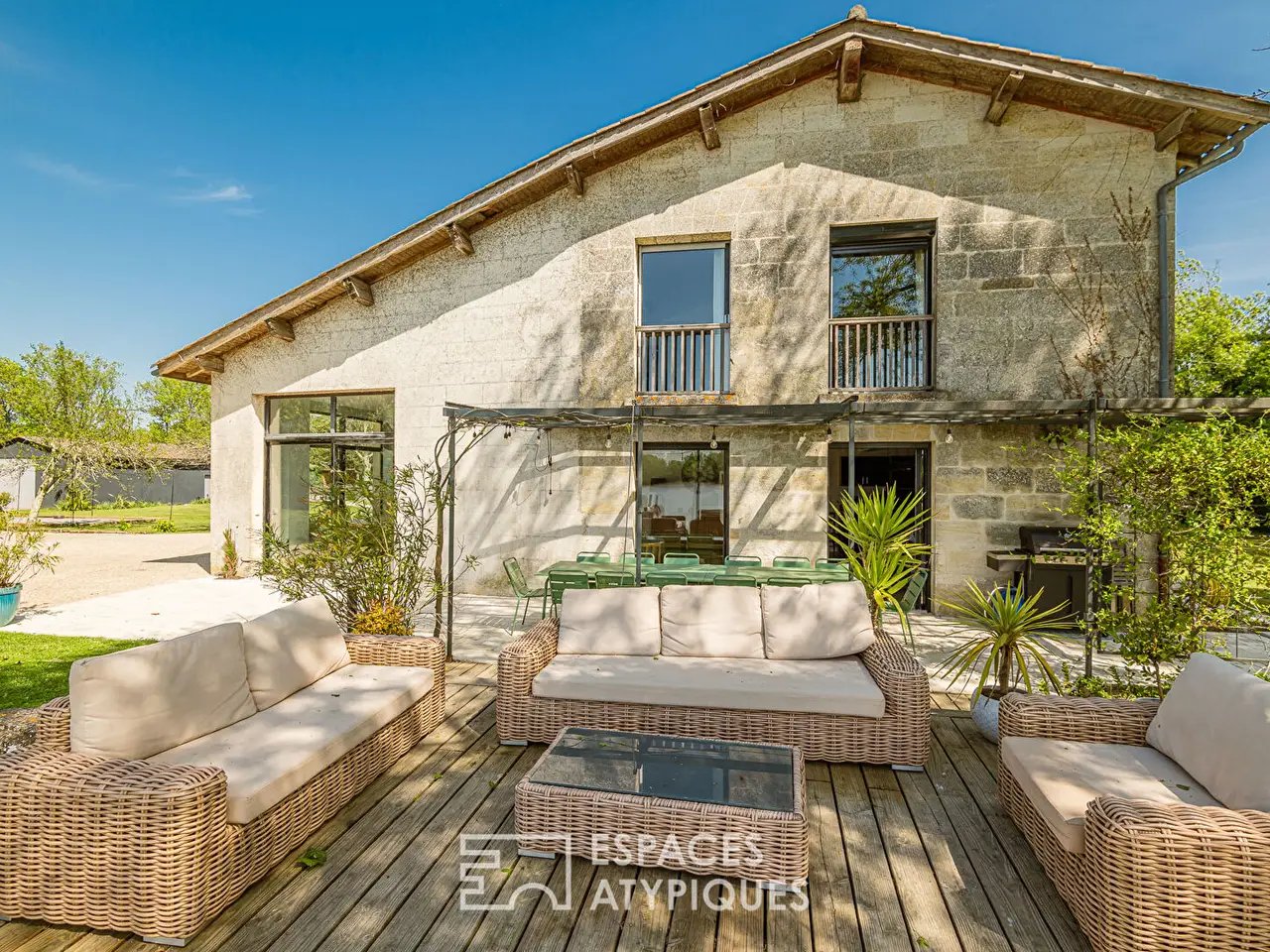 Nestled on the banks of a river, this vast stone house offers a generous surface area in the heart of a preserved environment, near the Chateau de La Riviere in Fronsac. Located on a landscaped plot of 1.7 hectares, it offers numerous comfort and leisure facilities: swimming pool, petanque court, gym, garage, carport, waterfront terrace.A rare property where the elegance of the old building harmoniously dialogues with a lifestyle turned towards nature. The interior spaces reveal a fluid and convivial layout, designed for family life as well as for welcoming guests. The 7 bedrooms, distributed evenly over the different levels, are accompanied by 4 bathrooms, ensuring comfort and privacy. The fully fitted and equipped kitchen opens onto a cozy living room extended by a terrace. Each room reveals a different view of the river. The careful decoration highlights the noble materials: exposed stone and wooden floors, creating an atmosphere that is both authentic and refined. Each space has been designed to combine old-world charm with modern functionality.Outside, the meticulously maintained grounds offer numerous areas for relaxation and recreation. The riverside terrace invites contemplation, while the swimming pool and petanque court promise moments of sharing. The impeccably maintained wooded park offers great privacy without being isolated: shops, schools, and services are easily accessible in just a few minutes by car.This unique property seduces with its exceptional waterfront location, the nobility of its stone construction, and the quality of the services offered. An atypical property to discover for those seeking an elegant, spacious, and peaceful living environment.ENERGY CLASS: D / CLIMATE CLASS: B. Estimated average annual energy expenditure for standard use, based on 2022 energy prices: EUR4,560 and EUR6,280.Sindy Jaud (EI) Sales Agent: 06 43 13 83 58/ RSAC Number: 448 632 638 Bordeaux.REF. BORDEAUX-2039EABXAdditional information* 10 rooms* 7 bedrooms* 4 shower rooms* Floor : 1* 1 floor in the building* Outdoor space : 10700 SQM* Property tax : 1 949 €Energy Performance CertificatePrimary energy consumptiond : 205 kWh/m2.yearHigh performance housing*A*B*C*205kWh/m2.year7*kg CO2/m2.yearD*E*F*GExtremely poor housing performance* Of which greenhouse gas emissionsb : 7 kg CO2/m2.yearLow CO2 emissions*A*7kg CO2/m2.yearB*C*D*E*F*GVery high CO2 emissionsEstimated average annual energy costs for standard use, indexed to specific years 2021, 2022, 2023 : between 4590 € and 6280 € Subscription IncludedAgency feesThe fees include VAT and are payable by the vendorMediatorMediation Franchise-Consommateurswww.mediation-franchise.com29 Boulevard de Courcelles 75008 ParisInformation on the risks to which this property is exposed is available on the Geohazards website : www.georisques.gouv.fr