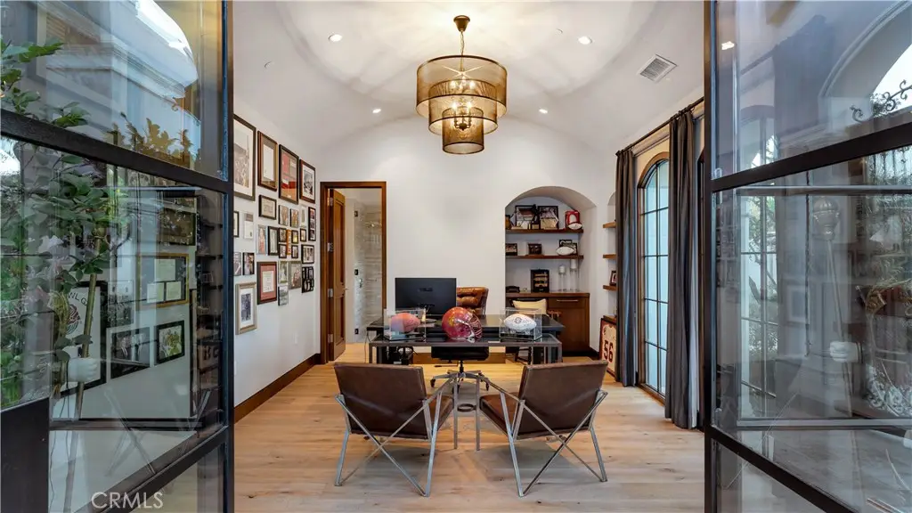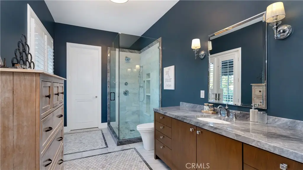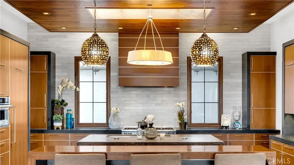 Discover the Luxury California Lifestyle at 2 Thomas Rd! This breathtaking, custom home offers approx. 7,476 sf. of luxury living on a sprawling lot with ocean and Saddleback Mountain views. This home is more than just a place to live—it's a lifestyle. Inside you are greeted by the warmth of aged Mediterranean, wire-brushed, wood floors, set against soft, neutral tones throughout the home. The contemporary Adobe-style exterior complements the stunning Walnut woodwork inlays seen in cabinetry, baseboards, ceilings, and doors. At the heart of the home is the gourmet family kitchen, a chef’s dream with 2 oversized islands, a breakfast bar, soft-close cabinetry and weathered marble countertops. The state-of-the-art appliances include a Sub-Zero double refrigerator, freezer, a Viking 8-burner range, a KitchenAid double oven and microwave, making both everyday meals and grand entertaining a breeze. And don’t forget the cozy breakfast nook with a wood coffered ceiling, where you can enjoy your morning coffee while sunlight filters through the skylight and adjacent windows. The great room seamlessly blends style and function with walnut ceilings, a designer fireplace, and panoramic sliding doors that open to reveal an entertainer's dream backyard. Take in the views while relaxing by the custom saltwater pool and spa. Host unforgettable gatherings with the outdoor kitchen, travertine decking, and a hidden automated TV station. For fitness and fun, head downstairs where a full media room, game room, weight room, and another kitchen await. Whether it’s movie night in the home theater or a competitive game of basketball on your own half-court, this space has been designed for maximum enjoyment. The primary suite is a serene sanctuary with a custom wood-paneled fireplace, motorized sunset shades, and dual walk-in closets with custom-built-ins. The spa-like primary bath features a steam shower, rain shower and dual vanities, creating the perfect relaxation retreat. Rounding out this luxurious property are flex spaces like a dedicated office, a home management and craft room, an upstairs loft, and a four-car garage with custom storage solutions. The entire home is automated with the Crestron and iAquaLink Smart Home systems offering effortless control of lights, climate, pool and security—all from your phone or tablet. This home is the ultimate expression of California luxury, blending modern convenience with timeless elegance. Your Luxury California Lifestyle Awaits!