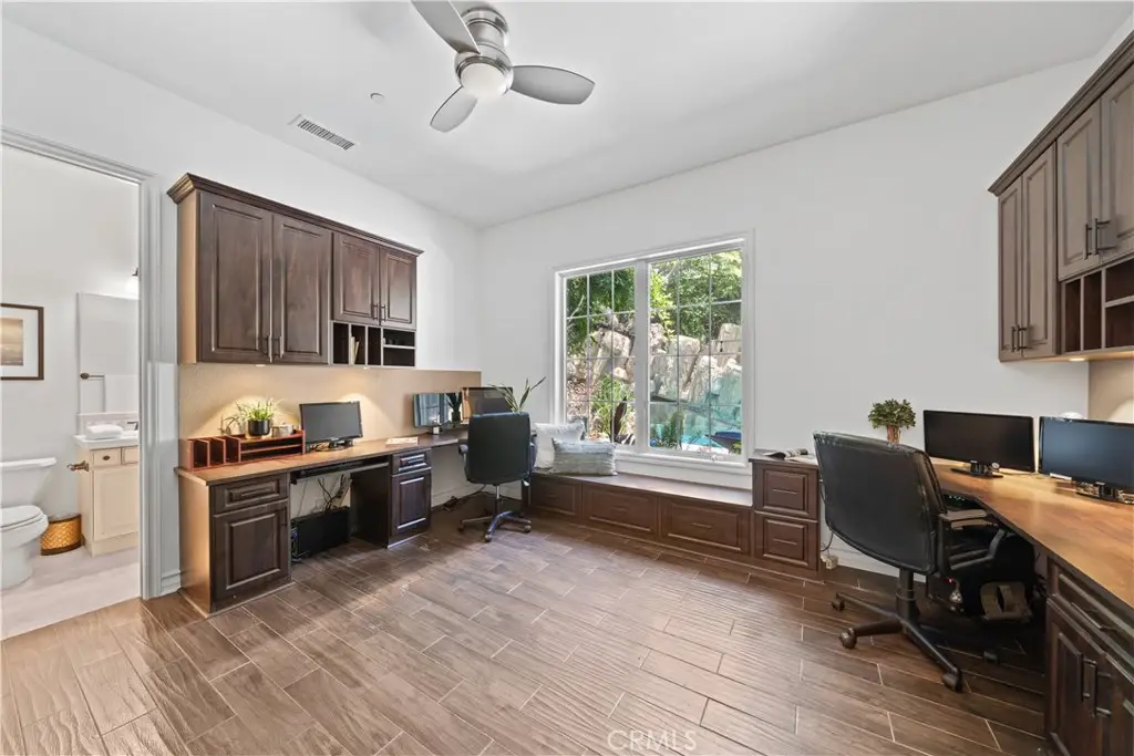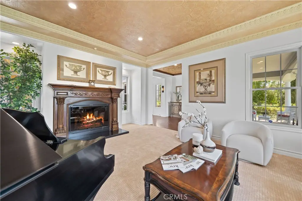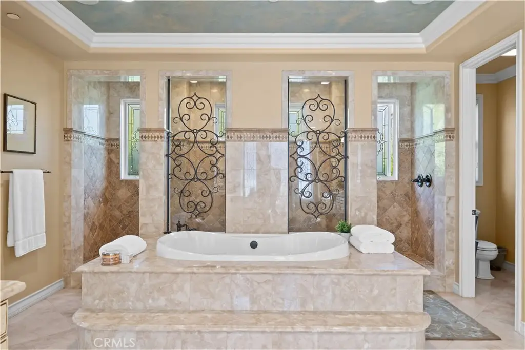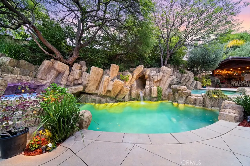 Nestled within the prestigious equestrian community of Nellie Gail Ranch, this meticulously upgraded residence is situated at the heart of a quiet, tranquil, pride of ownership interior cul-de-sac. Spanning nearly 6,000 square feet, this traditional estate offers five bedrooms, five and one-half baths, a dedicated bonus room, billiard parlor, and upper library, providing an exceptional breadth of living spaces for distinguished residents and their guests. The already expansive interior is complemented by a magnificent exterior designed for opulent entertaining and recreation. A private lanai, adorned with sophisticated stone accents and a charming fireplace, sets the stage for al fresco dining and relaxed evenings. Beyond the lanai, a resort-style rock pool captivates with cascading waterfalls, a thrilling 35-foot slide, and a walk-in kiddie pool, ensuring endless hours of enjoyment. French doors invite a seamless transition to private interior courtyards, creating an elegant flow ideal for both intimate gatherings and grand celebrations. The billiard parlor provides a setting for engaging games, while the upper bonus room offers a secluded space for cinematic indulgence. Culinary artistry flourishes in the gourmet kitchen, equipped with a custom mastery stove hood, a spacious seating island, stainless steel appliances, abundant granite countertops, a convenient butler's pantry, and an integrated desk. The lavish primary suite serves as a serene retreat, featuring a romantic fireplace and a spa-inspired primary ensuite with its own private deck, perfect for peaceful morning escapes. Throughout the residence, exquisite interiors are a testament to superior design, showcasing coffered ceilings with custom details, Venetian plastered walls, elegant crown molding, designer paint, bespoke built-ins, sophisticated custom lighting, and stunning wood flooring, among numerous other refined elements. Beyond the boundaries of this exceptional property, residents of Nellie Gail Ranch enjoy an unparalleled lifestyle enriched by world-class amenities. The community boasts access to 25 miles of equestrian trails, a community clubhouse, tennis center with 12 championship courts, a swimming pool, and numerous parks and green spaces perfect for picnics and relaxation. Nellie Gail Ranch's convenient Laguna Hills location provides the tranquility of a semi-rural setting with easy access to the various vibrant attractions beloved by Orange County residents. Welcome home!