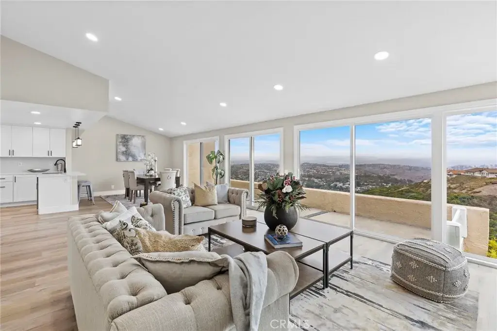 Exquisite Fully Remodeled Home with Breathtaking Views, Summit Monarch !. Experience the pinnacle of luxury living in this completely reimagined single-story masterpiece nestled in the prestigious Monarch Summit 1 community. Thoughtfully redesigned with high-end finishes and modern sophistication, this stunning home boasts unparalleled panoramic views of Saddleback Mountain and city lights. Fully permitted renovation with high end upgrades throughout. Step inside to discover a seamless open-concept floor plan, meticulously upgraded with designer touches throughout. The gourmet kitchen is a chefs dream, featuring top-of-the-line stainless steel appliances, custom cabinetry, quartz countertops, and an expansive waterfall island, perfect for entertaining. The living area is bathed in natural light, accentuated by grand picture windows, a sleek fireplace, and exquisite wood flooring. The luxurious primary suite offers direct access to a private yard, a spa-inspired ensuite bath with a dual vanity, oversized walk-in shower, and designer fixtures. The secondary bedrooms are equally well-appointed, with one easily convertible back into an office or guest space. Notable highlights include brand-new AC, energy-efficient windows, elegant lighting fixtures, an indoor laundry room, and a fully finished two-car garage. The private outdoor spaces provide the perfect setting for relaxation or entertaining while enjoying the mesmerizing views. Situated just minutes from Laguna Niguel Golf Course, world-class beaches, upscale shopping, and dining, this home is an exceptional opportunity for