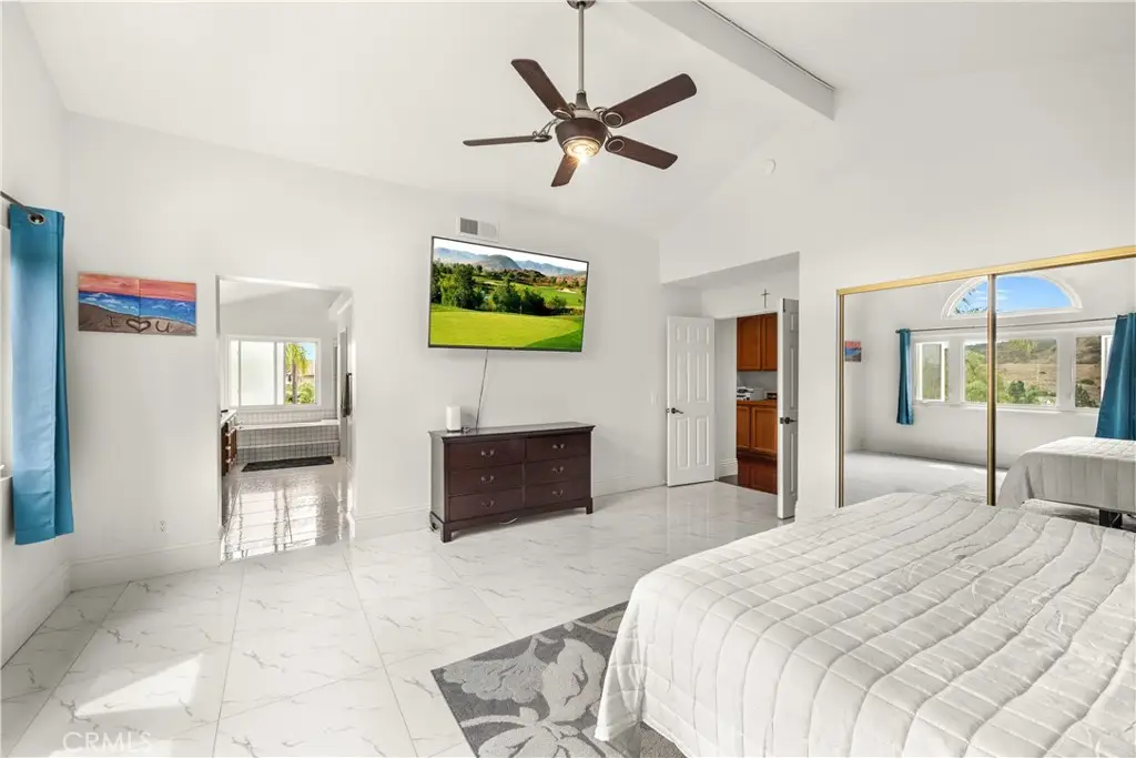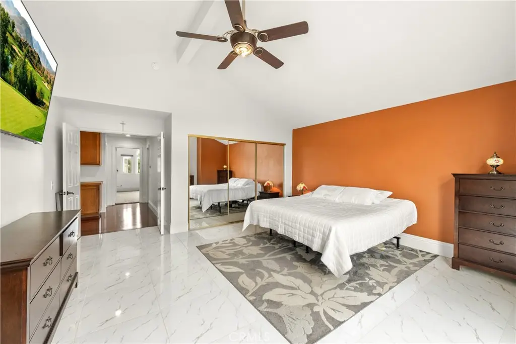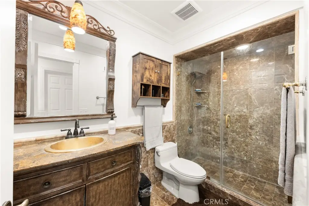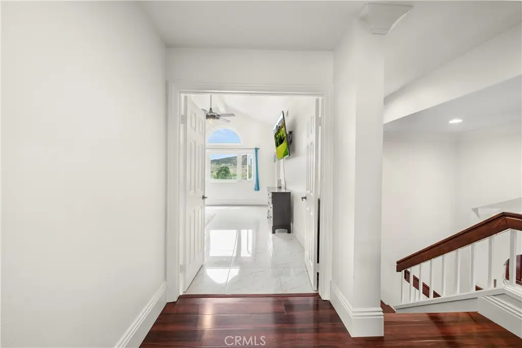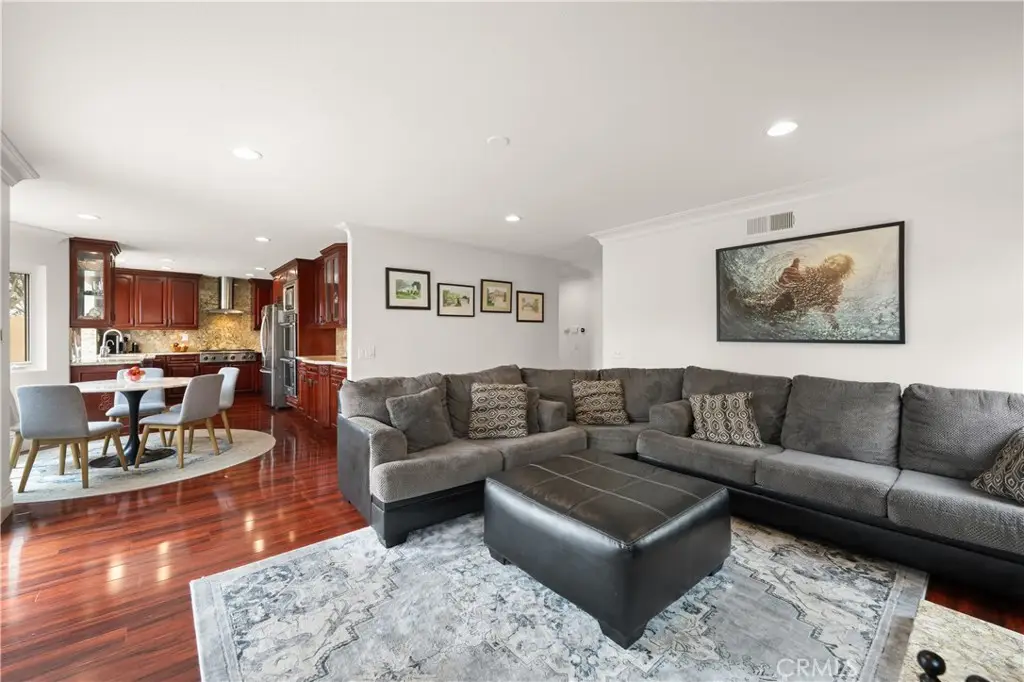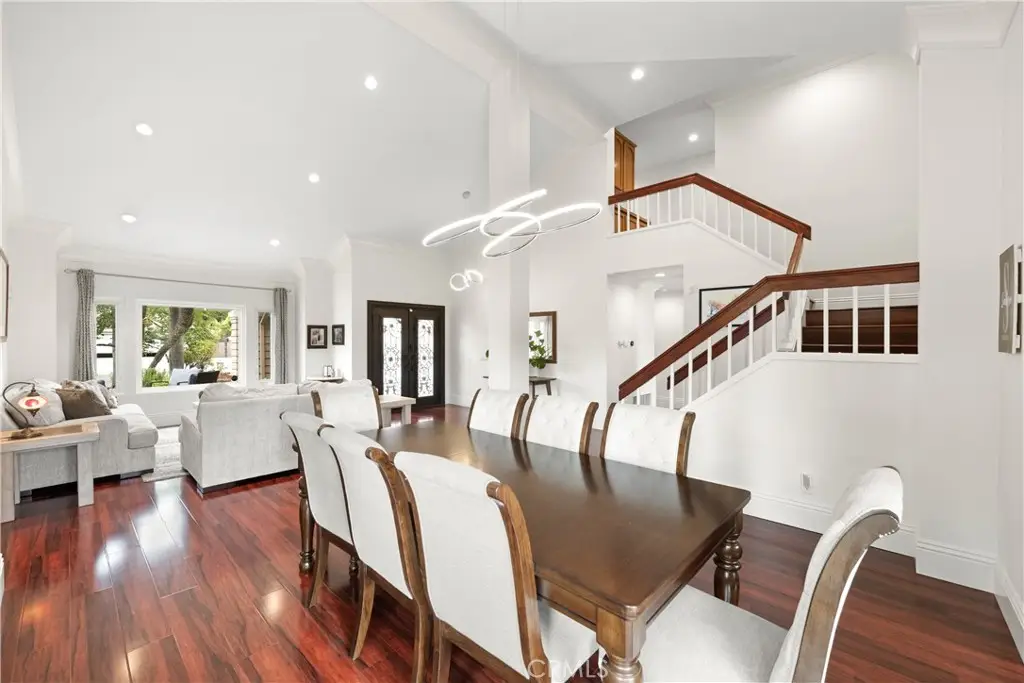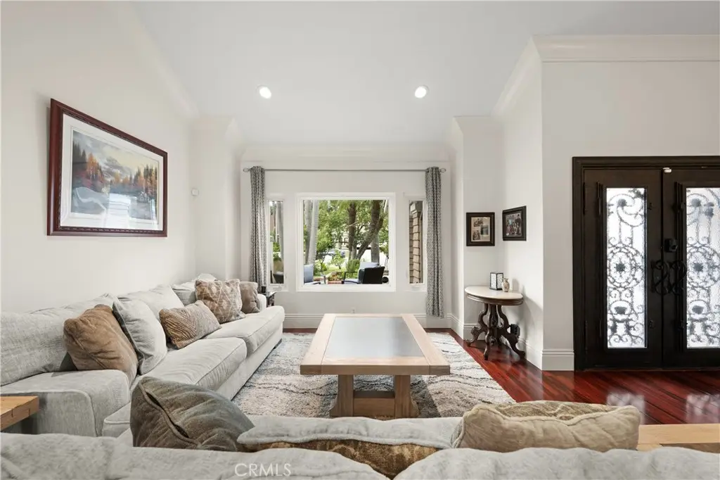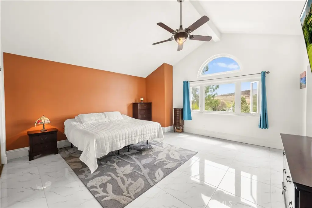 YOUR OWN PRIVATE OASIS AWAITS! Perfectly placed at the end of a quiet cul-de-sac, this property offers a massive lot with mountain and city-light vistas from the primary suite. Whether you're hosting gatherings or enjoying quiet evenings, the setting delivers both privacy and a delightful rock pool complete with waterfalls and a large hot tub. You even have fully paid solar and a new HVAC system with this gem of a home! Step through the ornate iron double doors into a dramatic entry with soaring ceilings that immediately set the tone. To one side, the formal living and dining rooms welcome elegant entertaining. To the other, a warm and inviting family room with a fireplace creates the ideal spot to unwind while soaking views of the backyard and hills beyond. The kitchen is designed for both everyday living and culinary adventures, featuring a sunny breakfast nook, generous counter space, rich cabinetry, granite counters, and premium stainless-steel appliances--including a six-burner cooktop, double oven, and oversized refrigerator. Outdoors, the backyard is nothing short of a resort escape--a custom pool with cascading waterfalls, relaxing spa, built-in BBQ, and tropical landscaping accented by tall palms. Fruit trees flourish throughout the property, including lemon, pomegranate, and persimmon. Inside, thoughtful upgrades enhance the home: newer windows, engineered wood floors, marble-tiled baths, and crown molding details throughout. A main-level bedroom and bath add valuable flexibility, while upstairs the primary suite and several rooms enjoy incredible views. Parking is plentiful with your new 3 car garage and extra deep 3 car driveway, and the garage includes an EV charger as well. With low HOA fees, low taxes, award-winning schools nearby, and just minutes to Southern California's finest beaches, this home blends comfort, elegance, and convenience in one unforgettable package.