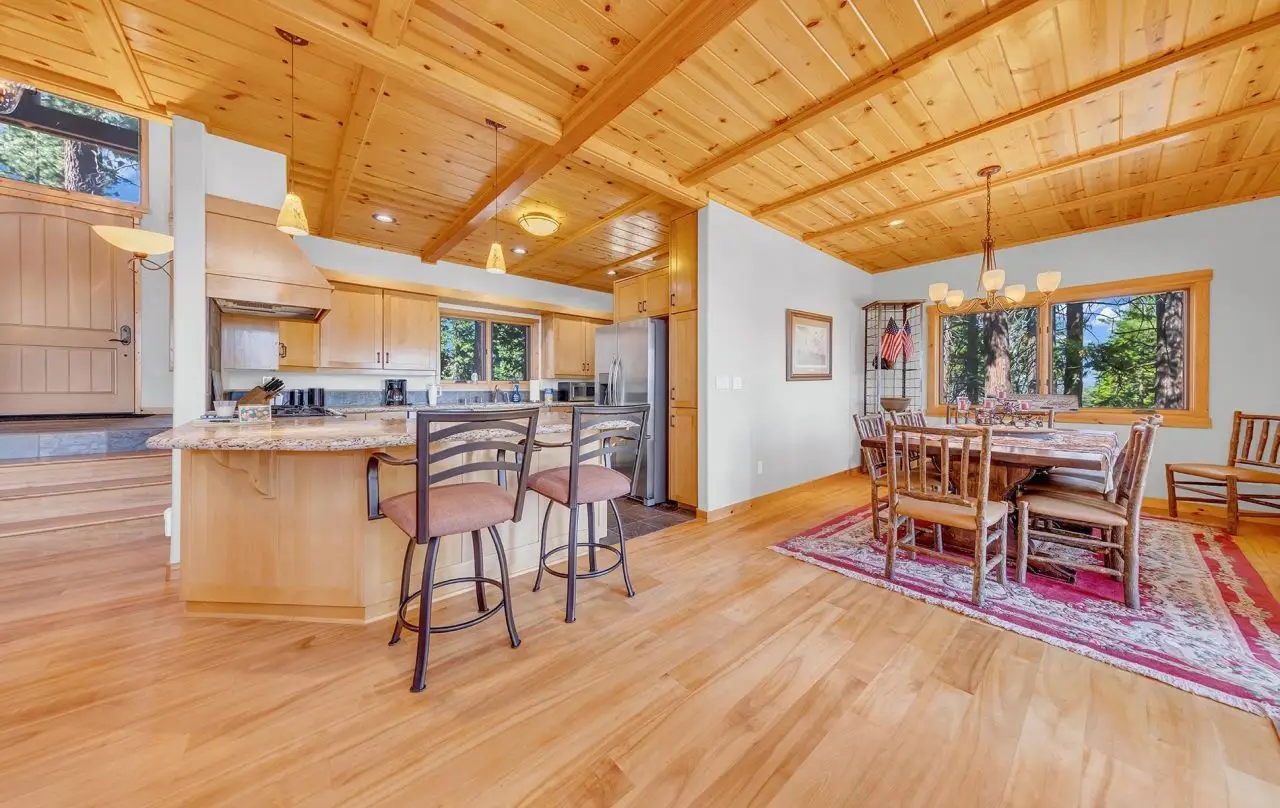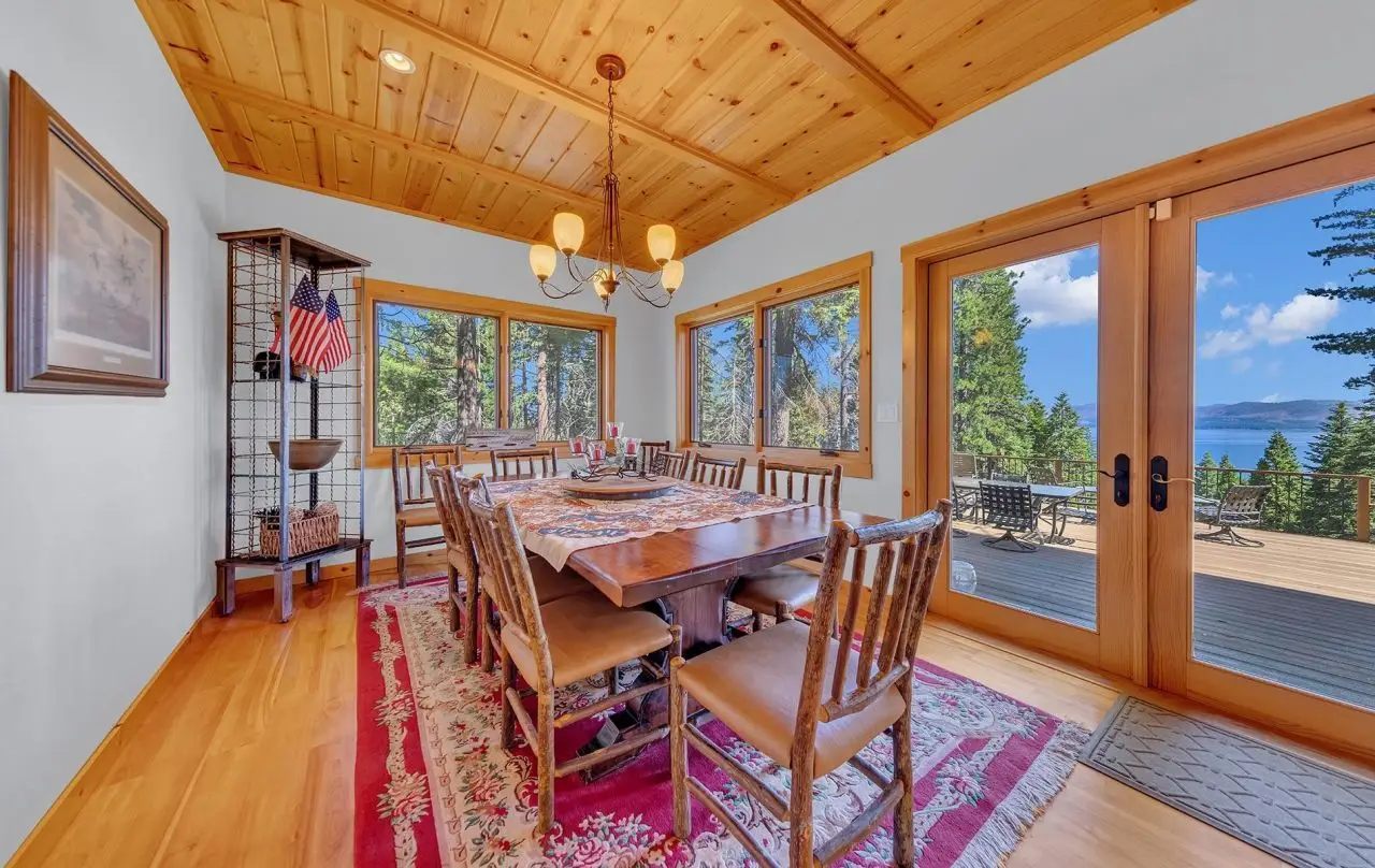 Stunning lakeview retreat situated on nearly 2 acres at the end of a quiet road, offering total privacy and panoramic views of Lake Almanor. This immaculate 5-bedroom, 3.5-bath custom home is designed for year-round enjoyment, with soaring vaulted ceilings, expansive gable glass, and warm mountain finishes throughout. The open-concept gourmet kitchen features sweeping lake views and flows seamlessly into the spacious living room, anchored by a massive gas log fireplace that creates a cozy winter ambiance. Natural pine cabinetry and solid pine doors maintain the authentic mountain charm, while accent lighting adds a refined touch. The oversized primary suite includes a luxurious soaking tub, large bath, and breathtaking views. Outdoors, enjoy over 1,000 square feet of composite decking - perfect for entertaining or relaxing in the fresh alpine air. Unwind in the private hot tub with your morning coffee or evening cocktail. Oversized 2 car detached garage offers easy access from the street and is sure to fit most of the summer and winter toys. With room for the whole crew and unmatched privacy, this is the ideal mountain getaway or full-time residence. Don't miss the opportunity to own one of the area's premier lakeview properties.