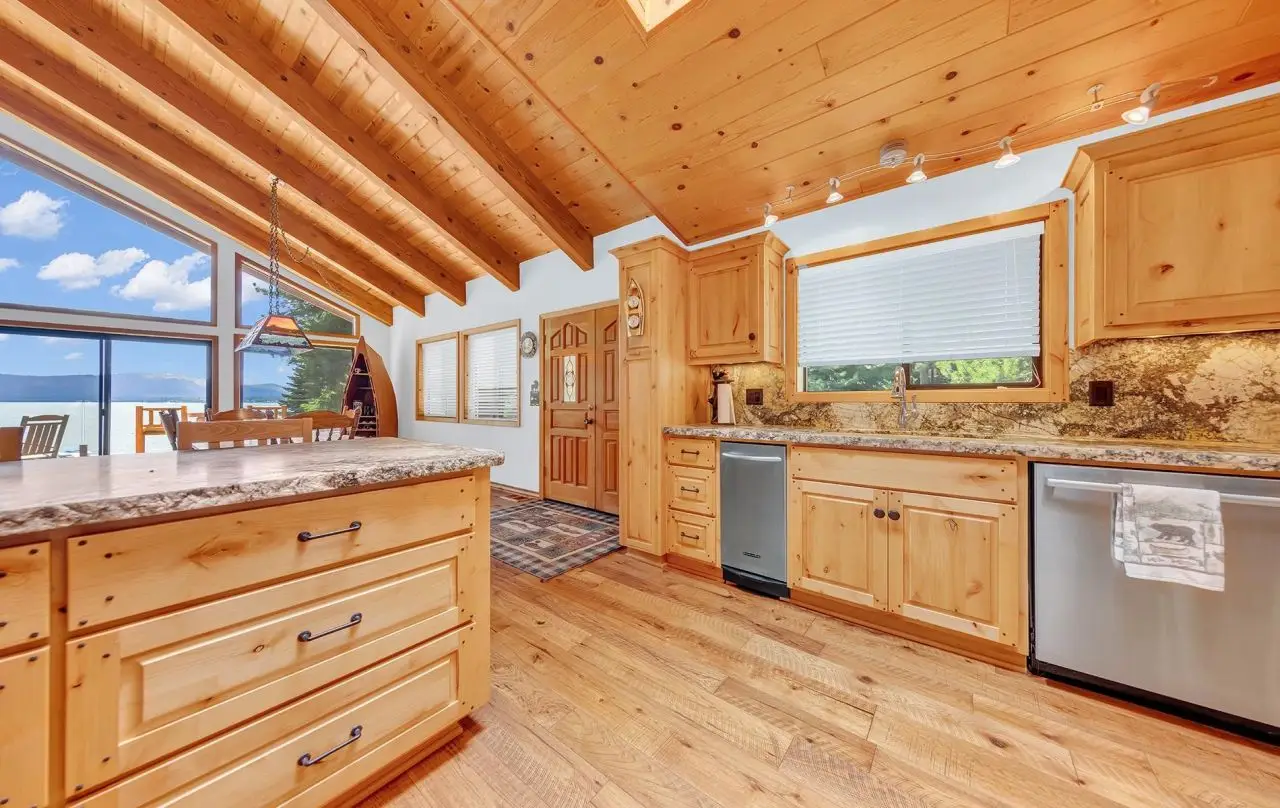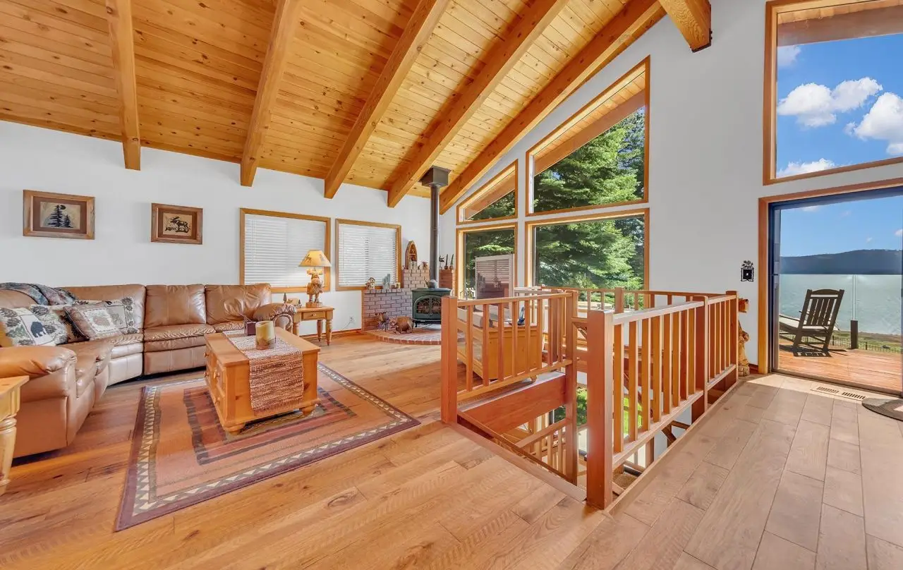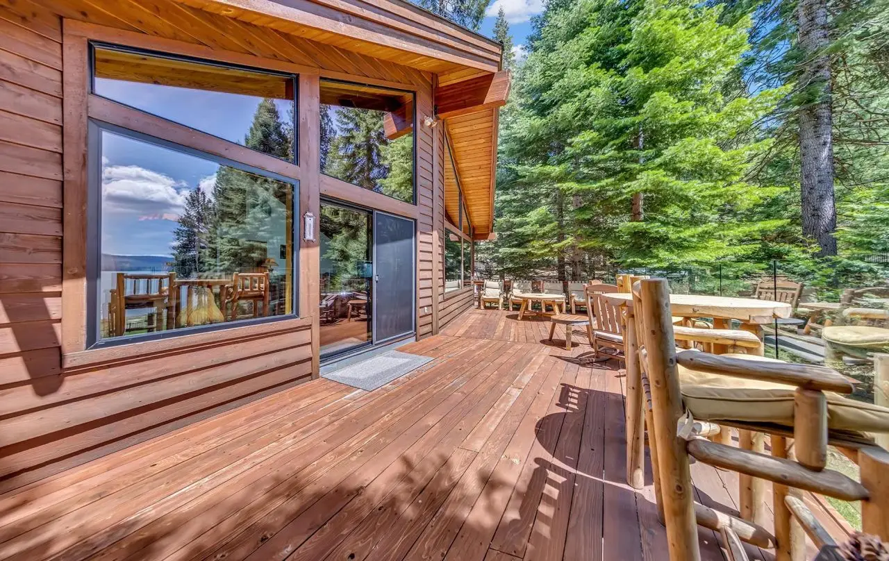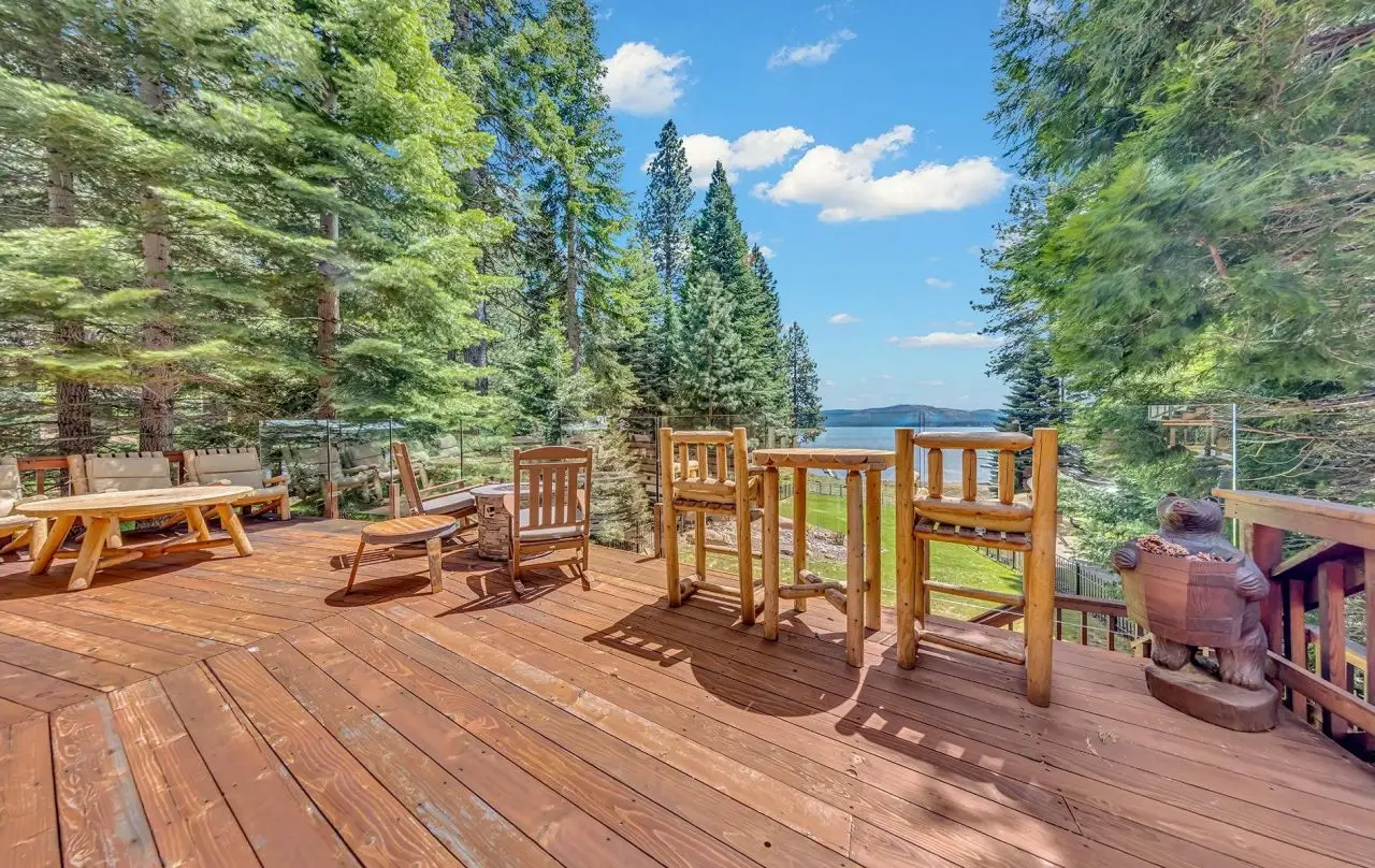 Rarely does a lakefront property of this caliber become available in the highly sought-after Lake Almanor Country Club! This exceptional custom home offers completely level access and beautifully manicured lawn that stretches right to the shoreline - perfect for effortless lake living. Impeccably maintained, the home features charming cedar lap siding, a durable 50-year composition roof, a fully fenced backyard, and a spacious detached 3-car garage with nearly level access. Step inside to a warm and inviting open-concept layout highlighted by soaring vaulted wood ceilings with exposed beams, floor-to-ceiling windows that frame breathtaking lake views, a cozy gas fireplace with brick hearth, and rich engineered hardwood flooring. The chef's kitchen is a showstopper, boasting leathered granite countertops with a live edge finish, custom alder cabinetry, a six-burner Dacor range, stainless steel appliances, a wine refrigerator, and a stylish farm sink. The main-level primary suite is generously sized and features pine vaulted ceilings, a spa-like en suite with slate tile shower, Jacuzzi tub, and a walk-in closet. The lower level is perfect for guests or family, offering two additional bedrooms, a sitting area/game room, and an interior hot tub room for year-round relaxation. Step out onto the expansive lakeside deck with glass railings to soak in the peaceful cove setting while kids and pets enjoy the lush lawn. Swim, paddle, or hit the lake right from your private aluminum dock just steps from the back door. This is a rare opportunity to own one of the finest lakefront properties on Peninsula Drive - experience lake life at its best!