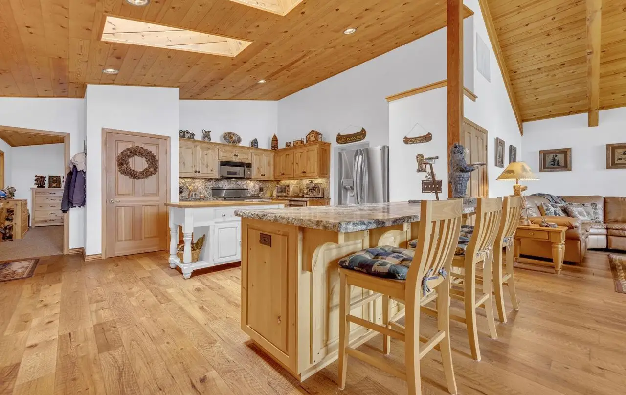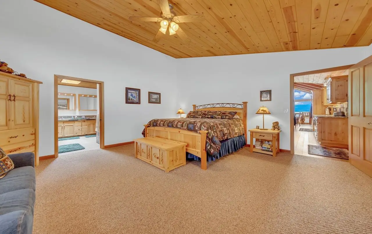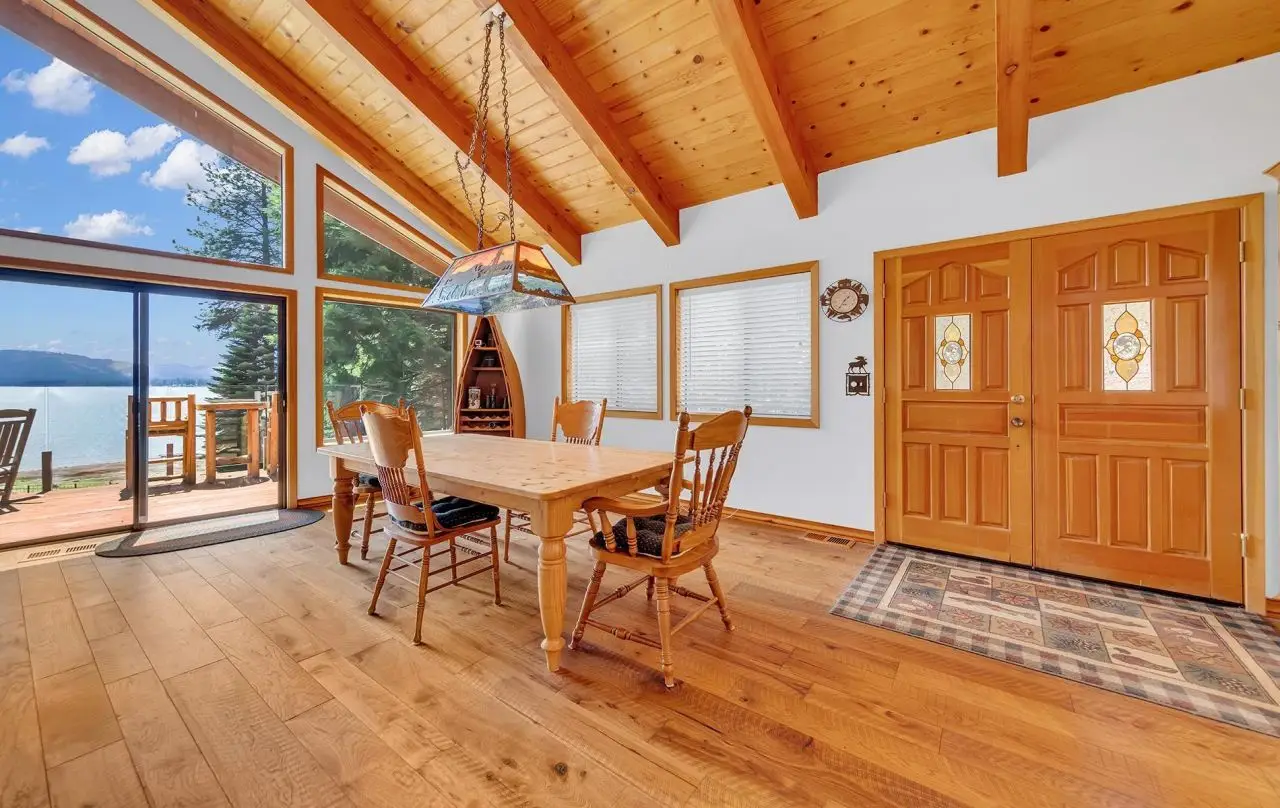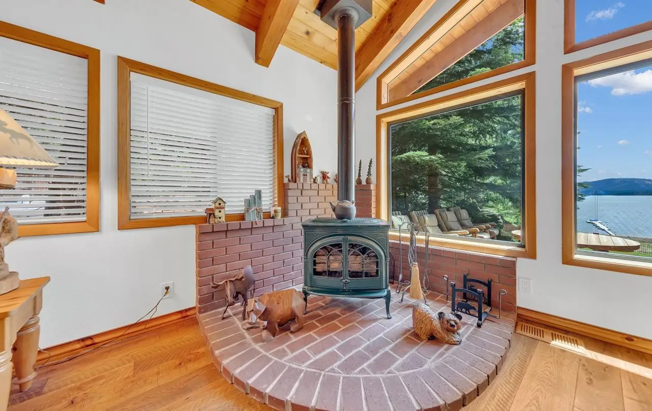 Rarely does a lakefront property of this caliber become available in the highly sought-after Lake Almanor Country Club! This exceptional custom home offers completely level access and beautifully manicured lawn that stretches right to the shoreline - perfect for effortless lake living. Impeccably maintained, the home features charming cedar lap siding, a durable 50-year composition roof, a fully fenced backyard, and a spacious detached 3-car garage with nearly level access. Step inside to a warm and inviting open-concept layout highlighted by soaring vaulted wood ceilings with exposed beams, floor-to-ceiling windows that frame breathtaking lake views, a cozy gas fireplace with brick hearth, and rich engineered hardwood flooring. The chef's kitchen is a showstopper, boasting leathered granite countertops with a live edge finish, custom alder cabinetry, a six-burner Dacor range, stainless steel appliances, a wine refrigerator, and a stylish farm sink. The main-level primary suite is generously sized and features pine vaulted ceilings, a spa-like en suite with slate tile shower, Jacuzzi tub, and a walk-in closet. The lower level is perfect for guests or family, offering two additional bedrooms, a sitting area/game room, and an interior hot tub room for year-round relaxation. Step out onto the expansive lakeside deck with glass railings to soak in the peaceful cove setting while kids and pets enjoy the lush lawn. Swim, paddle, or hit the lake right from your private aluminum dock just steps from the back door. This is a rare opportunity to own one of the finest lakefront properties on Peninsula Drive - experience lake life at its best!