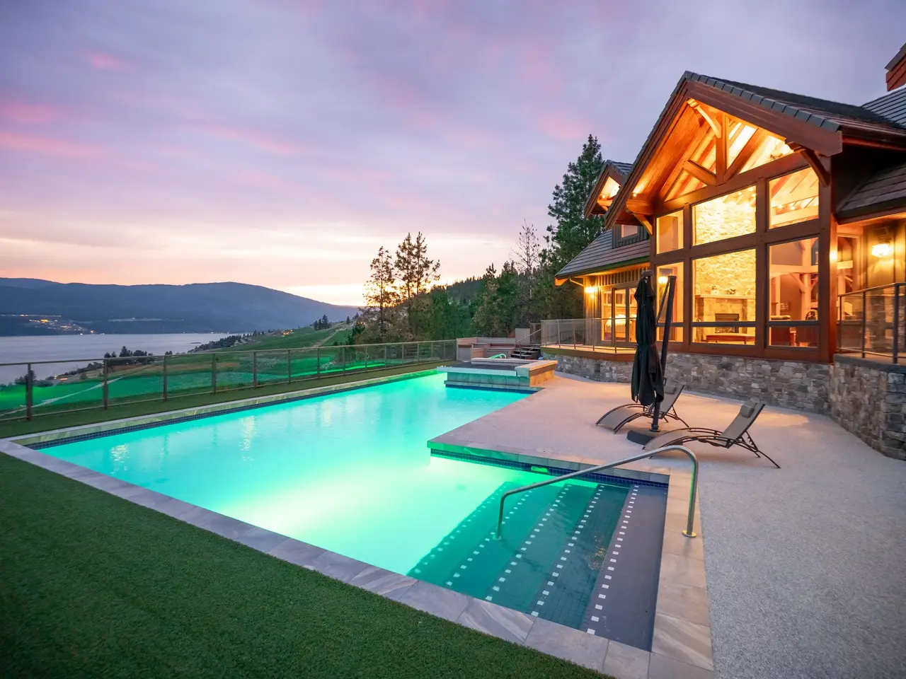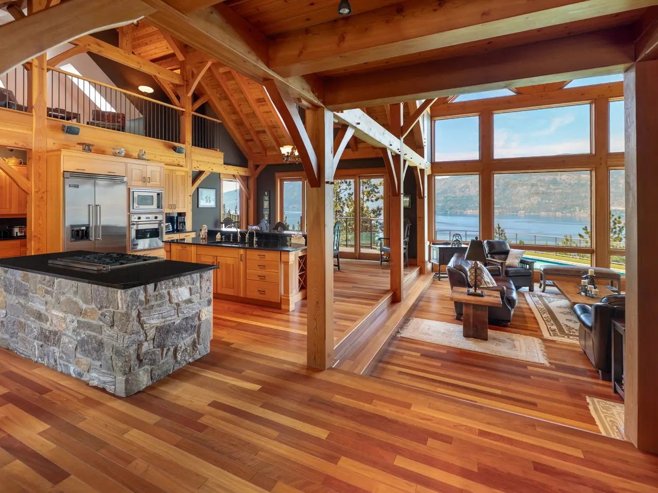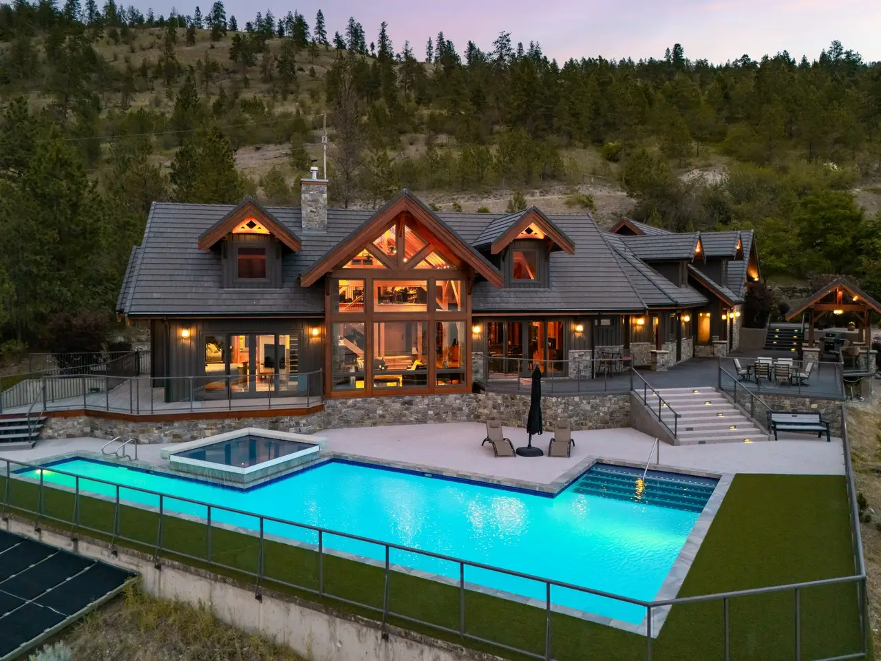 Listed by Unison Jane Hoffman Realty | Authentic, architectural timber frame masterpiece with iconic lake & vineyard views. A rare offering, this handcrafted timber frame estate blends old-world artistry with modern luxury, set on a private acreage with sweeping views of Okanagan Lake & rolling vineyards. Built without hardware, the traditional joinery, vaulted rooflines, & exposed beams exude timeless craftsmanship and structural elegance. Inside, the soaring great room anchors the home, where floor-to-ceiling Kolbe windows frame breathtaking lake vistas & invite natural light to dance across rich wood interiors & a grand stone fireplace. The chef’s kitchen is equipped with premium appliances, granite countertops, & custom cabinetry, all seamlessly integrated into the open living & dining areas, perfect for entertaining or everyday comfort. Step outside to your own resort-style oasis. A regulation-length pool with oversized lounging area and built-in water feature sets the stage for summer relaxation against a backdrop of vineyards & lake. The primary suite offers a luxurious retreat with a beautiful ensuite, private loft, & serene views. Equestrian-ready, the grounds include two horse stalls, a large paddock area, a round pen, and an outdoor riding arena; one bedroom guest suite, for extended stays or a live-in caretaker. A large garage offers ample room for vehicles, toys, or workshop use. Mature, well-maintained landscaping surrounds the property. Located just minutes from world-class wineries, golfing, & lake access, this is more than a home. It’s a legacy, handcrafted with intention & surrounded by the beauty of the Okanagan.