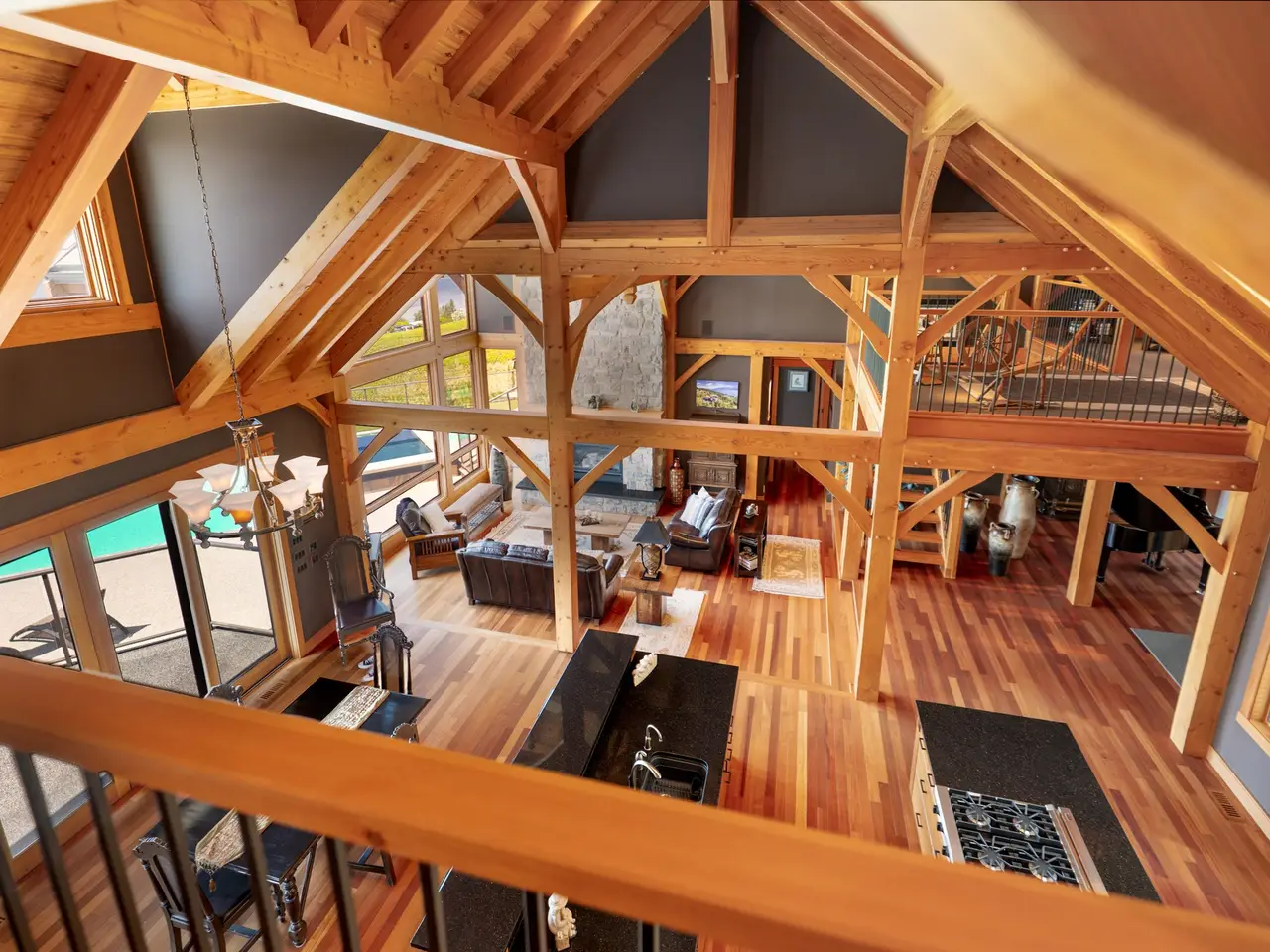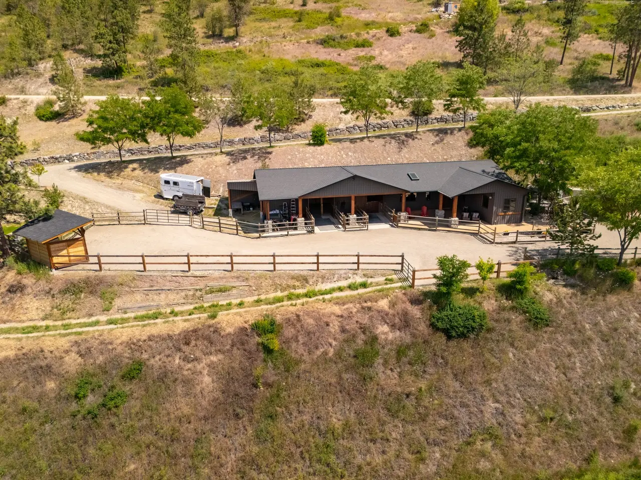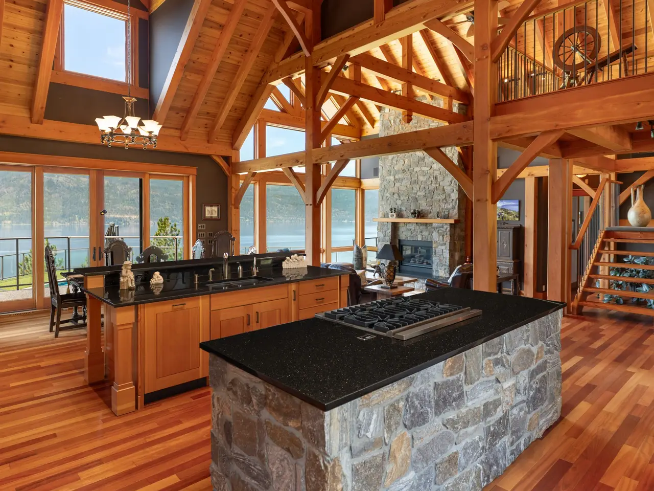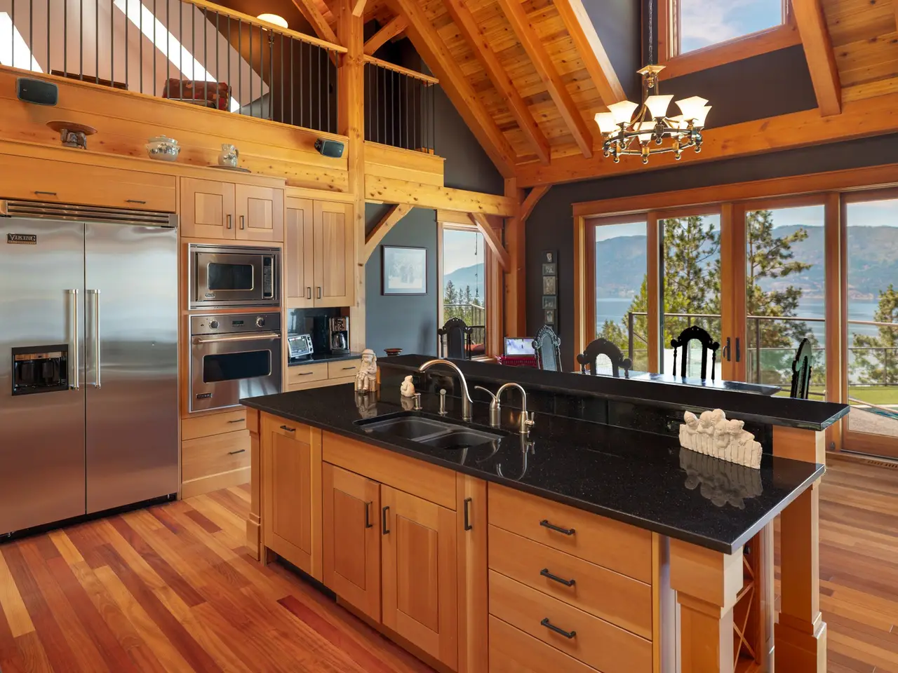 Listed by Unison Jane Hoffman Realty | Authentic, architectural timber frame masterpiece with iconic lake & vineyard views. A rare offering, this handcrafted timber frame estate blends old-world artistry with modern luxury, set on a private acreage with sweeping views of Okanagan Lake & rolling vineyards. Built without hardware, the traditional joinery, vaulted rooflines, & exposed beams exude timeless craftsmanship and structural elegance. Inside, the soaring great room anchors the home, where floor-to-ceiling Kolbe windows frame breathtaking lake vistas & invite natural light to dance across rich wood interiors & a grand stone fireplace. The chef’s kitchen is equipped with premium appliances, granite countertops, & custom cabinetry, all seamlessly integrated into the open living & dining areas, perfect for entertaining or everyday comfort. Step outside to your own resort-style oasis. A regulation-length pool with oversized lounging area and built-in water feature sets the stage for summer relaxation against a backdrop of vineyards & lake. The primary suite offers a luxurious retreat with a beautiful ensuite, private loft, & serene views. Equestrian-ready, the grounds include two horse stalls, a large paddock area, a round pen, and an outdoor riding arena; one bedroom guest suite, for extended stays or a live-in caretaker. A large garage offers ample room for vehicles, toys, or workshop use. Mature, well-maintained landscaping surrounds the property. Located just minutes from world-class wineries, golfing, & lake access, this is more than a home. It’s a legacy, handcrafted with intention & surrounded by the beauty of the Okanagan.