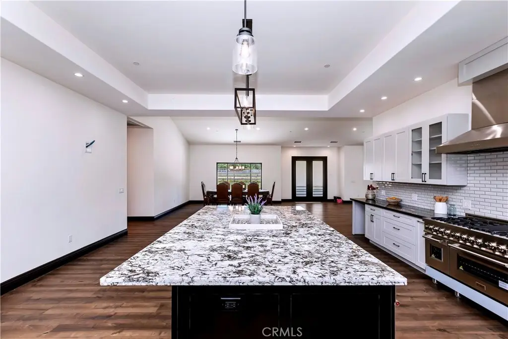 Welcome to 17370 Rodeo Road, a stunning ranch estate home nestled in the exclusive gated equestrian community of Rancho Capistrano near Rancho Mission Viejo. This brand-new luxury residence spans approximately 4750 sqft, plus a 650 sqft attached garage, and is set on a sprawling 2.3-acre lot. The open floor plan includes a separate dining room, family room, and great room with a modern fireplace and a vast wet bar, perfect for entertaining. The gourmet kitchen is a chef's dream, featuring granite countertops, open shelves, a commercial-grade Bertazzoni dual fuel stove, a large double farm sink, a custom island with a built-in microwave oven/convection oven and warming drawer, ample storage, and a walk-in pantry. The luxurious master suite boasts a gas fireplace, French doors with vineyard views, two large walk-in closets, and an elegant bathroom with double sinks, a jacuzzi tub, and a spacious walk-in shower. Three additional oversized bedrooms and three bathrooms provide ample space for family and guests. The expansive outdoor space offers endless possibilities, from building your dream equestrian facilities to creating organic gardens. Enjoy community and mountain horse trails, hiking, biking, and other outdoor adventures right at your doorstep. The location is ideal for equestrian enthusiasts, being strategically situated between two top AA-rated equestrian horse show grounds. Modern conveniences include super high-speed internet, wireless connectivity throughout, and smart home features. Additionally, the property includes a grandfathered-in, updated 975 sqft detached ADU with 2 bedrooms and 1 bathroom, perfect for rental income or accommodating guests or a caretaker. Rancho Capistrano is a serene and secure community, offering the best of equestrian and outdoor lifestyles amidst breathtaking scenery. Close proximity to gorgeous beaches and Lake Elsinore provides opportunities for water sports and fishing. Embrace the enviable ranch life you've always dreamed of at 17370 Rodeo Road. With its modern amenities, luxurious living spaces, and prime location, this home is a rare find in Southern California.