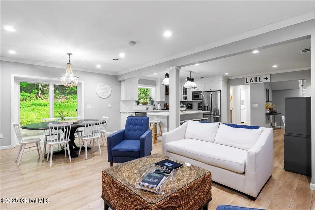 Welcome to 60 Cooper Street in the Lake George Village! Enjoy year round Adirondack fun in this large, well appointed home with a beautiful great room, gas fireplace, modern kitchen with island and pantry, large family room with half bath, large primary bedroom suite, beautiful primary spa like bathroom, 3 queen size bedrooms and a large main bathroom. Attached is a complete 2 bedroom 1 bath in-law apartment for guests, extended family, or use as a full time rental. Outdoors, enjoy sitting on multiple covered decks or the backyard patio. You're 4 blocks to Canada Street for all the restaurants, shopping, entertainment, area hiking, and lake activities that Lake George has to offer. Properties like this don't come available in the village too often. Make sure you see this one today!