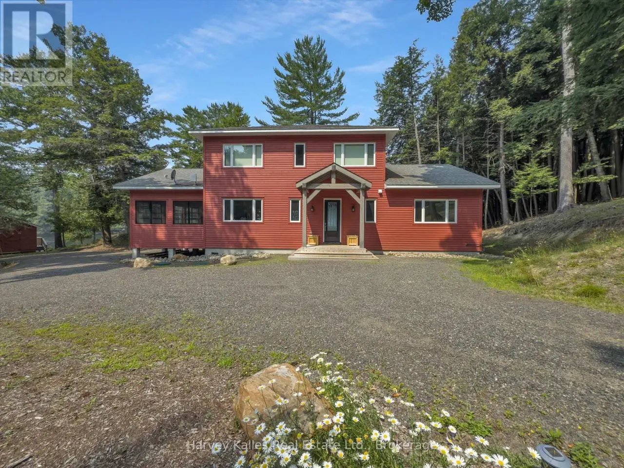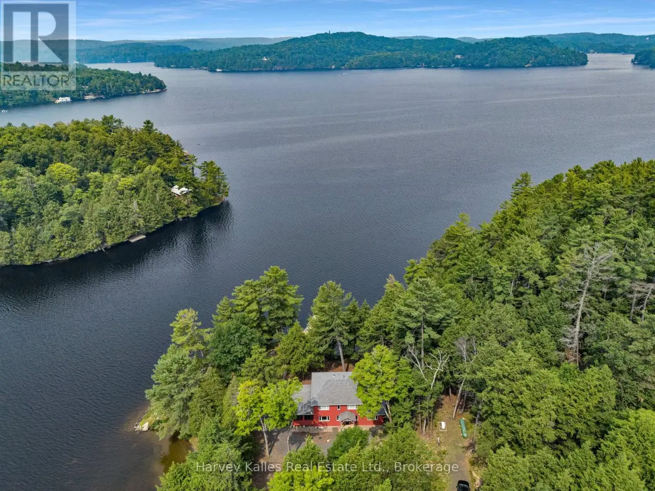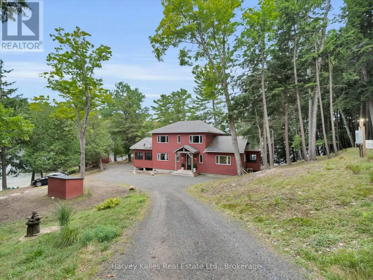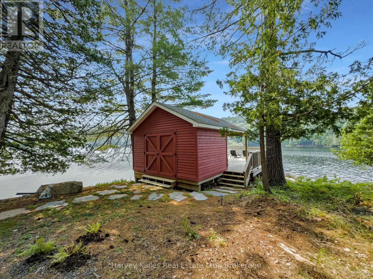 Lake Views That Surround You. Millions of Memories to Make. And, One Rare Opportunity. This package includes two separately deeded lots. The first property includes 429 feet of shoreline along a beautiful point of land that faces with both south and west. The long lake views with deep water and a private beach with morning to night sun provide the most desirable waterfront. The second property sits on 210 feet of waterfront facing due south, well treed and perfectly positioned to make this a one of a kind property into your family legacy property, where everyone can be welcomed, happy and comfortable. This Lake of Bays retreat gives you a level of privacy and space that are seldom found. Your best days begin as you wind down the forested driveway and catch your first glimpse of the striking red cottage tucked into the trees. Inside you will be immediately captured by the view from the family room. As you continue to explore you will find 6 spacious bedrooms across 3 floors, a massive kitchen and a large 3 season sun room with 10+ seats at the dinner table and a cozy lounge area surrounded by screened weather walls that allow you to take advance of the lakeside summer breeze. Whether you are spending your afternoons lounging on one or the two generous decks over looking the water, on the dock, or wading in from the walk-in sandy shoreline with its hard-packed bottom every member of your crew will love their time here. Lake of Bays is celebrated for its boating, fishing, and endless exploring, plus from this address you're only 25 minutes to Huntsville for shops, dining, and year-round amenities. This is more than a cottage, it's the backdrop to your Muskoka story, a private retreat that blends the timeless charm of cottage tradition with the comfort of modern design all thoughtfully placed on one of the most stunning peices of land Lake of Bays has to offer. (id:16999)